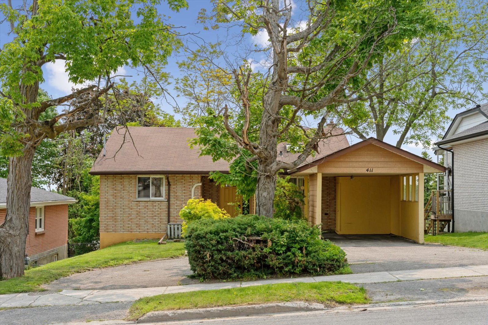 The Perfect Blend of Comfort, Convenience + Potential. Welcome to 411 Highland Road, a bright and versatile brick bungalow in Peterborough's North End, offering the perfect mix of charm, and opportunity. Inside, you'll find an immaculately maintained 2+2 bedroom, 2 bathroom layout with fresh paint throughout. The kitchens skylight fills the space with natural light, while the spacious living room with a cozy gas fireplace opens onto a deck with sweeping views. The finished walkout basement offers incredible flexibility with in-law suite potential, perfect for multi-generational living or the potential to create additional income opportunities. Step outside to a private, fenced backyard complete with a patio and gazebo, a great space for entertaining friends, summer BBQs, or quiet weekends at home. And the location? Unbeatable. Walk to schools, shopping, and the scenic trails of Jackson Park, everything you need is right at your doorstep. *Pre-home Inspection available*
