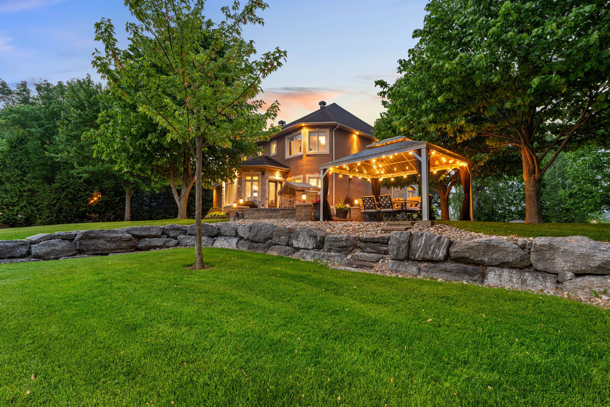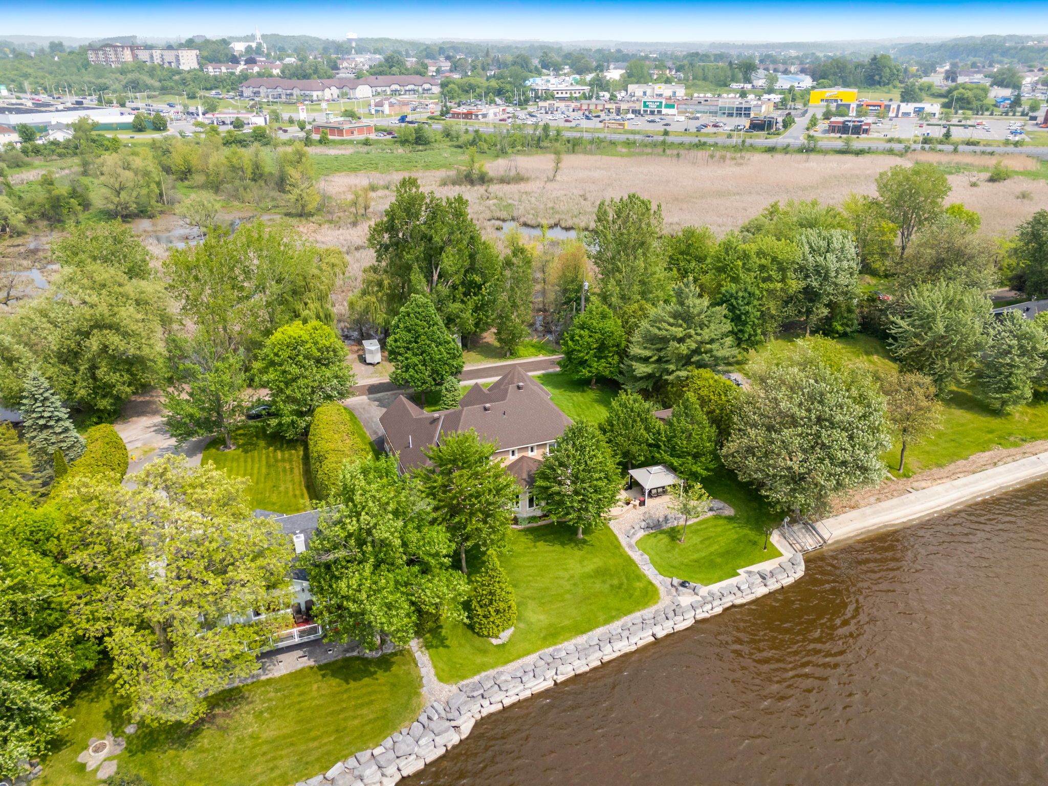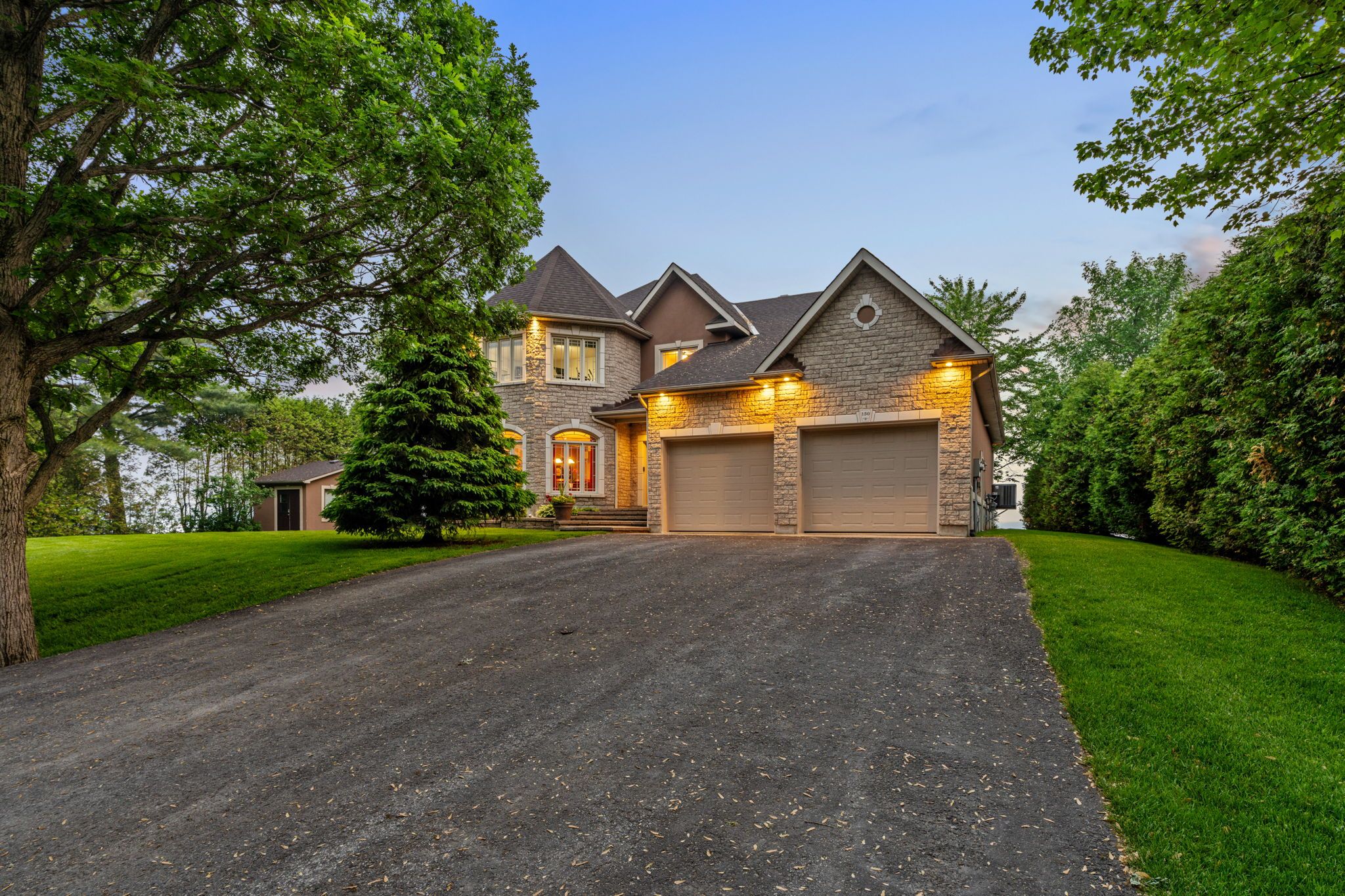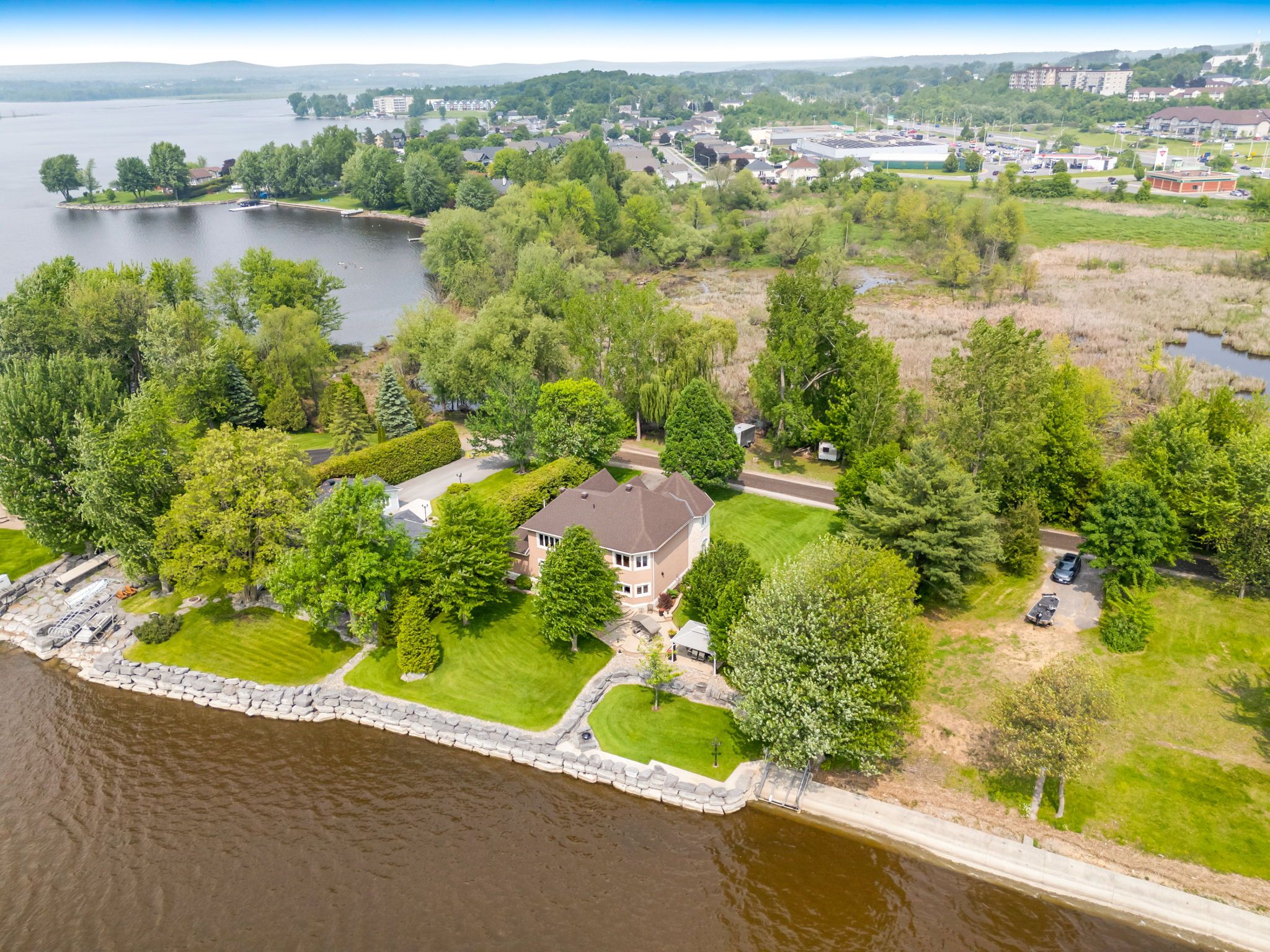 Welcome to an exceptional waterfront residence that defines elegance and sophistication. Perfectly situated in the heart of Rockland, this custom-built 3,200 sq.ft. home offers an unparalleled lifestyle with breathtaking water views and sunset backdrops, all within a short distance to local amenities. Originally built in 2004, the main floor was fully remodelled in 2021, blending timeless design with fresh, contemporary finishes.The sun-drenched open-concept layout features soaring 9-ft ceilings, a flowing design, and refined touches throughout. The chef-inspired kitchen is a true showpiece, complete with granite countertops, an oversized island with seating, and seamless flow into the expansive living and dining areas. This luxurious home offers 3 generously sized bedrooms, each with its own walk-in closet, and 3 beautifully appointed bathrooms, including a spa-like ensuite in the primary suite. A separate family room provides versatile space ideal as an executive home office, library, or lounge. A convenient main-floor laundry adds to the everyday ease of living. Additional features include a spacious 25 x 26 double attached garage perfect for vehicles, storage, or a hobby space. Outside, experience true tranquility in your private, fully landscaped backyard oasis. Enjoy al fresco dining on the interlock patio, unwind beneath the elegant pavilion-style gazebo, and appreciate the privacy offered by mature cedar hedges flanking both sides of the property. A built-in lawn sprinkling system ensures your grounds remain lush and green with minimal effort. Whether entertaining or relaxing, the ever-changing waterfront views provide a stunning natural backdrop.This rare offering combines refined interiors, modern comfort, and a coveted in-town waterfront location ideal for those seeking luxury without compromise.