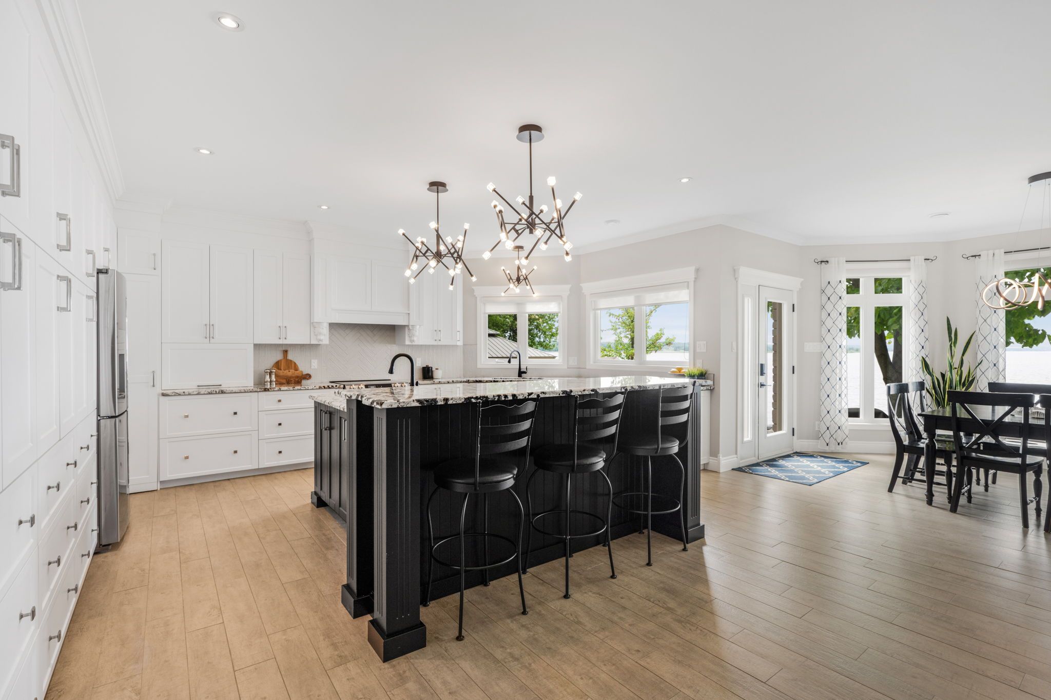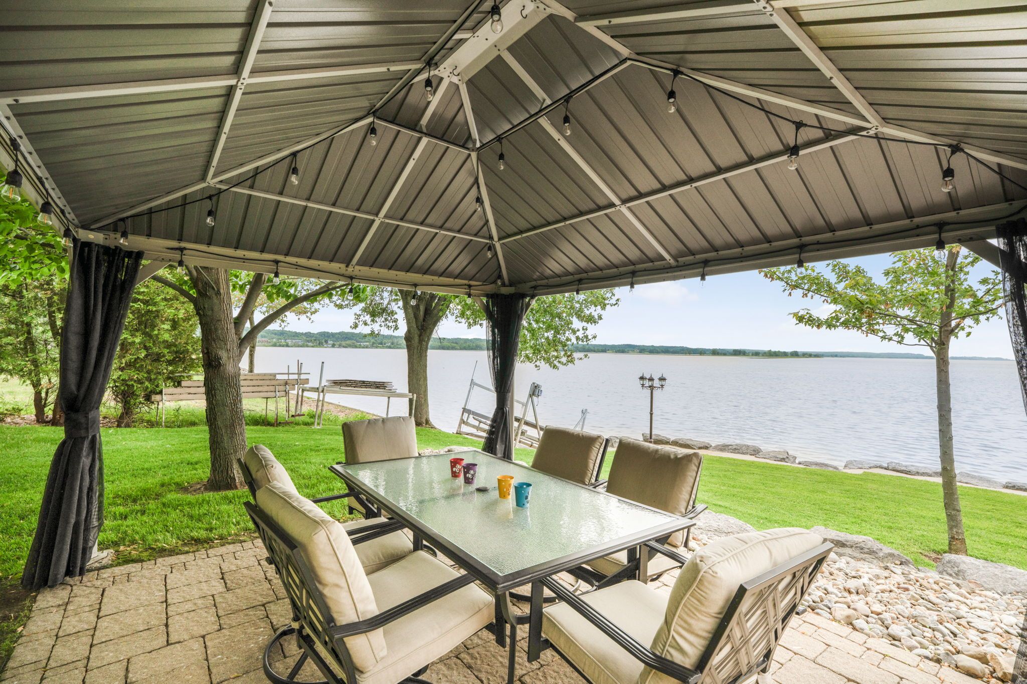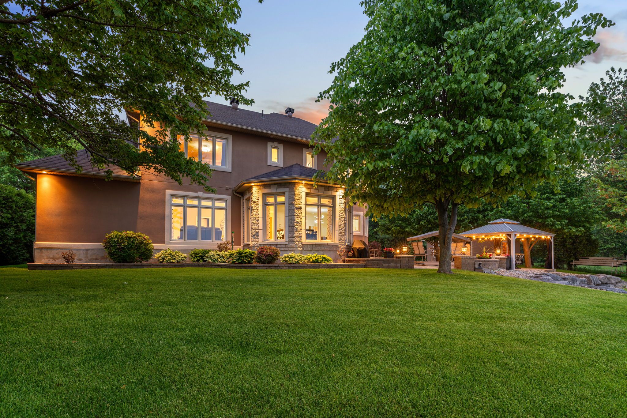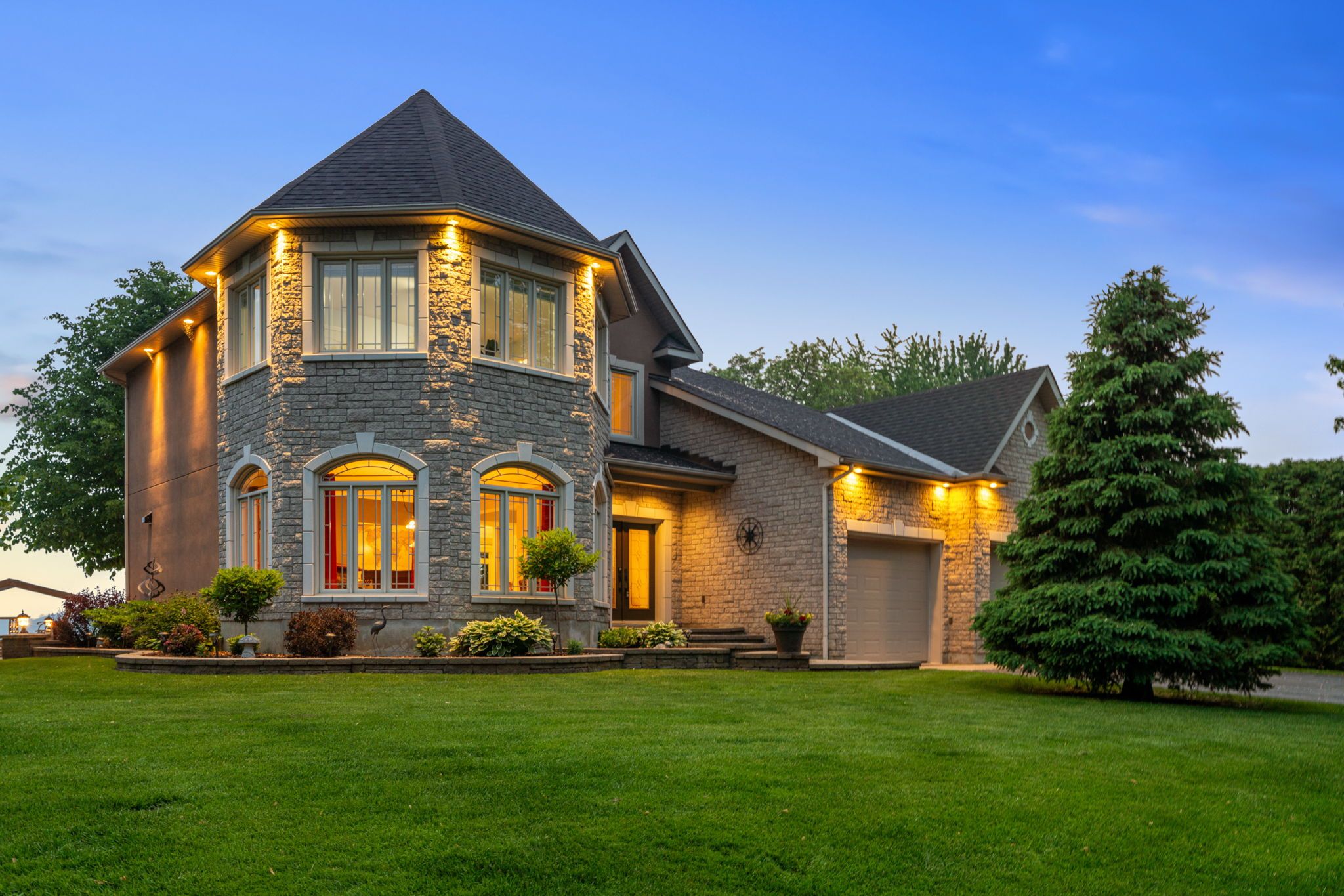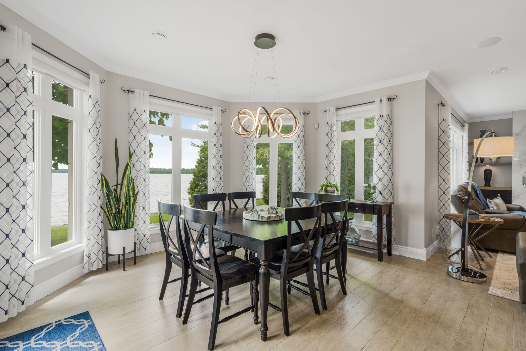Welcome to an exceptional waterfront residence that defines elegance and sophistication. Perfectly situated in the heart of Rockland, this custom-built 3,200 sq.ft. home offers an unparalleled lifestyle with breathtaking water views and sunset backdrops, all within a short distance to local amenities. Originally built in 2004, the main floor was fully remodelled in 2021, blending timeless design with fresh, contemporary finishes.The sun-drenched open-concept layout features soaring 9-ft ceilings, a flowing design, and refined touches throughout. The chef-inspired kitchen is a true showpiece, complete with granite countertops, an oversized island with seating, and seamless flow into the expansive living and dining areas. This luxurious home offers 3 generously sized bedrooms, each with its own walk-in closet, and 3 beautifully appointed bathrooms, including a spa-like ensuite in the primary suite. A separate family room provides versatile space ideal as an executive home office, library, or lounge. A convenient main-floor laundry adds to the everyday ease of living. Additional features include a spacious 25 x 26 double attached garage perfect for vehicles, storage, or a hobby space. Outside, experience true tranquility in your private, fully landscaped backyard oasis. Enjoy al fresco dining on the interlock patio, unwind beneath the elegant pavilion-style gazebo, and appreciate the privacy offered by mature cedar hedges flanking both sides of the property. A built-in lawn sprinkling system ensures your grounds remain lush and green with minimal effort. Whether entertaining or relaxing, the ever-changing waterfront views provide a stunning natural backdrop.This rare offering combines refined interiors, modern comfort, and a coveted in-town waterfront location ideal for those seeking luxury without compromise.