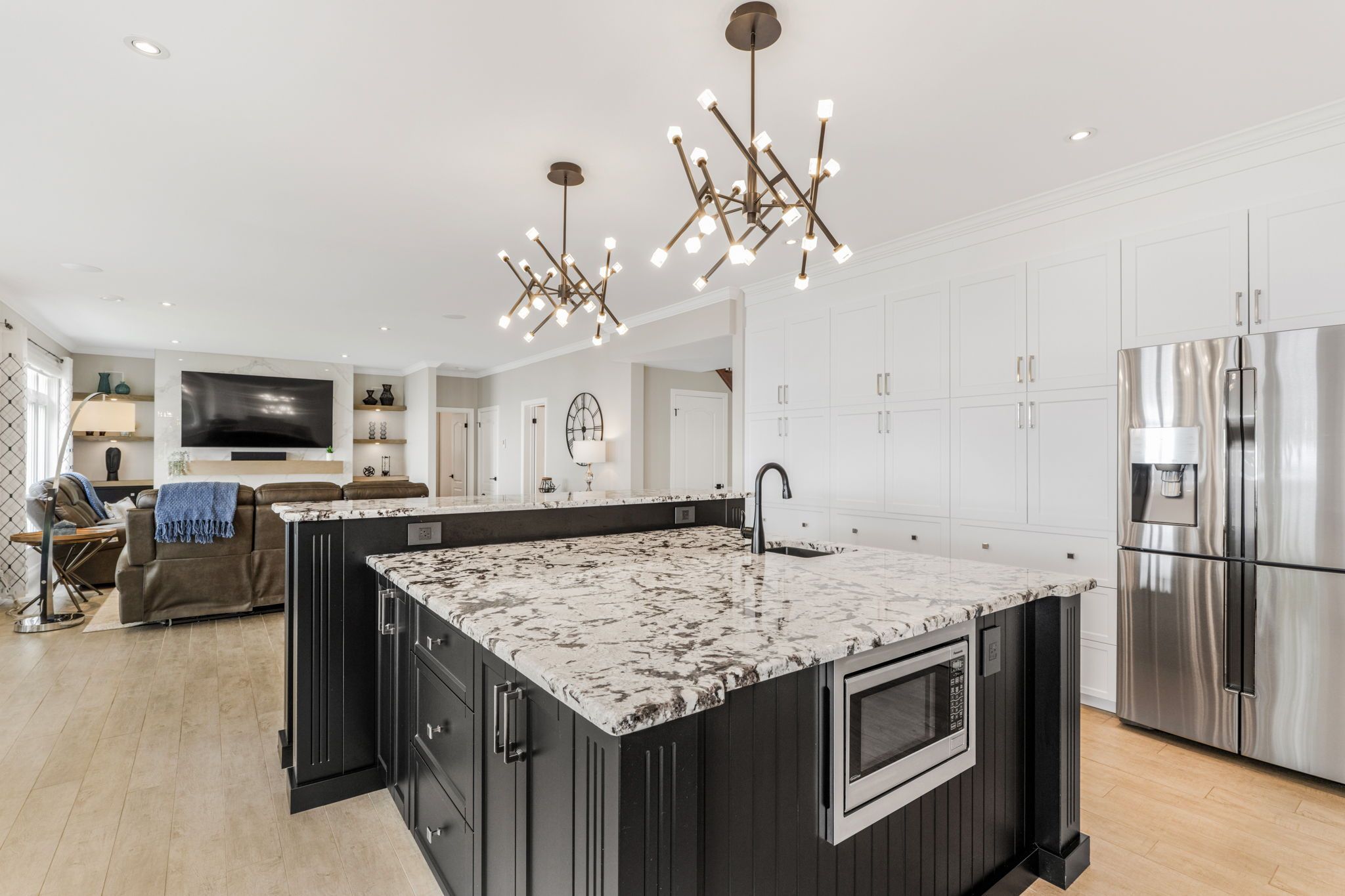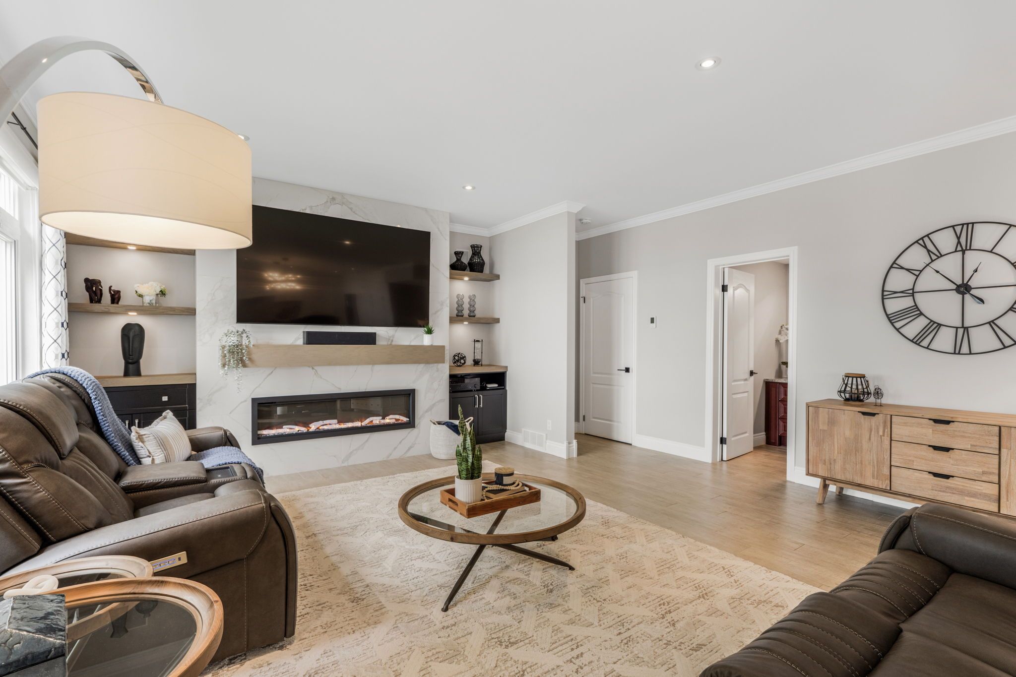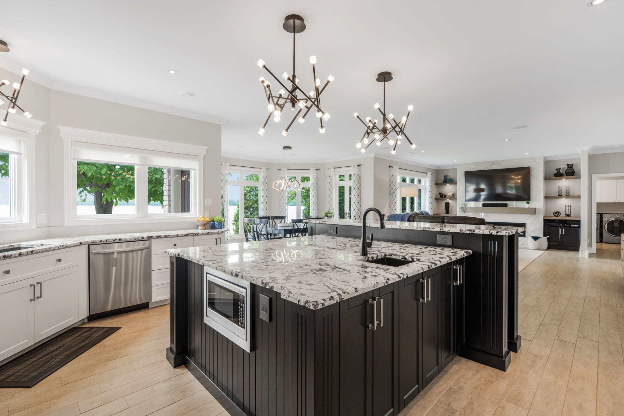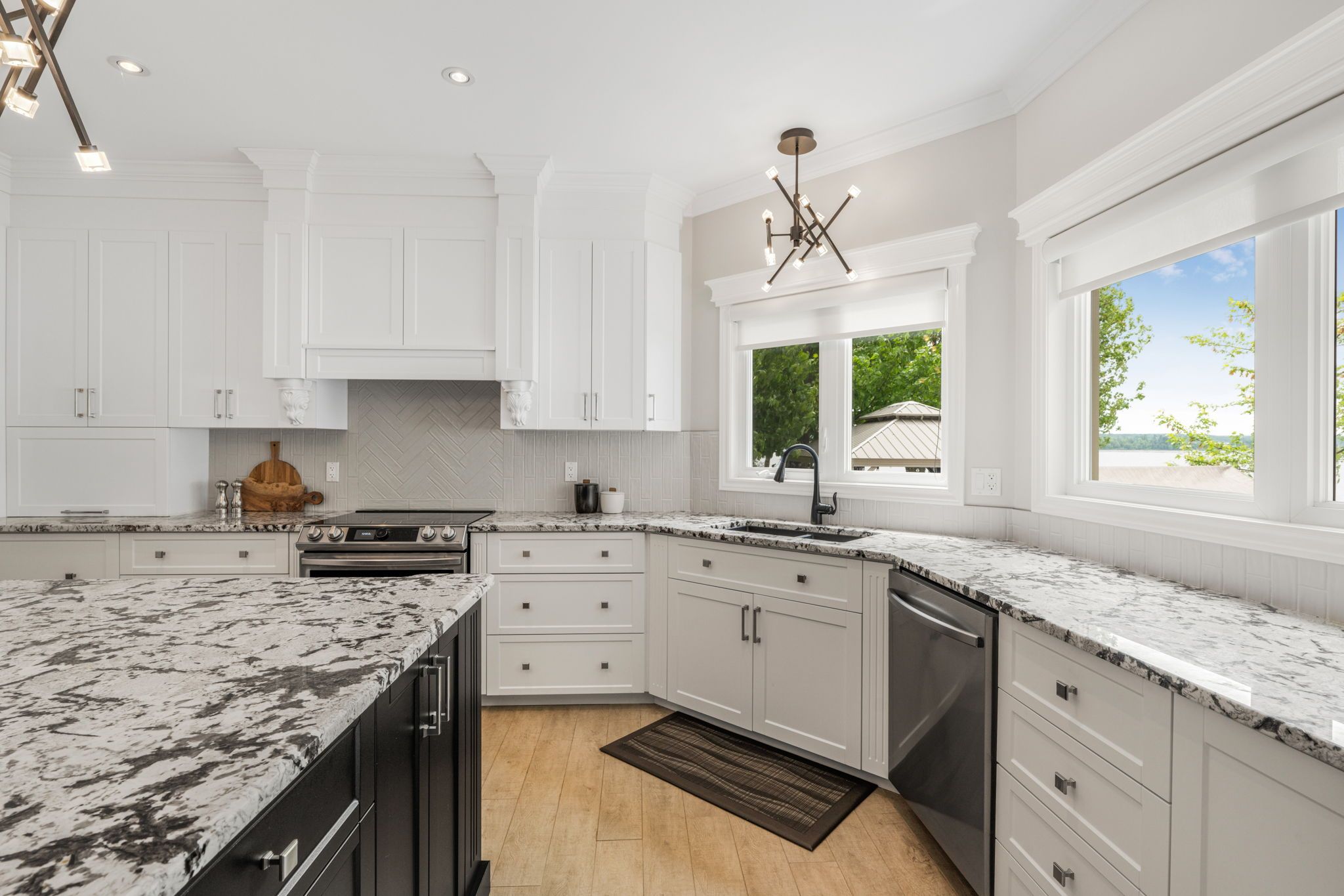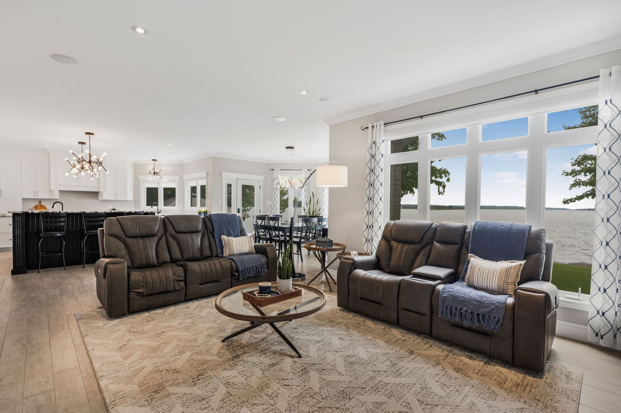 Welcome to an exceptional waterfront residence that defines elegance and sophistication. Perfectly situated in the heart of Rockland, this custom-built 3,200 sq.ft. home offers an unparalleled lifestyle with breathtaking water views and sunset backdrops, all within a short distance to local amenities. Originally built in 2004, the main floor was fully remodelled in 2021, blending timeless design with fresh, contemporary finishes.The sun-drenched open-concept layout features soaring 9-ft ceilings, a flowing design, and refined touches throughout. The chef-inspired kitchen is a true showpiece, complete with granite countertops, an oversized island with seating, and seamless flow into the expansive living and dining areas. This luxurious home offers 3 generously sized bedrooms, each with its own walk-in closet, and 3 beautifully appointed bathrooms, including a spa-like ensuite in the primary suite. A separate family room provides versatile space ideal as an executive home office, library, or lounge. A convenient main-floor laundry adds to the everyday ease of living. Additional features include a spacious 25 x 26 double attached garage perfect for vehicles, storage, or a hobby space. Outside, experience true tranquility in your private, fully landscaped backyard oasis. Enjoy al fresco dining on the interlock patio, unwind beneath the elegant pavilion-style gazebo, and appreciate the privacy offered by mature cedar hedges flanking both sides of the property. A built-in lawn sprinkling system ensures your grounds remain lush and green with minimal effort. Whether entertaining or relaxing, the ever-changing waterfront views provide a stunning natural backdrop.This rare offering combines refined interiors, modern comfort, and a coveted in-town waterfront location ideal for those seeking luxury without compromise.