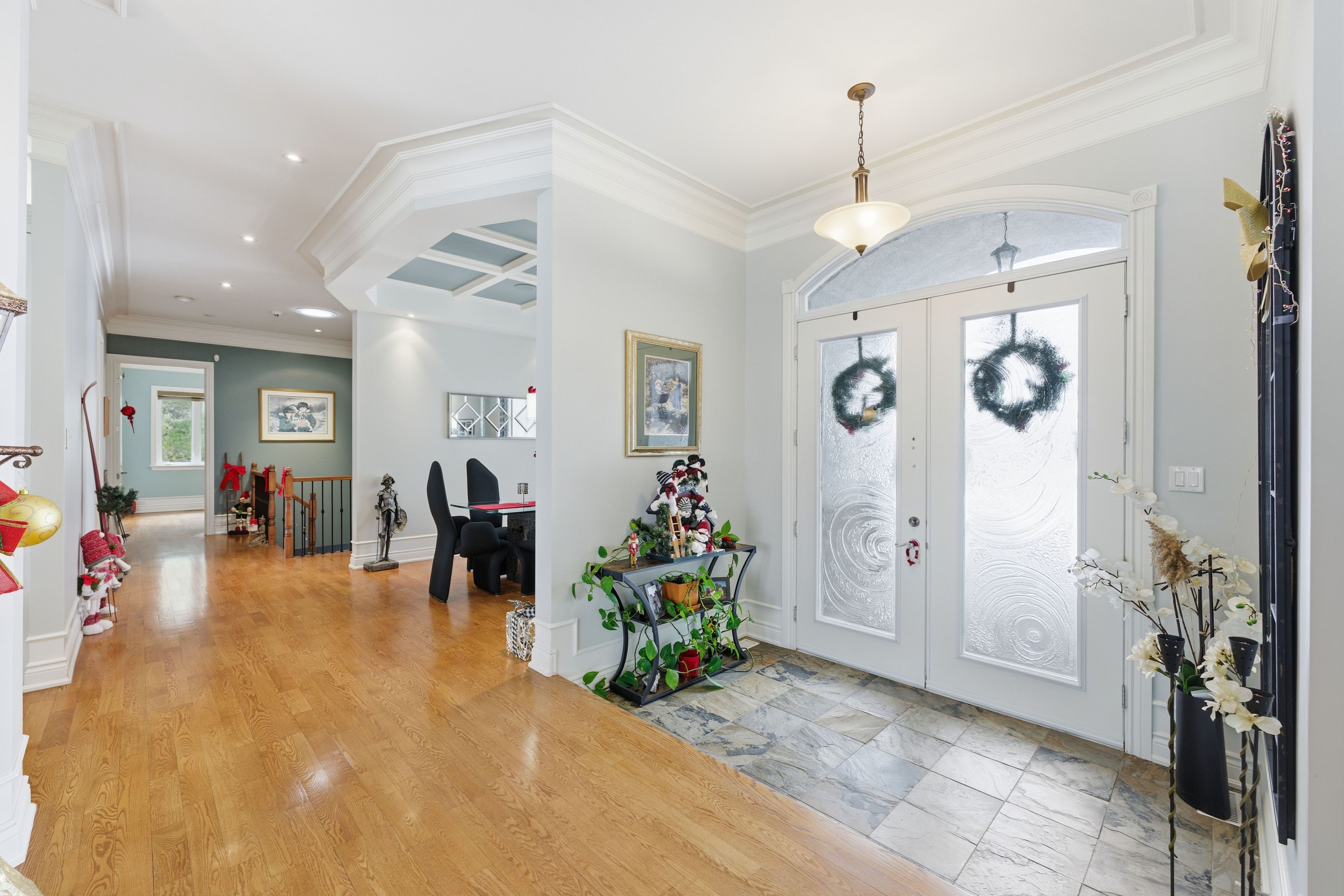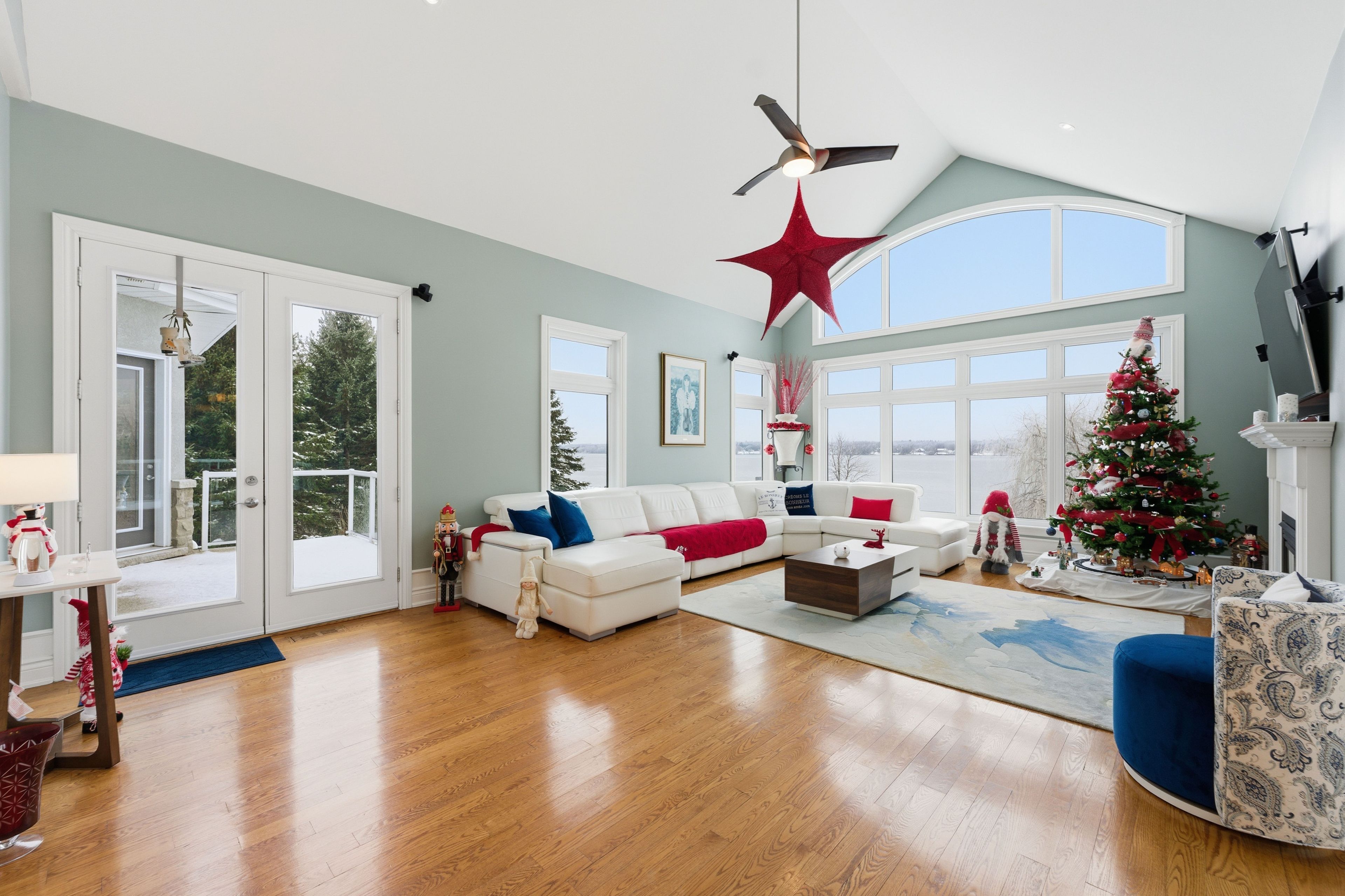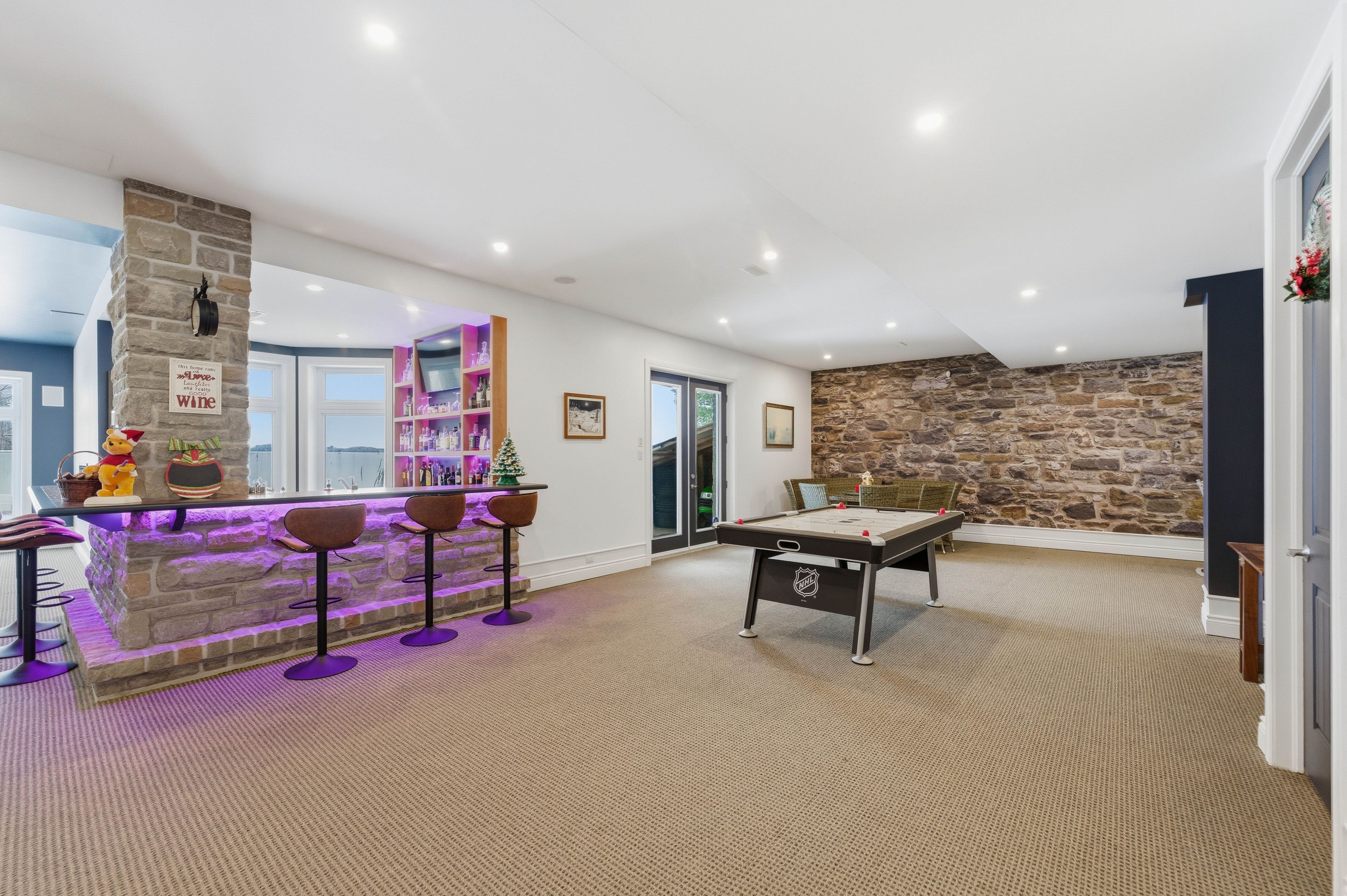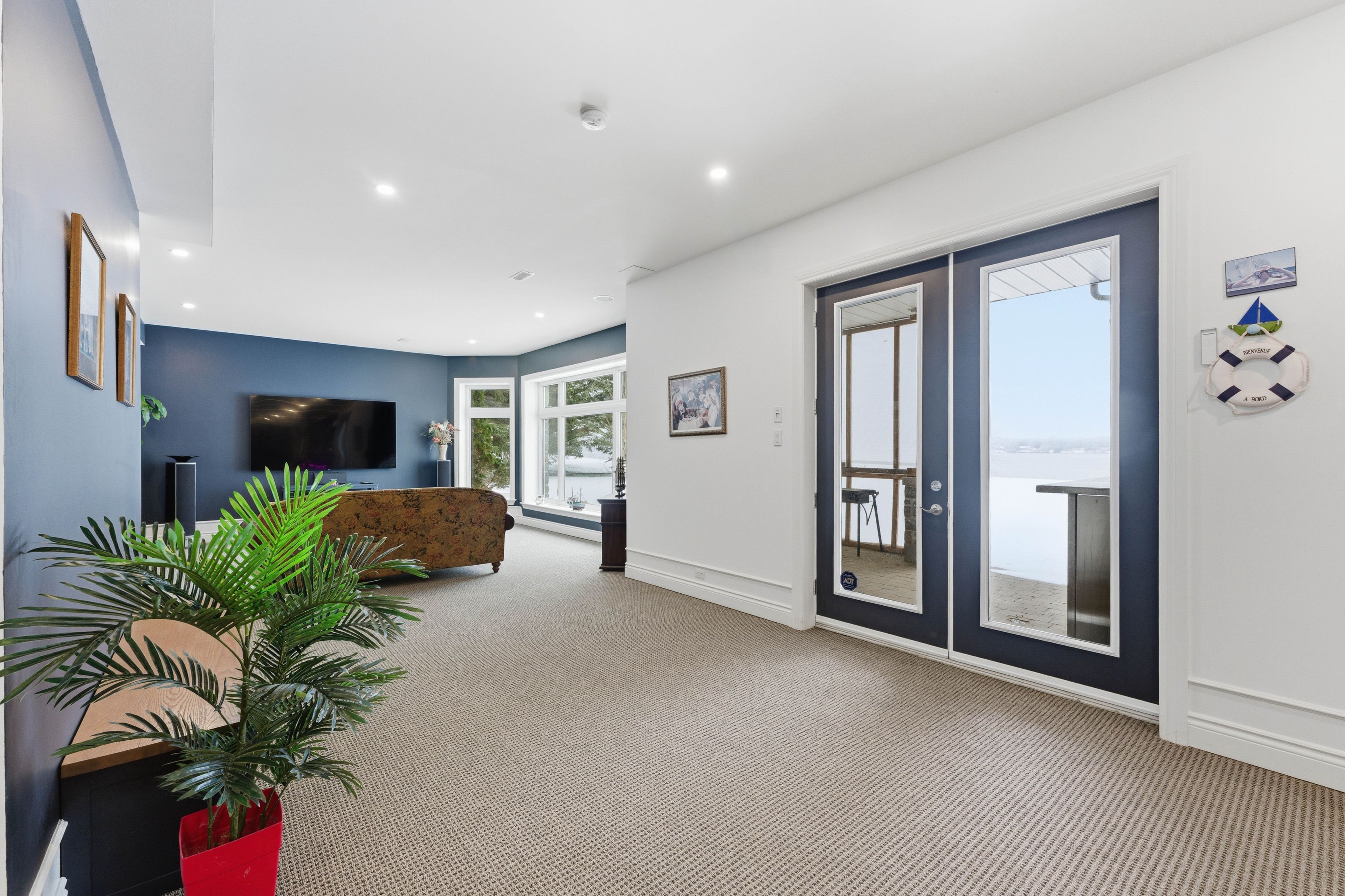 Exclusive executive waterfront estate offering over 200 ft of pristine frontage on the Ottawa River, located in the safest no-flood zone. This oversized bungalow features over 3,000 sq.ft. on the main level plus a fully finished 3,000-sq.ft. walkout basement, delivering exceptional space and panoramic river views.Designed for refined living and entertaining, the property includes a newly installed in-ground pool, triple garage, and seamless indoor-outdoor flow. Interior highlights include 10-ft ceilings on both levels, abundant natural light, and a rare layout where all three main-floor bedrooms feature private ensuites. A spacious executive office welcomes you, while the living room, kitchen, dinette, den, primary suite, and secondary bedroom all enjoy stunning water views. The walkout level offers a waterfront family room, game room, and home theatre.FRANÇAISDomaine exécutif riverain exclusif offrant plus de 200 pi de façade sur la rivière des Outaouais, situé dans une zone sécuritaire sans risque d'inondation. Ce bungalow surdimensionné propose plus de 3 000 pi au rez-de-chaussée ainsi qu'un sous-sol entièrement aménagé de 3 000 pi en rez-de-jardin, offrant des vues panoramiques exceptionnelles.Conçue pour recevoir et profiter pleinement du cadre, la propriété comprend une piscine creusée récente, un garage triple et une circulation intérieure-extérieure remarquable. L'intérieur se distingue par des plafonds de 10 pi aux deux niveaux, une luminosité abondante et une configuration rare où les trois chambres du rez-de-chaussée possèdent chacune leur salle de bain attenante. Le niveau inférieur complète l'ensemble avec salle familiale, salle de jeux et cinéma maison orientés vers le bord de l'eau.