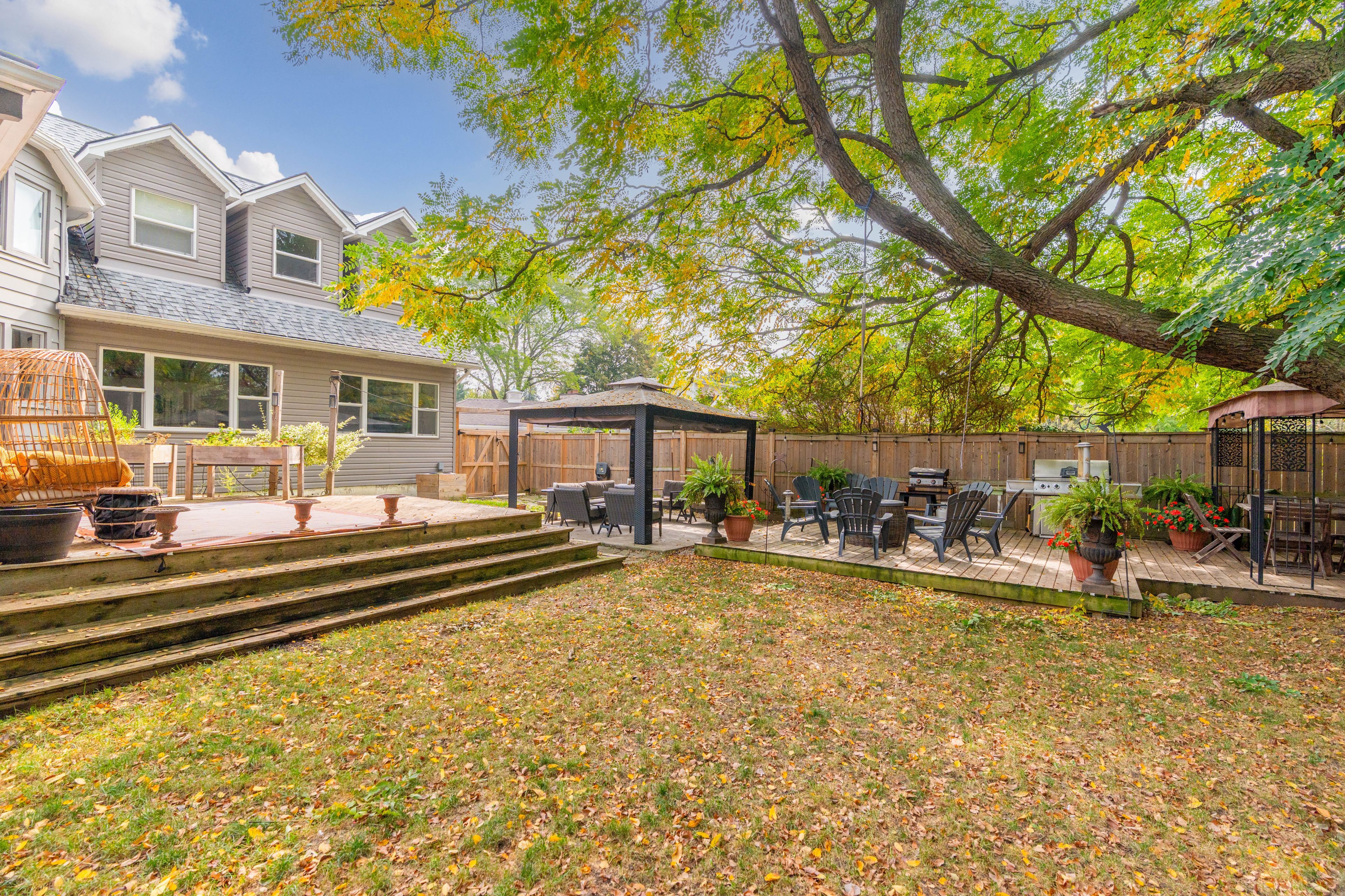 Welcome to 521 Upper Queen St., one of Highland's most remarkable homes situated on an impressive 70 ft x 200 ft lot with views of the 18th green at Highland CC. The home showcases timeless character with original hardwood floors, detailed millwork, and heritage features. A 1976 addition-updated with a stunning kitchen, dining, and family combined with the oversized attached garage addition (2021) ft. bonus rooms, has transformed this property into a highly functional, modern home! Inside, the living area at the front features a fireplace wall and an adjoining bonus room, perfect for a den. At the back, the updated kitchen boasts abundant cabinetry, an oversized island, stainless steel appliances, and wall-to-wall windows with peaceful views of the private, park-like yard. A powder room, laundry room, and large pantry add convenience. Upstairs, you'll find 4 bedrooms and 2 full bathrooms. The primary suite features cathedral ceilings, a full wall of windows with backyard views, a walk-in closet, and a 3-piece ensuite. The finished lower level offers a large rec room, bonus rooms, 3-piece bath, additional laundry area, and a partially finished bedroom with a new egress window, ideal for multi-generational living or rental potential. The oversized attached garage (2021) connects to the home via a bright mudroom hallway. Above and behind the garage are three finished rooms-perfect for offices, hobby spaces, guest suites, or a home gym.The sprawling backyard feels like a private park. Fully fenced with newer lower deck and framed by mature trees, including the rare Kentucky Coffee Tree! Offering privacy, shade, and views of the 18th green. Minutes from Wortley Village, Victoria Hospital, Highland Golf Course, and quick access to the 401, this historic, beautifully updated Highland gem is a rare find.