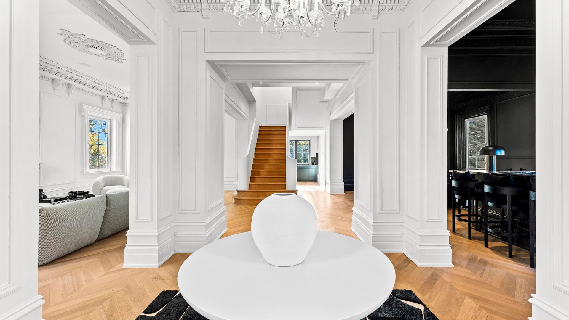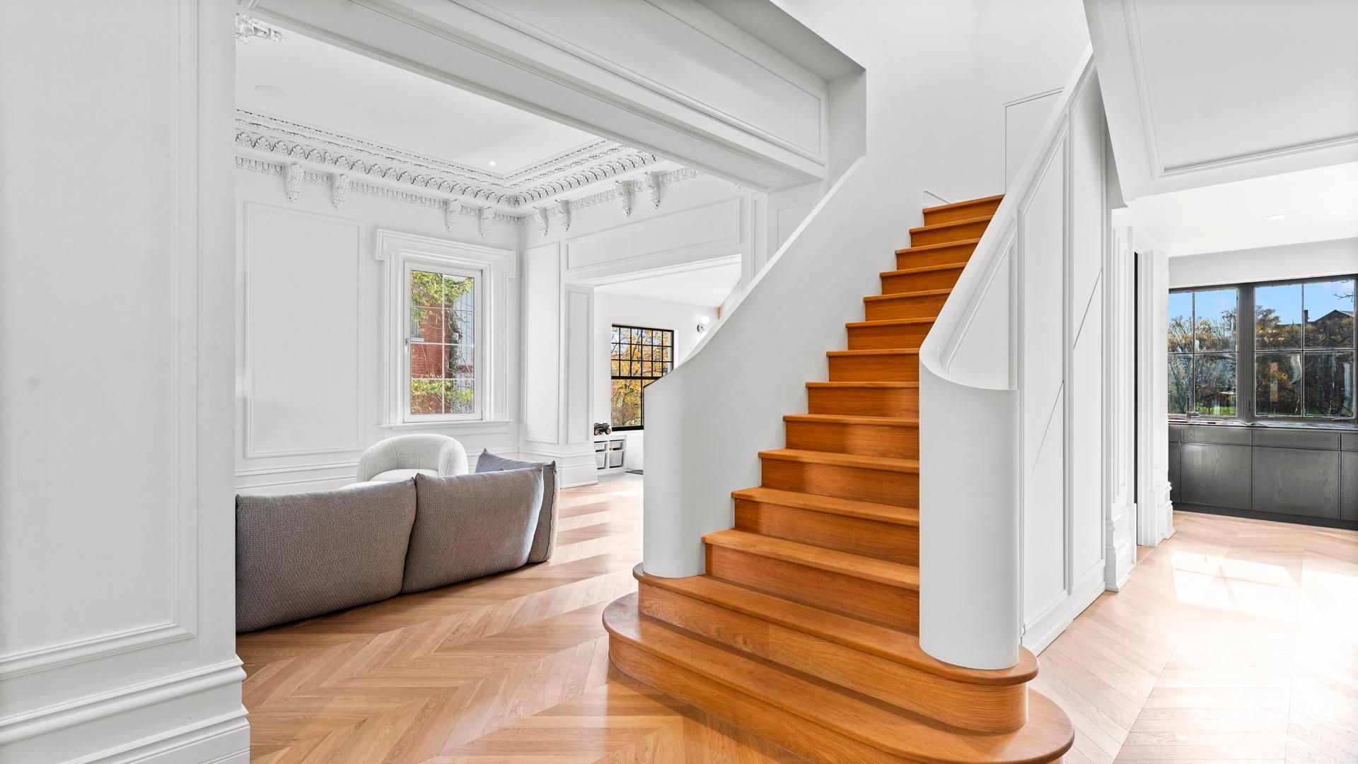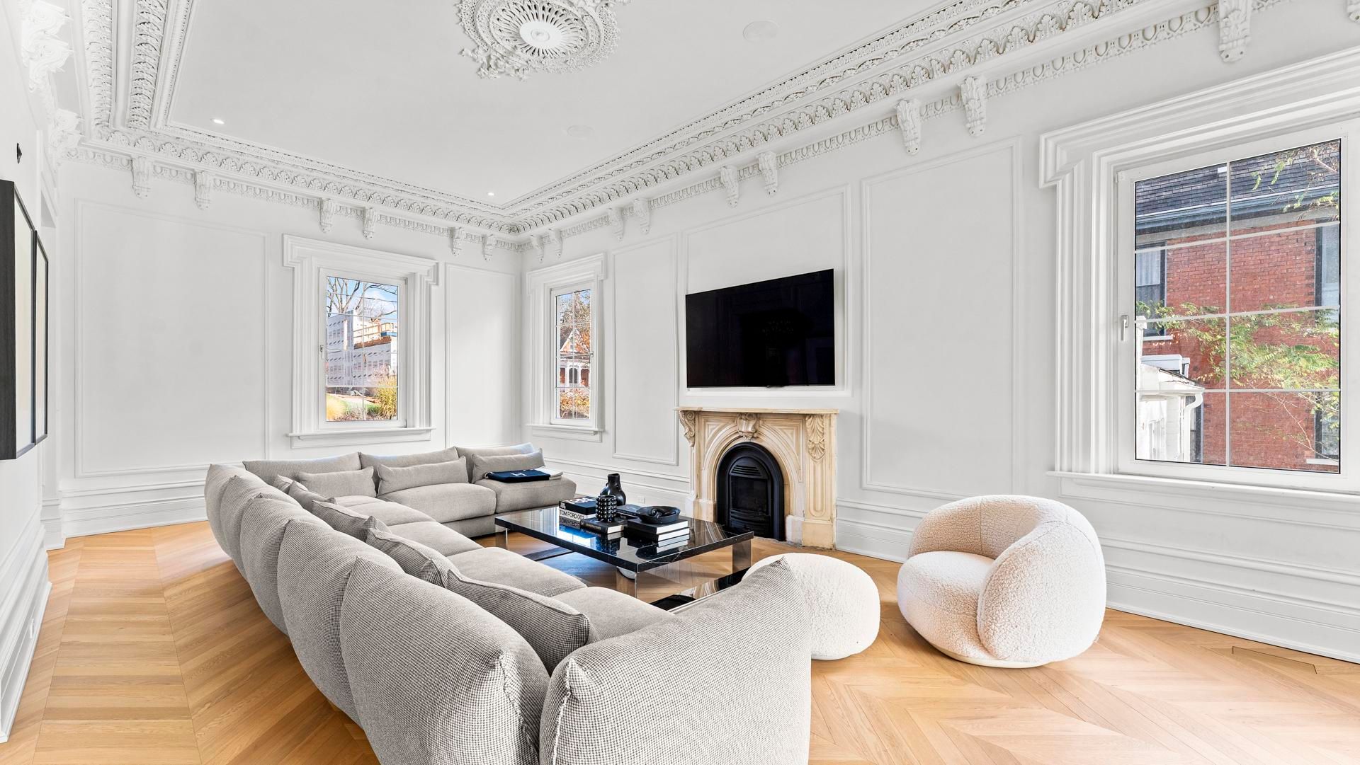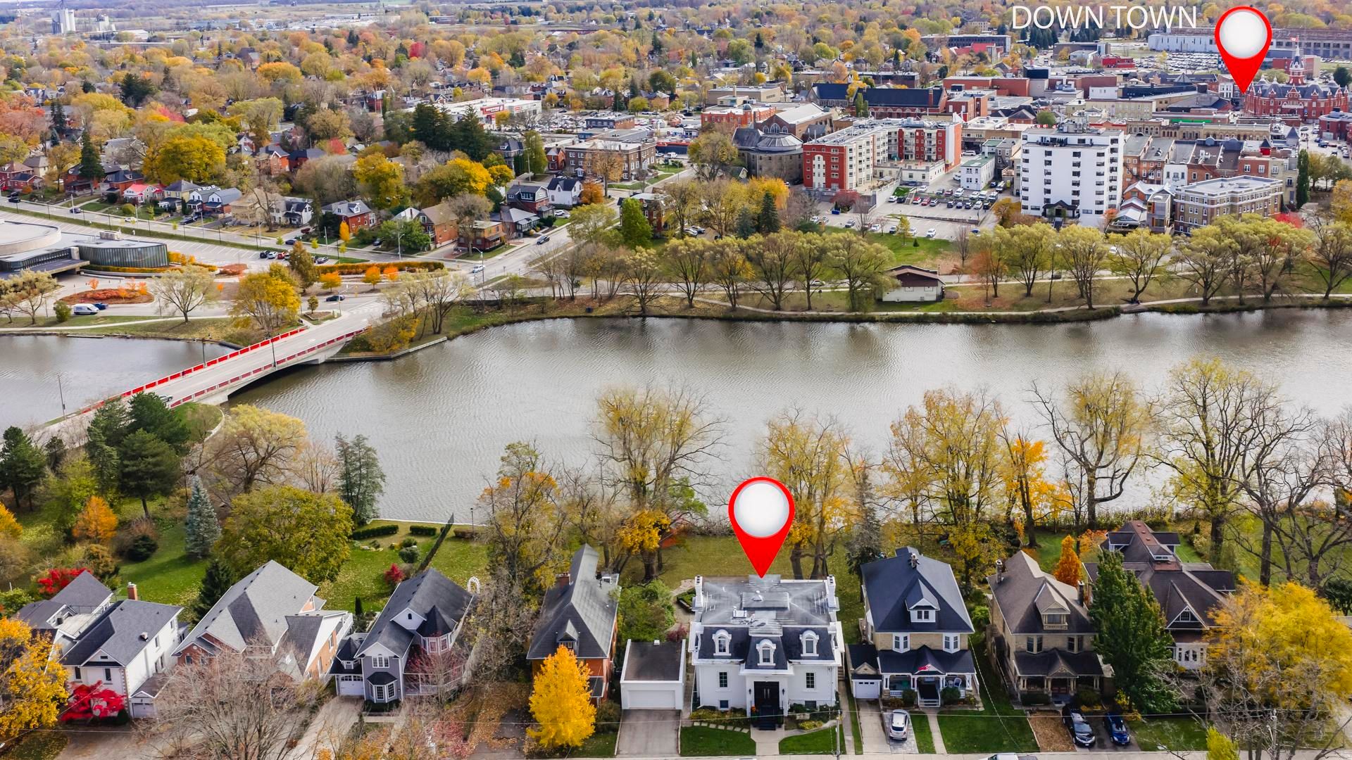 Welcome to a residence admired by all. This renewed Second Empire home is one of Stratford's most commanding waterfront properties-an 1870 architectural landmark rebuilt to modern standards while preserving its historic identity. Elevated above Lake Victoria with its own private shoreline, it offers sweeping, unobstructed views across the water to parks, trails, and the historic core. Multiple patios, balconies, and curated landscaping maximize the elevation, creating a rare combination of privacy and scenery.Inside, the home immediately reveals soaring ceilings and exceptional room scale seldom found today. A modern renovation creates a sophisticated interior wrapped in timeless heritage detail. Restored plasterwork, period millwork, and tall windows anchor every principal room. The main floor includes a dedicated cocktail lounge and bar area, seamlessly integrated into the original formal layout-ideal for refined entertaining and memorable gatherings. The custom centre staircase sets the tone for the entire interior as it rises as a sculptural statement to the second level, showcasing the scale and craftsmanship of the restoration.The kitchen and baths are fully rebuilt with custom cabinetry, stone surfaces, and premium fixtures. All electrical, plumbing, HVAC, insulation, and mechanical systems are new. The lower level is a true walk-out, finished as a five-star private apartment overlooking the lake, offering full-height ceilings and direct outdoor access-ideal for guests, extended family, or professional use.The fully detached garage adds opportunity for the car enthusiast, with a lower garden room providing additional storage or a dedicated gardening workshop.The 3-bedroom plan blends original craftsmanship with modern engineering, eliminating the compromises typical of 19th-century homes. Experience of architectural quality, elevated waterfront living, just minutes from Stratford's world-class theatre, dining, shopping, parks, and seasonal events.