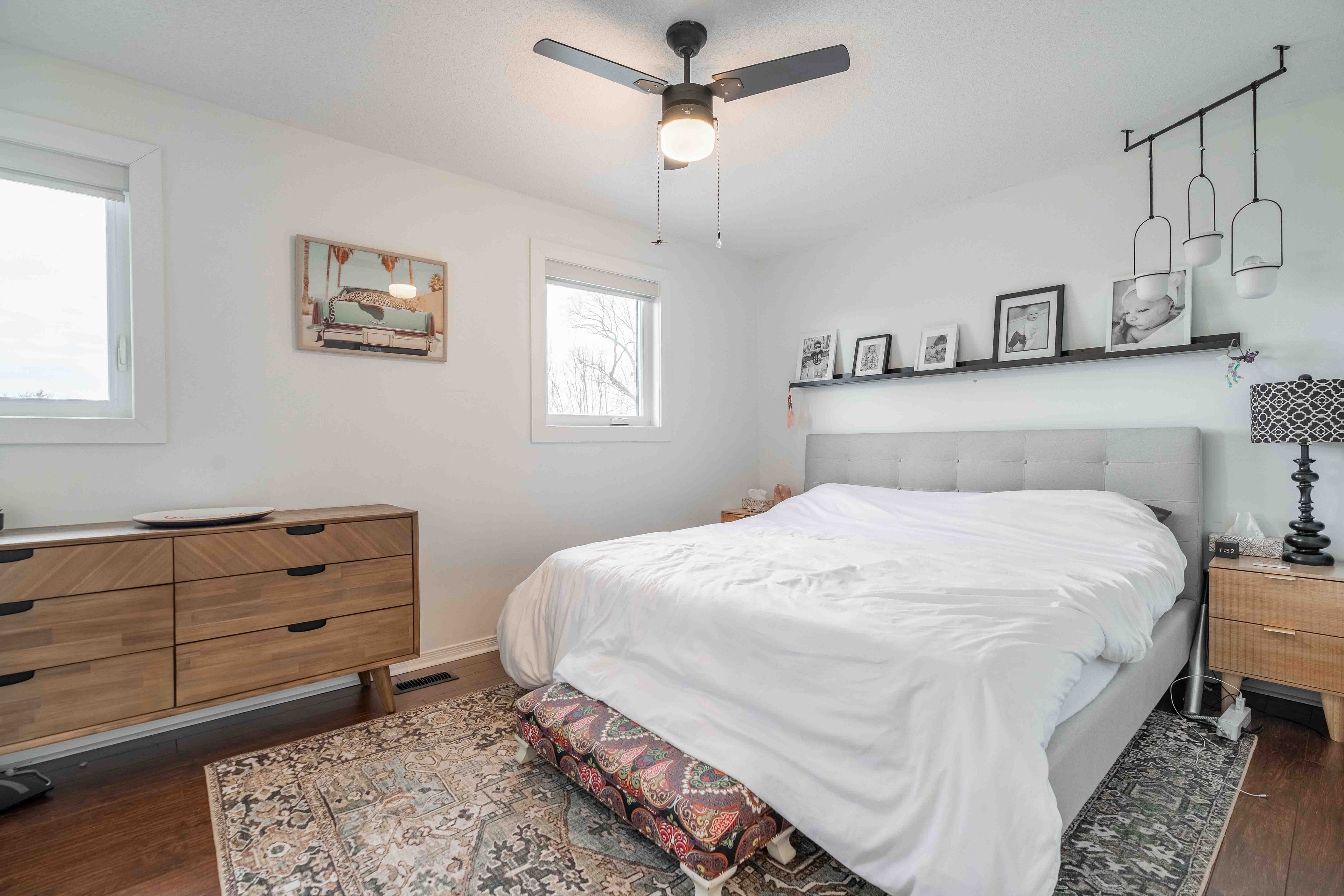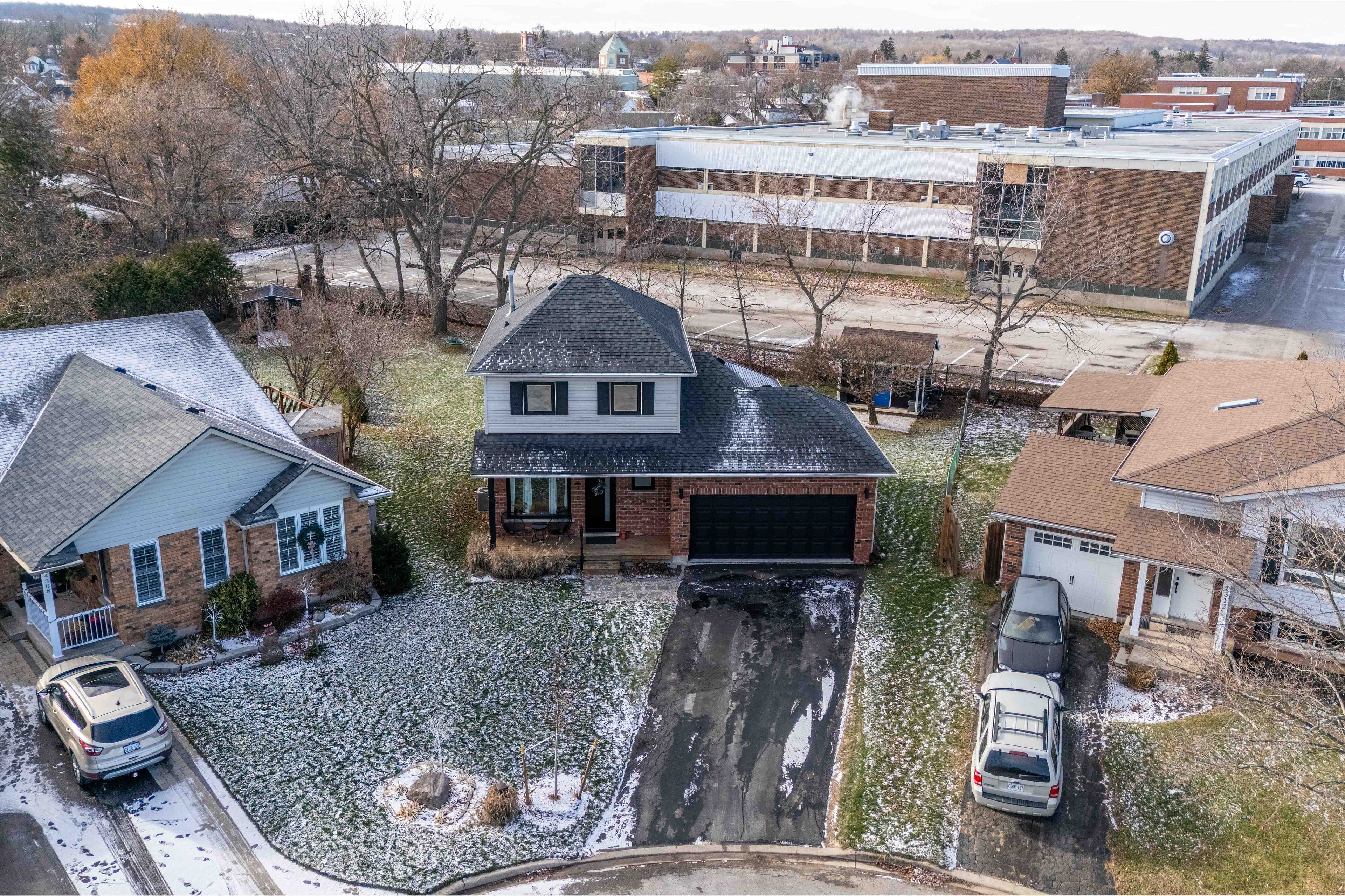 Welcome to this beautifully maintained 2-storey home tucked away on a quiet court and set on a rare pie-shaped lot, offering extra outdoor space and privacy. Featuring a double car garage and stunning curb appeal! Enjoy modern finishes including a stylish kitchen highlighted by butcher block countertops and tiled backsplash, creating a warm yet contemporary feel. The basement features new flooring (2025), offering a sleek second living area or rec room, perfect for kids, entertaining, or relaxing movie nights. Pride of ownership is evident with numerous major mechanical upgrades, providing peace of mind including: roof (2021), air conditioning (2021), windows and doors (2022), and furnace (2025).Perfectly located and thoughtfully updated, this home offers comfort, efficiency, and style in a family-friendly setting.