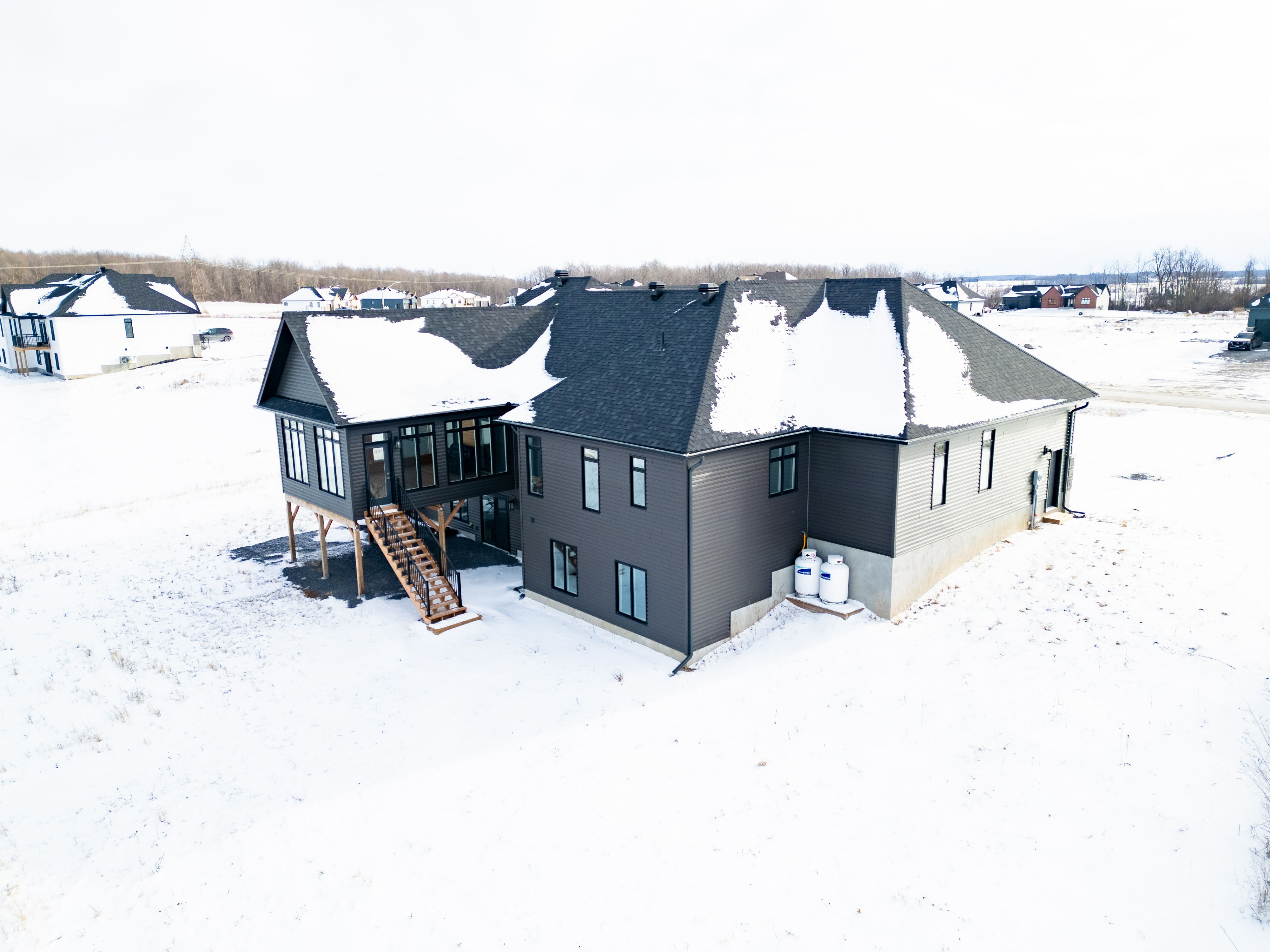 Experience the pinnacle of sophisticated living in this 2025-built architectural masterpiece, perfectly situated on an expansive 0.75-acre lot within the prestigious Russell Ridge Estates. Boasting over $235,000 in premium upgrades, this "Country Modern" raised bungalow offers a seamless blend of luxury and functionality, featuring a 3-bedroom plus den layout and 4 exquisite bathrooms, including a convenient 2.5-bath configuration on the main level. The grand interior is defined by soaring 9-foot, cathedral, and tray ceilings, complemented by a carpet-free environment adorned with upgraded 24x24 designer tiles throughout. At the heart of the home lies a true Chef's Kitchen with built-in professional-grade appliances and quartz countertops, flowing into a living area anchored by a cozy gas fireplace. Transitioning from the main living space is a magnificent, oversized sunroom, offering a serene, light-filled sanctuary to enjoy breathtaking views of your estate. The primary sanctuary is a masterclass in comfort, offering a walk-in closet and a spa-like ensuite featuring a freestanding tub and glass shower. The partially finished walk-out basement adds incredible value, already featuring a completed full bathroom and a separate patio entrance, offering immense potential for an in-law suite or expanded living space. With a 3-car garage (9 total parking spots) and Energy Star Certification, this home ensures high efficiency without compromising on style. Located just 5 minutes from Russel Town and 25 minutes from downtown Ottawa and backed by a Tarion Warranty, this property represents a rare opportunity for discerning buyers seeking almost brand-new, high-end estate with unparalleled modern comforts. Call Vardaan Sangar at 819.319.9286 for booking your next showing!
