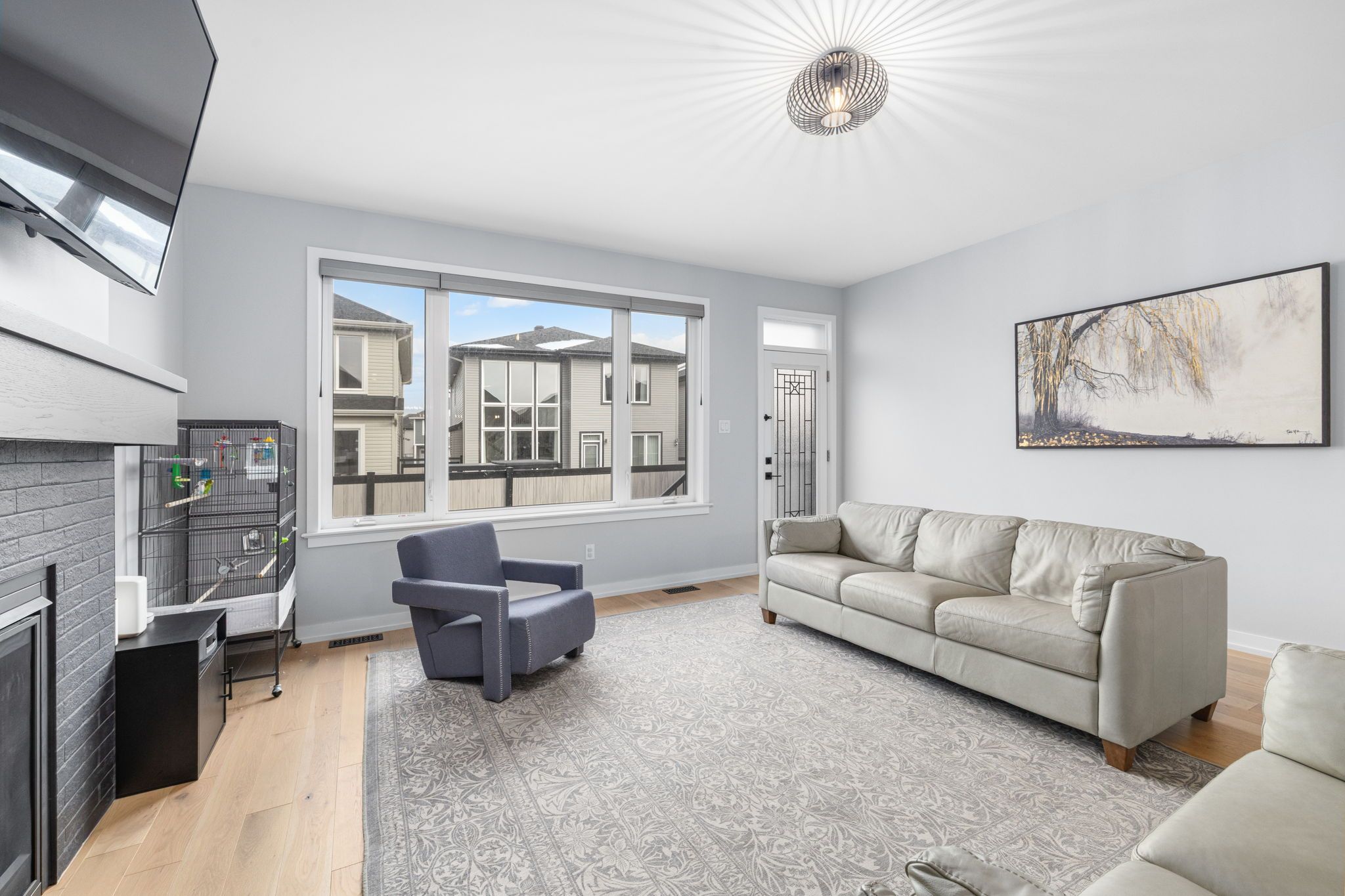 OPEN HOUSE Sunday, January 11, 2-4 pm - Welcome to 432 Gidran Circle, a beautifully appointed Cardel Capella 2 bungalow built in 2023, located in the highly desirable Blackstone community on the edge of South Kanata and Stittsville. Situated on a quiet street, this west facing 2+2 bedroom, 3-bathroom home offers lovely curb appeal, a thoughtful layout, and a private fully fenced backyard on a 37.99' x 109.02' lot. The open-concept main level features wide plank hardwood floors, high ceilings, custom blinds and curated light fixtures. The stunning kitchen with quartz countertops, stainless steel appliances, built-in microwave, walk-in pantry offers a seamless flow to the spacious great room with gas fireplace and abundant natural light. The primary bedroom is accessed through elegant double doors and includes a walk-in closet and a luxurious five-piece ensuite with dual vanities, walk-in shower with seat, separate water closet, and linen storage. A second main-level bedroom with walk-in closet, a full four-piece bath, and a convenient laundry/mudroom with garage access complete this level. The fully finished lower level offers luxury vinyl plank flooring, generous recreation space ideal for a home gym or office, two additional bedrooms, a three-piece bathroom with walk-in shower. There is ample unfinished space plus storage under the stairs. The double attached garage includes an EV charger, with parking for up to six vehicles total. Additional features include central vacuum, HRV, and automatic garage door openers, and Celebrite lights. The backyard is a true showpiece, featuring a 10' x 20' inground saltwater pool installed by Rideau Pools in September 2023, a crushed stone patio and BBQ area with fire table, a standing umbrella, and a 7' x 7' shed for pool equipment. A rare opportunity to own a turnkey bungalow with premium upgrades and exceptional outdoor living space!