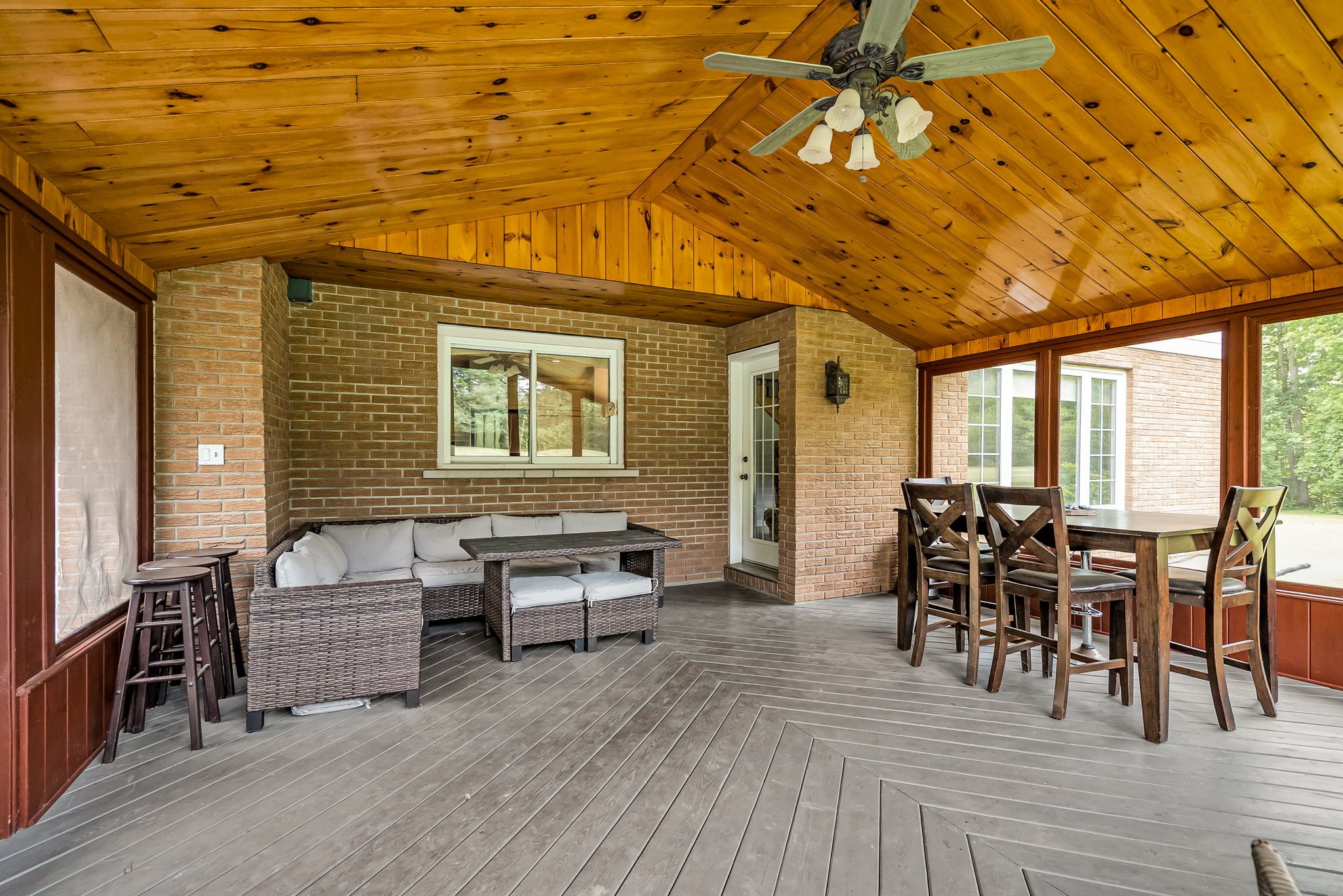 - Exterior Features: Deck, Privacy, Porch Enclosed, Private Pond