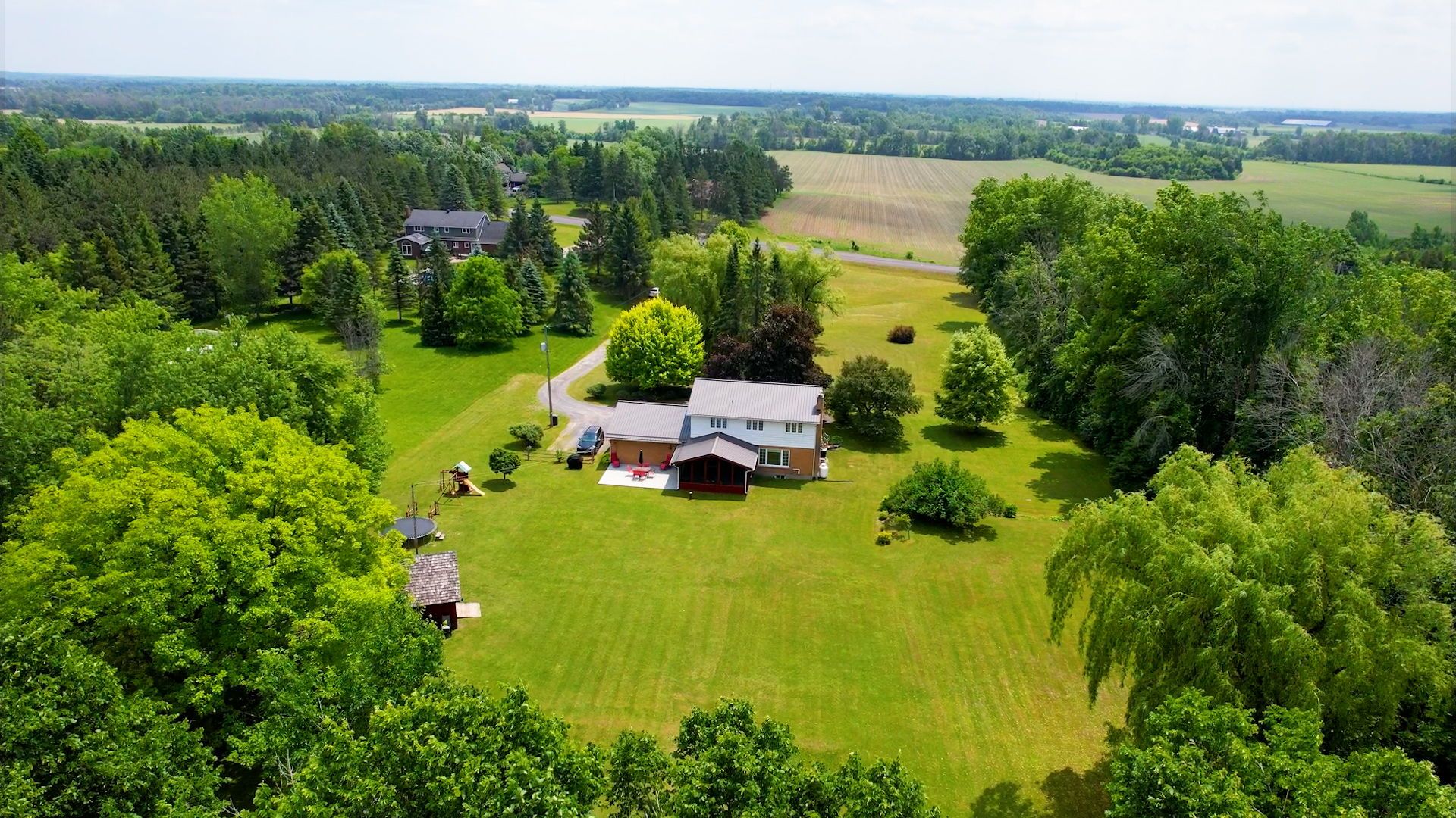 Welcome to this charming country retreat set on 2.98 acres of natural beauty, just a short drive from Cornwall. A long, private laneway leads you to a tranquil setting complete with a scenic pond home to turkeys, fish, and frogs surrounded by mature trees, including apple trees, that provide both privacy and beauty.Inside, this well-maintained home offers comfort and convenience at every turn. The main level features a cozy propane fireplace in the living room, a spacious dining area, a bright kitchen that overlooks the screened-in porch and expansive backyard, and a convenient 2-piece bathroom. Main-floor laundry, central vacuum, and interior access to the attached garage add extra ease to daily life.Upstairs, youll find four generous bedrooms and a full bathroom. The primary suite is a standout with his-and-hers closets, a cedar closet, and a private 3-piece ensuite.The fully finished basement includes a utility room, ample storage space, and direct access to the garage ideal for practicality and organization. Additional features include a durable metal roof and a new heat pump (2024) for efficient year-round comfort. A backyard shed adds even more outdoor storage.This is a rare opportunity to enjoy peaceful, scenic country living with all the modern features just minutes from town. Come see it for yourself! 24 Hour Irrevocable on all offers.