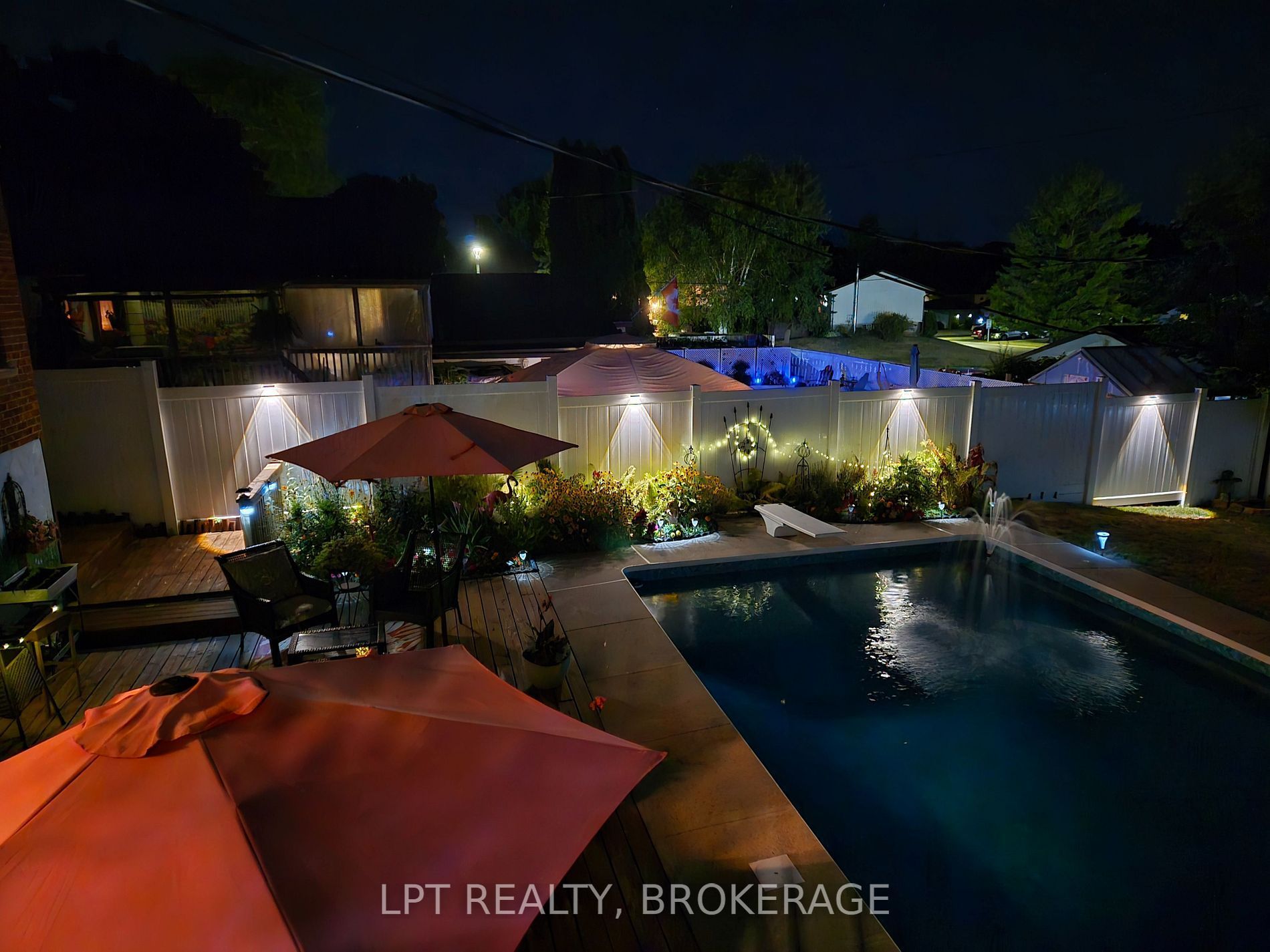 Discover your dream home in Kingston's coveted west end-a stylish and desirable 4-bedroom, 2.5-bathroom, two-storey home that exudes both class and comfort. Step inside to find an inviting main floor where natural light streams through oversized windows, highlighting elegant finishes and an open layout ideal for everyday living and entertaining.The heart of the home is the chef's kitchen, complete with gleaming quartz countertops, a custom greenhouse window overlooking the backyard, and ample cabinet space. Gather around the center island or spill out onto the extensive decking for dining and evening sunsets.Downstairs, the fully finished walk-out basement offers a spacious family room, and a beautifully appointed bathroom with in-floor heating for year-round comfort. Every corner reflects thoughtful updates from siding, roof, appliances, kitchen, bathrooms, furnace and a/c just to mention a few.Outside, your private oasis awaits: an inground pool framed by lush landscaping, plenty of patio space, and a tiki bar ready for summer gatherings. This turnkey home invites you to move in with your family and start making memories from day one. Don't miss this west end gem-stylish, updated, and completely move-in ready. A SHOWING FEE OF 50% OF THE SELLING SIDE COMMISSION (PLUS HST) WILL BE WITHHELD BY THE LISTING BROKERAGE IF THEY INTRODUCE/SHOW CO-OPERATING BROKERAGE'S EVENTUAL BUYER, BUYER'S SPOUSE, PARTNER OR IMMEDIATE FAMILY MEMBER TO THE PROPERTY THROUGH A PRIVATE SHOWING.