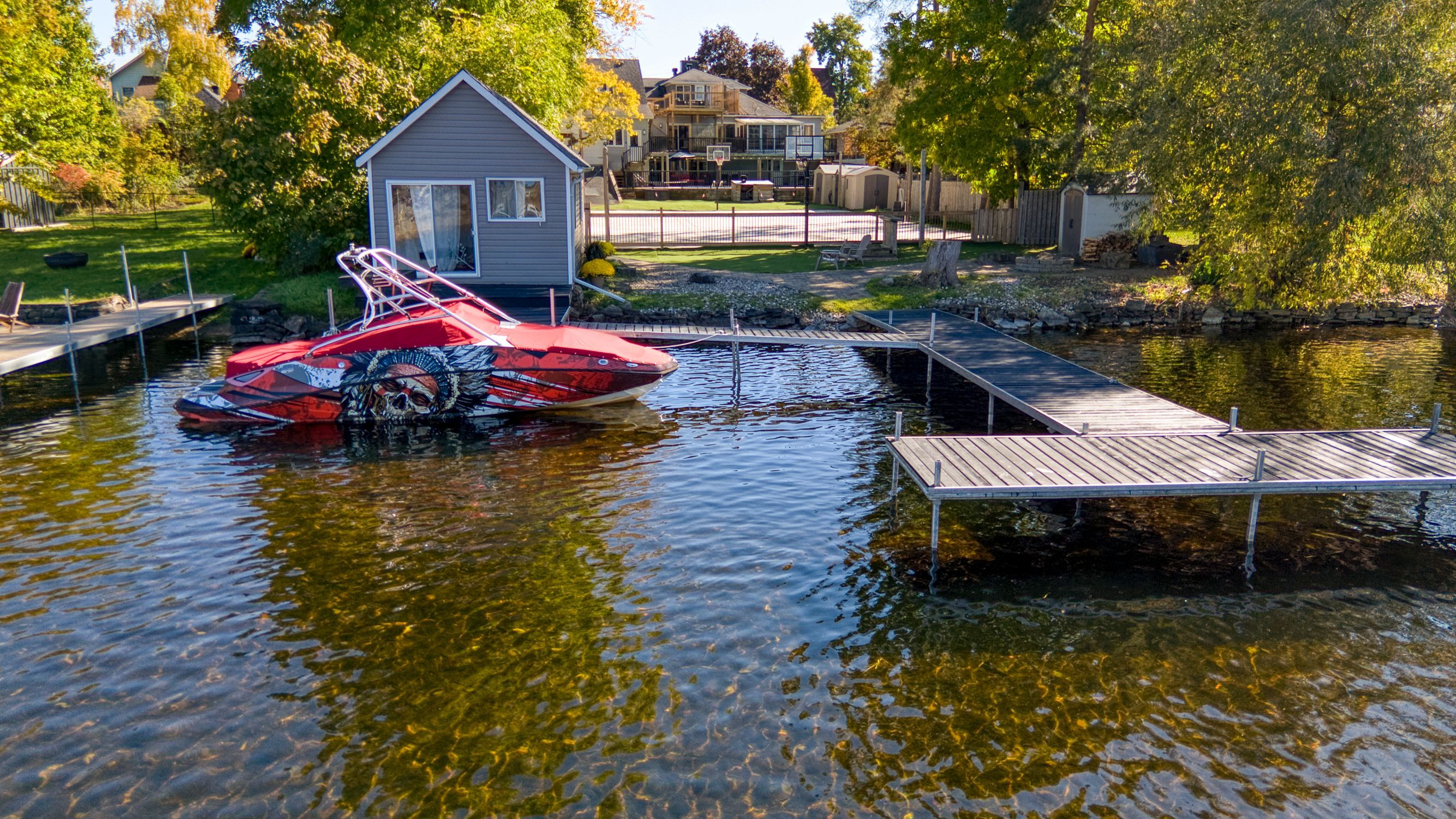 - Waterfront Features: Dock, Boathouse