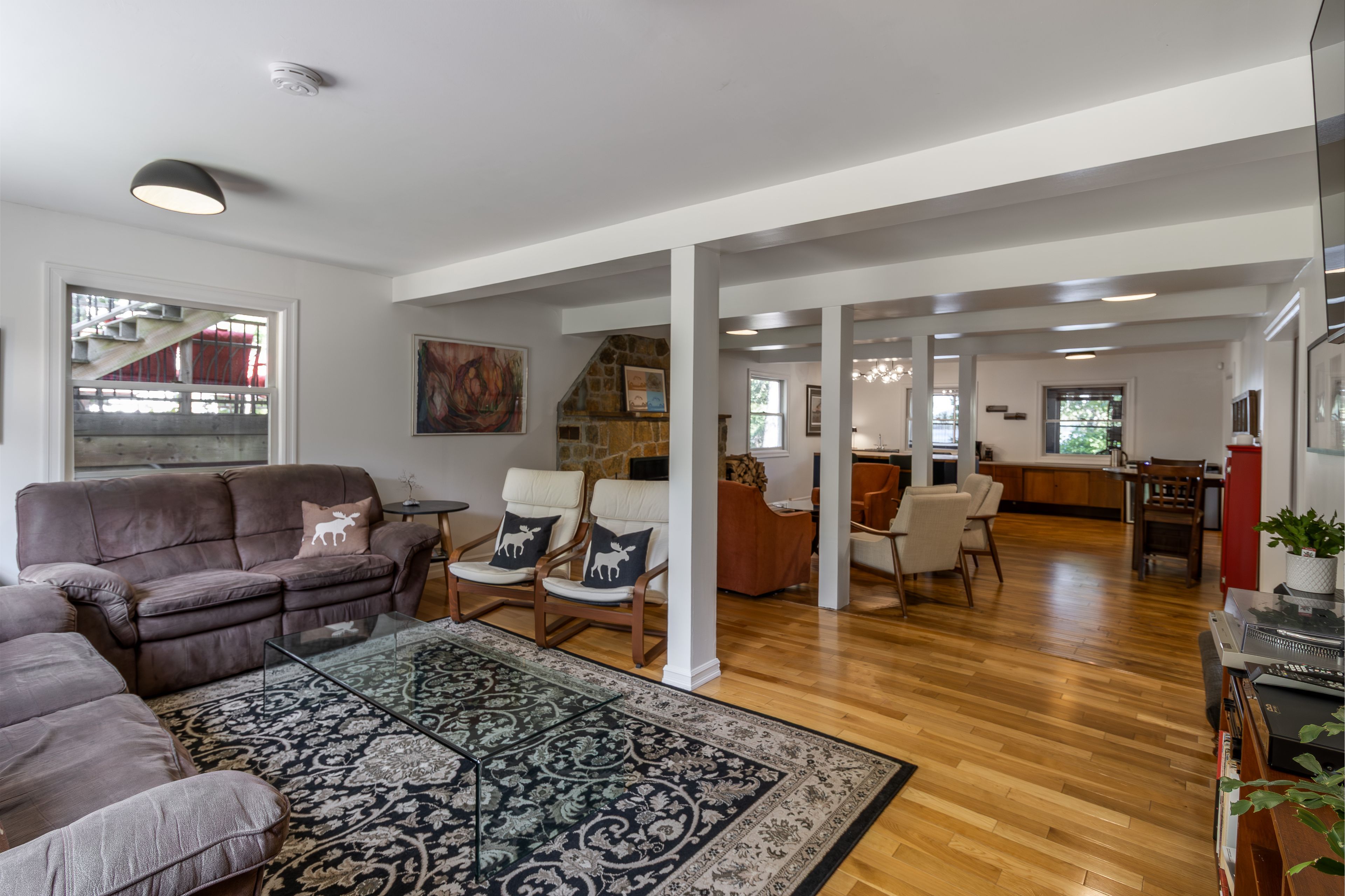 Welcome to Oakview Lodge, a rare waterfront estate on the shores of Little Hawk Lake in the heart of Algonquin Highlands. Thoughtfully updated while retaining its historic charm, this exceptional property offers a unique opportunity to create a private family compound, legacy retreat, or luxury cottage destination - with the added benefit of income potential. The main lodge offers over 8,500 square feet across 4 levels, blending classic lodge character with modern comfort. A wrap-around veranda welcomes you with sweeping lake views, while inside, the main level features expansive sitting, dining, & living areas anchored by a striking stone fireplace. A spacious chef's kitchen designed for large gatherings includes a walk-in pantry/laundry & opens to a screened BBQ porch, seamlessly connecting to a landscaped & private backyard with a central fire pit. The second floor features 6 updated bedroom suites, each with its own ensuite, providing comfortable accommodations for family & guests, along with access to a shared deck overlooking the lake. The third floor is dedicated to a fully self-contained 3-bedroom owner's retreat, showcasing exceptional craftsmanship, an open-concept kitchen & living area, in-suite laundry, a private balcony, & stunning lake views. The property also includes a charming 2-bedroom year-round guest cottage & an oversized 2-car garage with a loft currently used as a seasonal art studio, offering excellent flexibility for guests or creative use. Set on the pristine shoreline of Little Hawk Lake, Oakview Lodge includes established dockage & marina facilities, providing effortless access to the water & a opportunity for supplemental income. Surrounded by natural beauty and close to excellent hiking trails, this remarkable property offers privacy, recreation, & refined lakeside living. Whether envisioned as a multi-generational estate, private retreat, or legacy property, Oakview Lodge is truly one-of-a-kind.