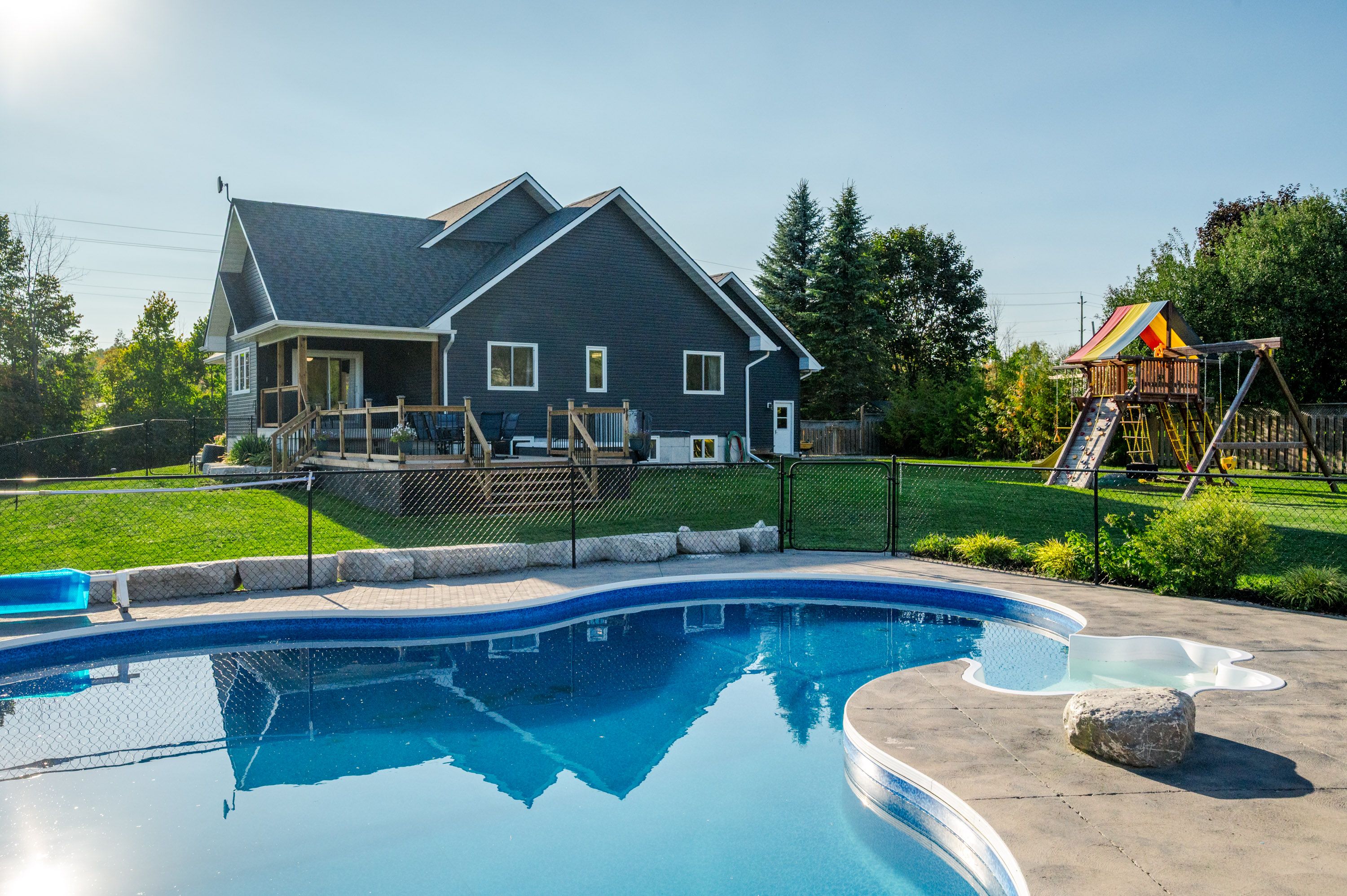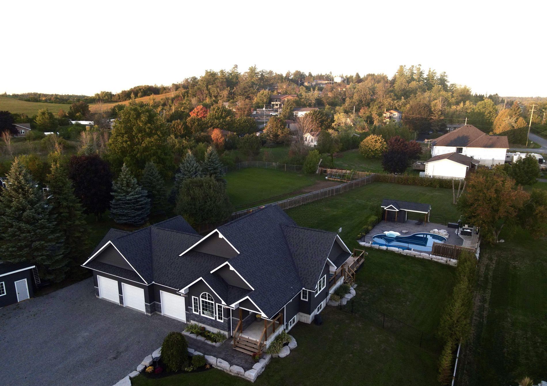 Discover a perfect blend of luxury, space and adventure in Hastings! This stunning 2017-build home sits on nearly an acre of lush, private rural land, boasting deeded waterfront access to the Trent River - a rare gem for boating and fishing enthusiasts. With 5 spacious bedrooms, 3 baths and a fully finished basement including a massive rec room, it's ideal for growing families to create lasting memories or retirees seeking a serene retreat. Seize the day watching the sunrise over your heated saltwater pool, or relax while watching sunsets across the farmers fields, cozied up by the gas fireplace. Enjoy stainless steel appliances, convenient main floor laundry and a luxurious primary bath with a deep soaker tub and glass shower. The fully fenced yard offers endless possibilities for gardening, play area or pets, with plenty of room to expand whatever you've been dreaming of. Winter chores are a thing of the past thanks to the triple car heated garage, plus a 160 sf driveshed offers tons of room for storing ATV's and equipment. Benefit from municipal services and the charm of Hastings village just minutes away, where year round outdoor adventure awaits - boating, fishing, snowmobiling, cycling and hiking right at your doorstep. Whether you are raising a family or enjoying retirement, this property checks all the boxes!
