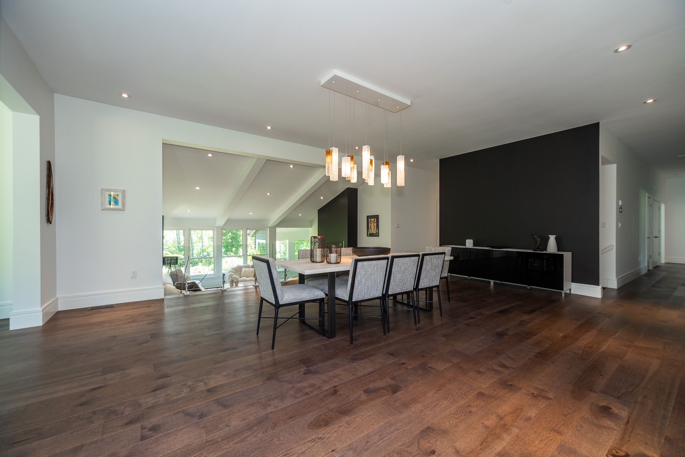Luxurious contemporary home set on 50 scenic acres of mixed forest, meadows, and manicured outdoor living spaces. The main level features a sunken living room with gas fireplace, open dining area, and a chef's kitchen with granite countertops, large island, abundant storage, and walk-out to a deck with natural gas BBQ. Adjacent are a bright dinette and screened porch for three-season outdoor dining and entertaining. The primary suite includes dual walk-through closets with built-in cabinetry and an ensuite bath with soaker tub, glass shower, and in-floor heating. Three additional bedrooms, including one with a sitting room and balcony, offer ample space for family and guests. The finished lower level provides a large family room, three-piece bath, laundry, storage rooms, and an attached garage with EV charging outlet and garden entrance to a two-bay drive shed. Modern features include ICF construction, air exchanger, UV water treatment, whole-home surge protection, motorized window shades, Starlink internet, and smart home systems. Enjoy over 4 km of private trails through hardwood forest, regenerating meadows, and orchard trees with sweeping countryside views. Conveniently located on a paved road with natural gas, minutes from Markdale shopping, dining, and hospital, and close to organic farms, the Bruce Trail, skiing, golf, conservation lands, and lakes, this is a four-season retreat in the heart of West Grey.