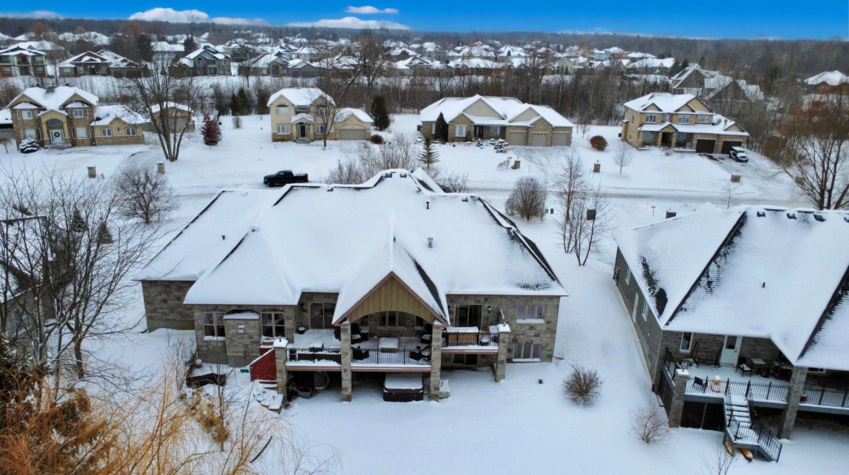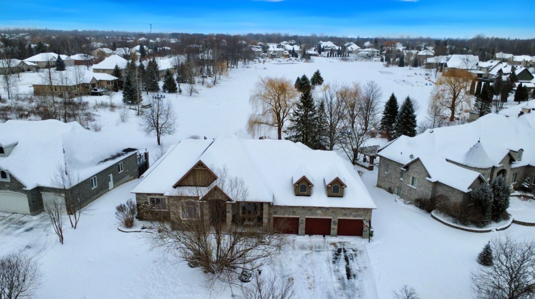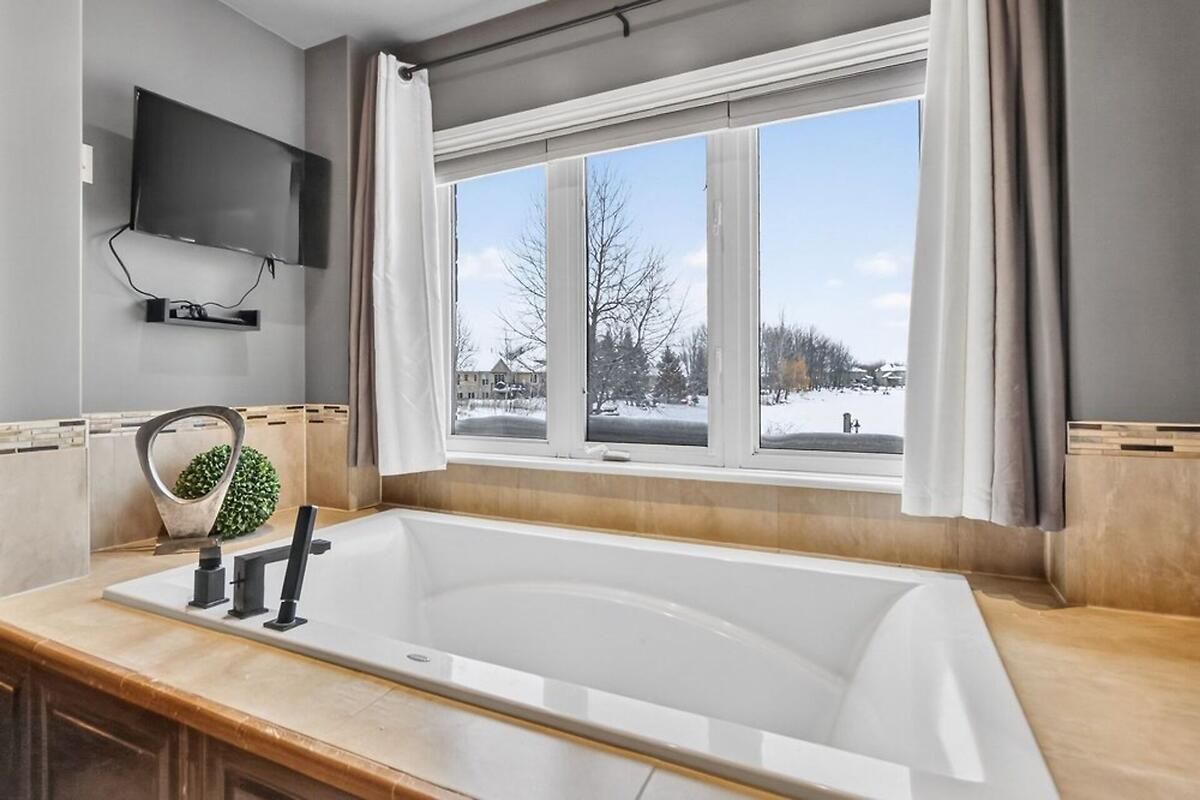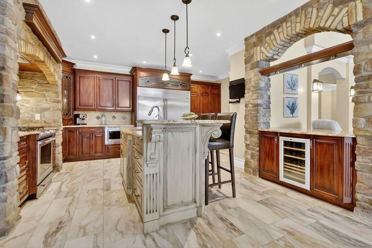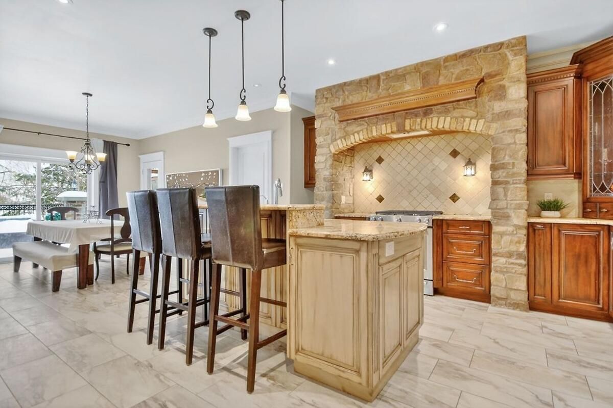 *OPEN HOUSE THIS SUNDAY, JAN 18 FROM 2-4PM* Welcome to a truly exceptional waterfront bungalow with walkout lower level in Greely, where timeless craftsmanship, thoughtful design & breathtaking natural surroundings come together to create a home that is both luxurious & welcoming. The home impresses immediately with dramatic architectural elements, including soaring 12-foot vaulted ceilings with exposed wood beams, a striking floor-to-ceiling stone fireplace & an elegant stone archway leading into the eat-in kitchen. Large windows flood the main living area with natural light & frame picturesque waterfront views, creating a warm and inviting atmosphere ideal for both everyday living & entertaining. The kitchen is thoughtfully designed with generous workspace and storage, seamlessly connected to the living & dining areas. One of the home's standout features is the expansive balcony overlooking the water, accessible from both the kitchen & primary bedroom-perfect for morning coffee or evening relaxation. The primary suite is a private retreat featuring a spa-inspired 6-piece ensuite & an exceptionally deep 14-foot walk-in closet. Two additional main-floor bedrooms offer flexibility for family, guests, or home office use, while main floor laundry adds everyday convenience. The walkout lower level dramatically expands the living space, offering direct access to the yard & waterfront. This level includes two generously sized bedrooms, each with its own large walk-in closet, expansive open living areas & an additional kitchen, making it ideal for an in-law suite or extended family living. Outside, the beautiful waterfront setting & large yard provide endless opportunities for outdoor entertaining, recreation & relaxation. With spectacular attention to detail throughout, a lodge-inspired interior, and six bedrooms across a well-designed layout, this remarkable home offers a lifestyle of comfort, elegance & lasting value. Hydro approx. $330/mo, Gas approx. $110-170/mo