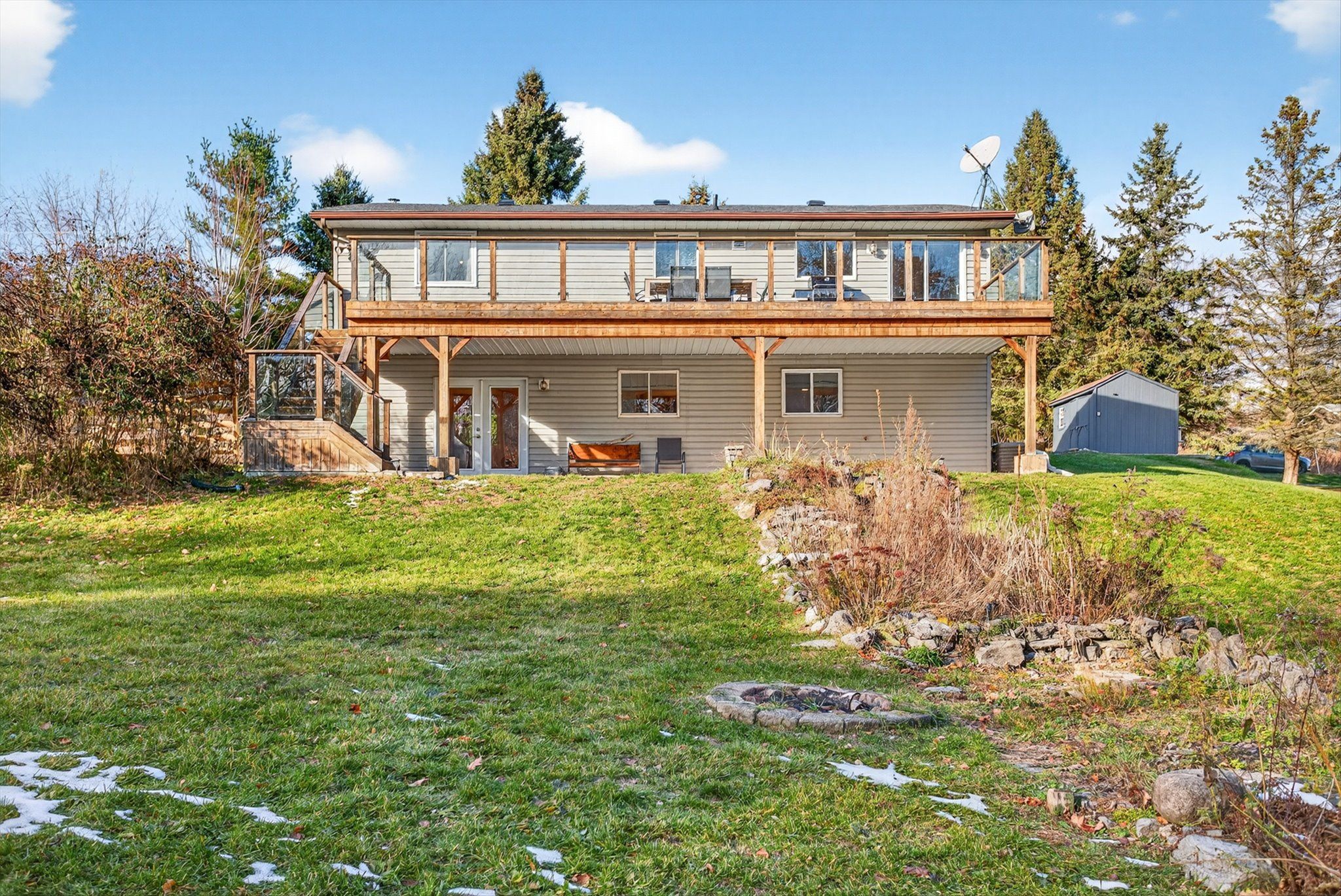 FABULOUS & STUNNING LOCATION!!! Nestled on a beautiful country lot, this sweet and cheerful raised bungalow comes with a walk-out basement that is perfect for you & your family. Surrounded by picturesque views, pretty gardens, & mature trees, this charming property offers the peace & tranquility you've been dreaming of. This home is great whether you're a first-time home buyer or looking to downsize. This home is a wonderful fit for anyone feeling the pull to a simpler, quiet lifestyle & those seeking to escape the hustle and bustle of busy city living. Step inside & fall in love with the open-concept living room, kitchen, & dining area that flood with natural light. The inviting living room features acustom accent wall & a built-in electric fireplace-perfect for cozy evenings after a chilly day. The kitchen offers plenty of cabinetry, stainless steelappliances, & an easy flow into the dining area and a walk out to a large raised deck that was added in 2019. It's ideal for entertaining friends &family or simply relaxing while you enjoy your private backyard, complete with a peaceful wooded backdrop & a gentle creek off in the distance. This lovely home offers four bedrooms & two full bathrooms, providing plenty of space for everyone. The bright lower-level family room includes a walk-out to a covered patio, wood-burning fireplace, & large windows that let in even more natural light. There's also a convenient storage room& laundry area located in the utility space. This home has had several updates including: Shingles replaced in 2021, New Septic lids & pump in2019, New septic inlet baffle in 2024, Furnace & Central Air 2017, owned on demand hot water tank 2022. This home has been pre-inspected for your peace of mind. From the moment you walk through the front door, you'll feel the warmth and comfort that make this house truly feel likehome. Come experience the charm, the serenity, & the country lifestyle you've been looking for. Your new home awaits!