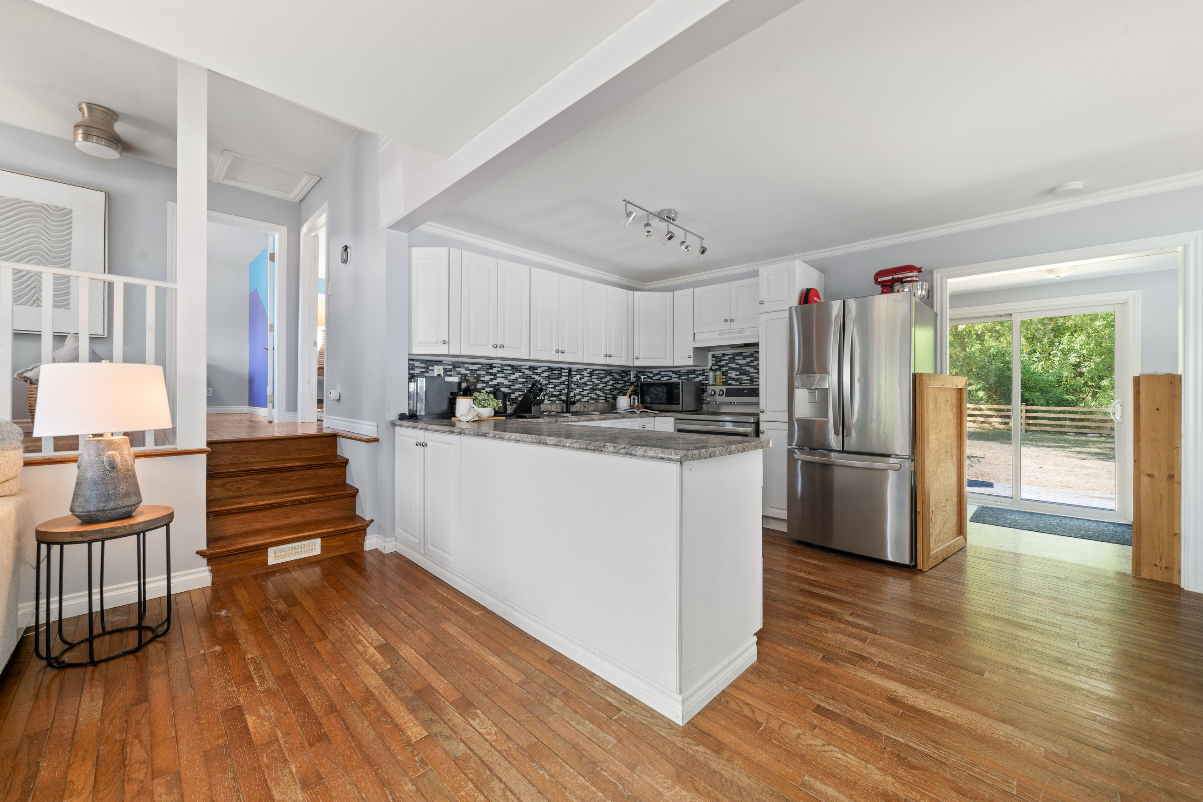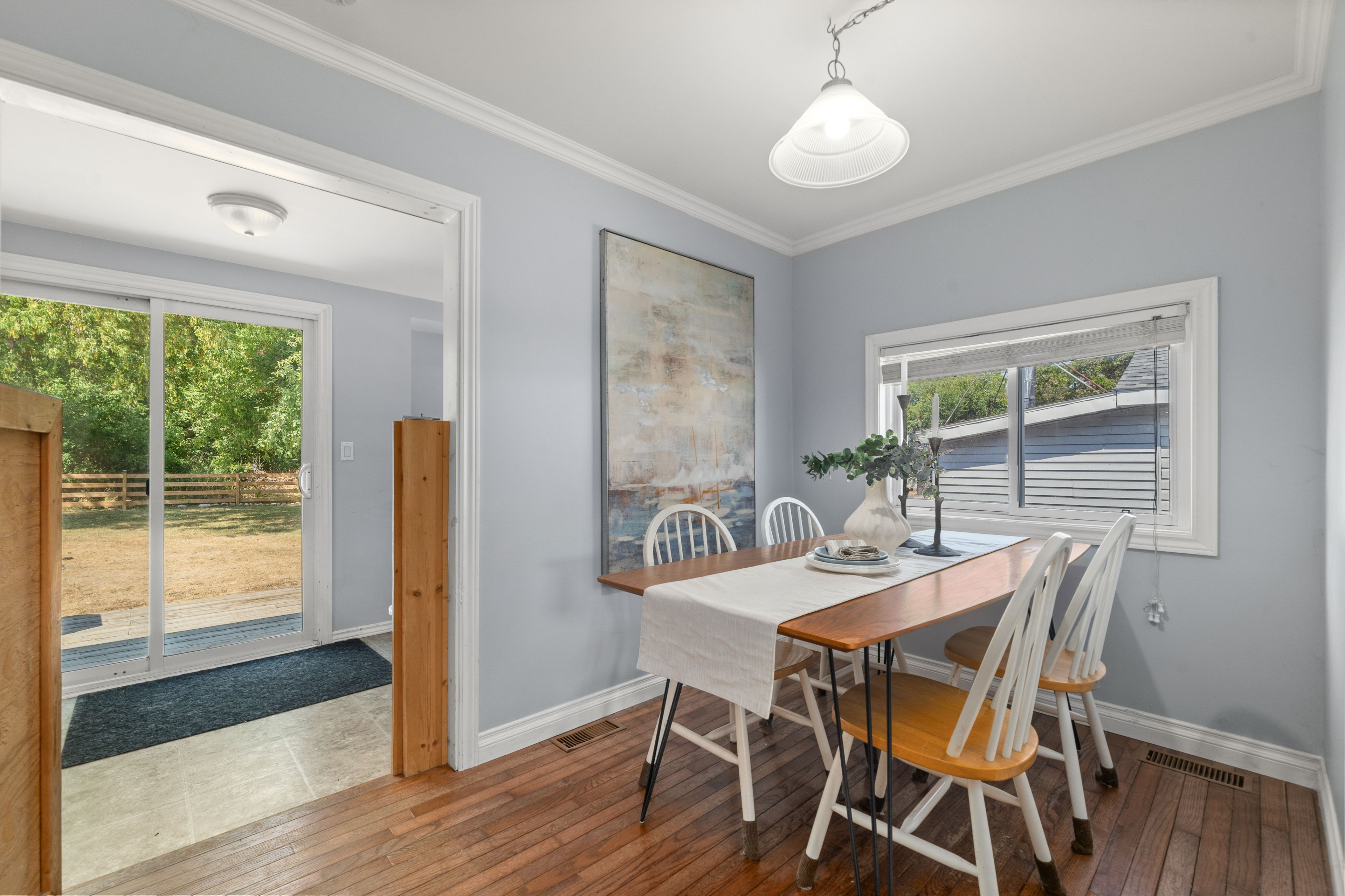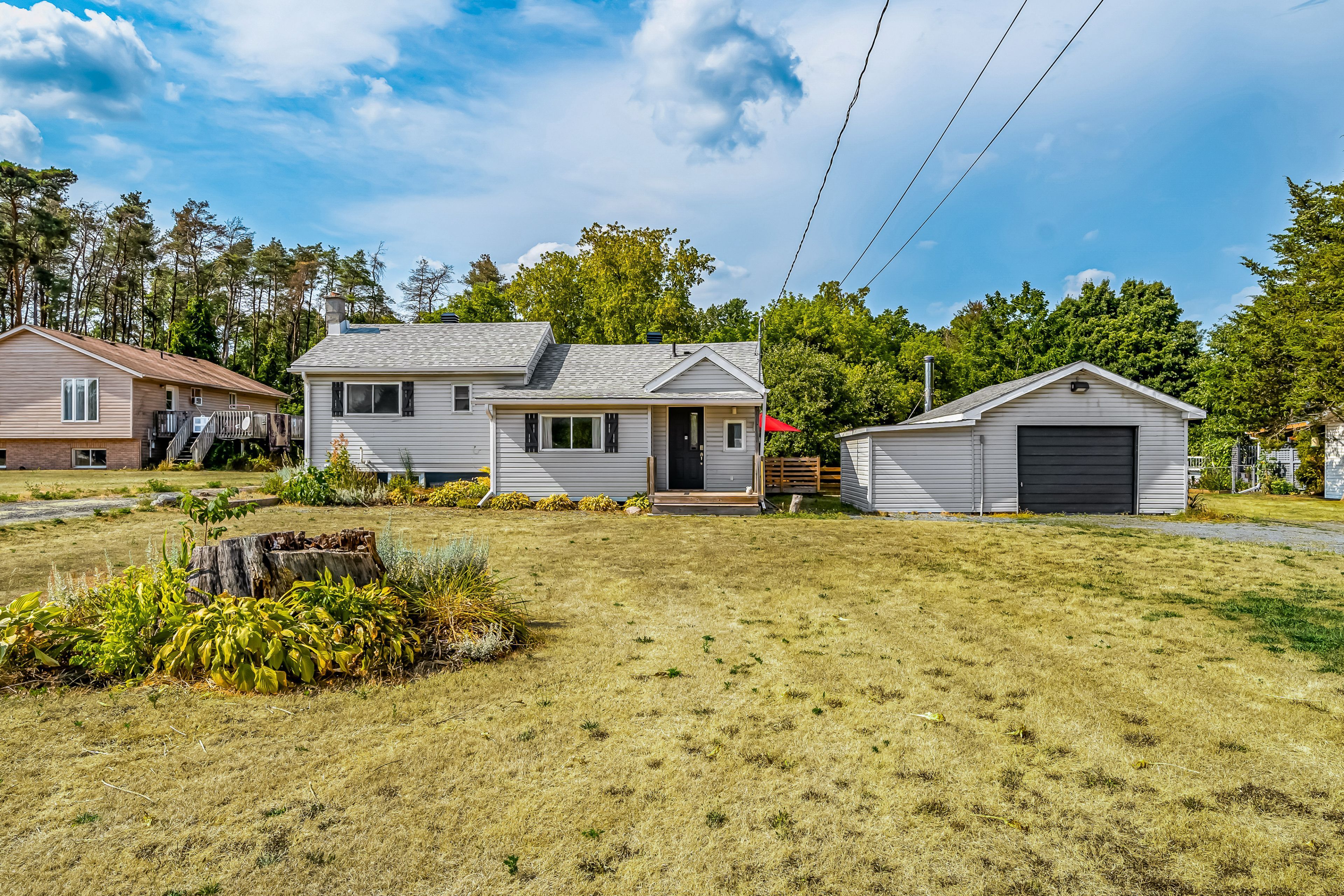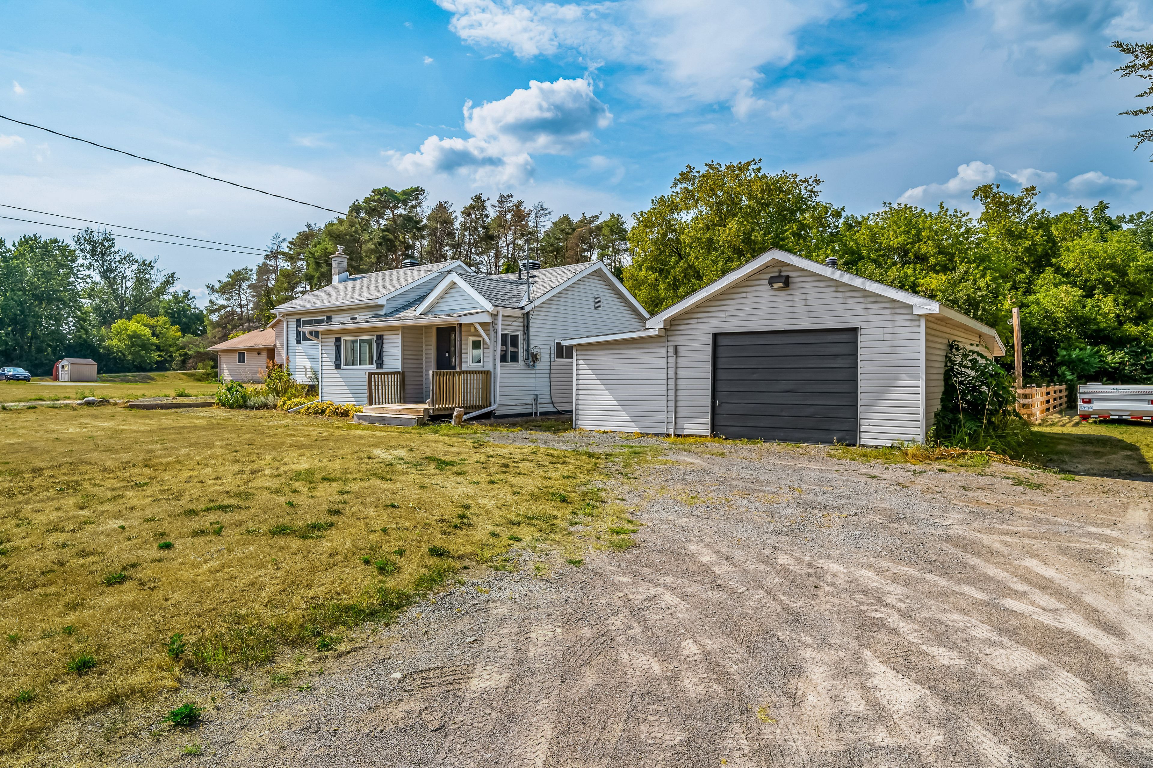 Charming 2 bedroom home in a desirable location on the outskirts of Trenton, set on a spacious 0.8-acre lot. This well-maintained property offers hardwood flooring throughout. Open-concept main floor features an updated kitchen, dining area, 4 pc bath & living room. The bright main floor also includes laundry and a versatile rear room ideal as an office or potential third bedroom. Upstairs, enjoy a sunny sitting area with a south-facing window, primary with electric fireplace and secondary bedroom. The partial basement is dry and perfect for storage. Outside, you'll find a single-car detached garage with power & space to work, fabulous rear deck with ample green space to enjoy, dual driveways for ample parking, generous sized front yard & more! Conveniently located within walking distance to the VIA Rail station, amenities and on school bus route.