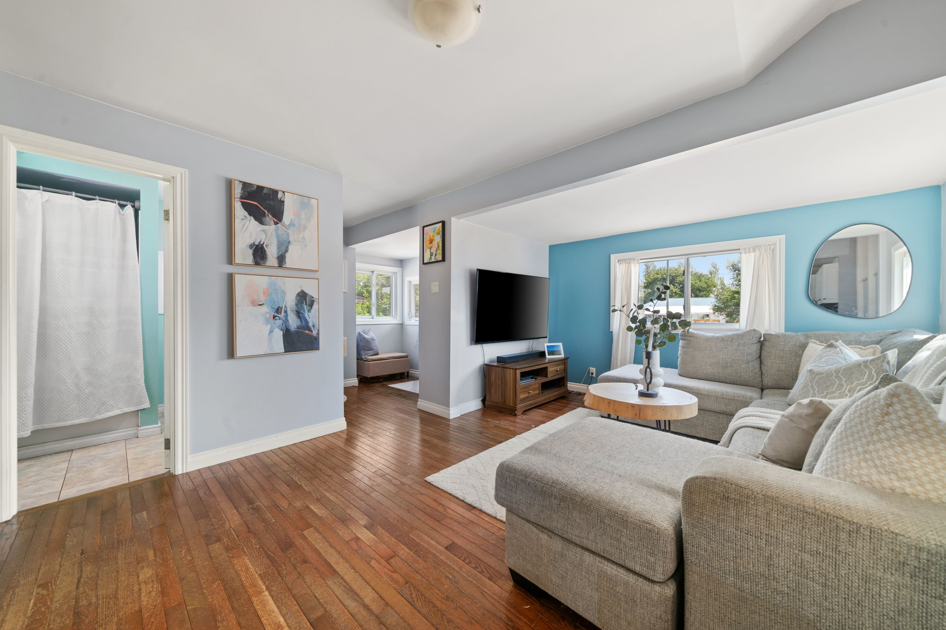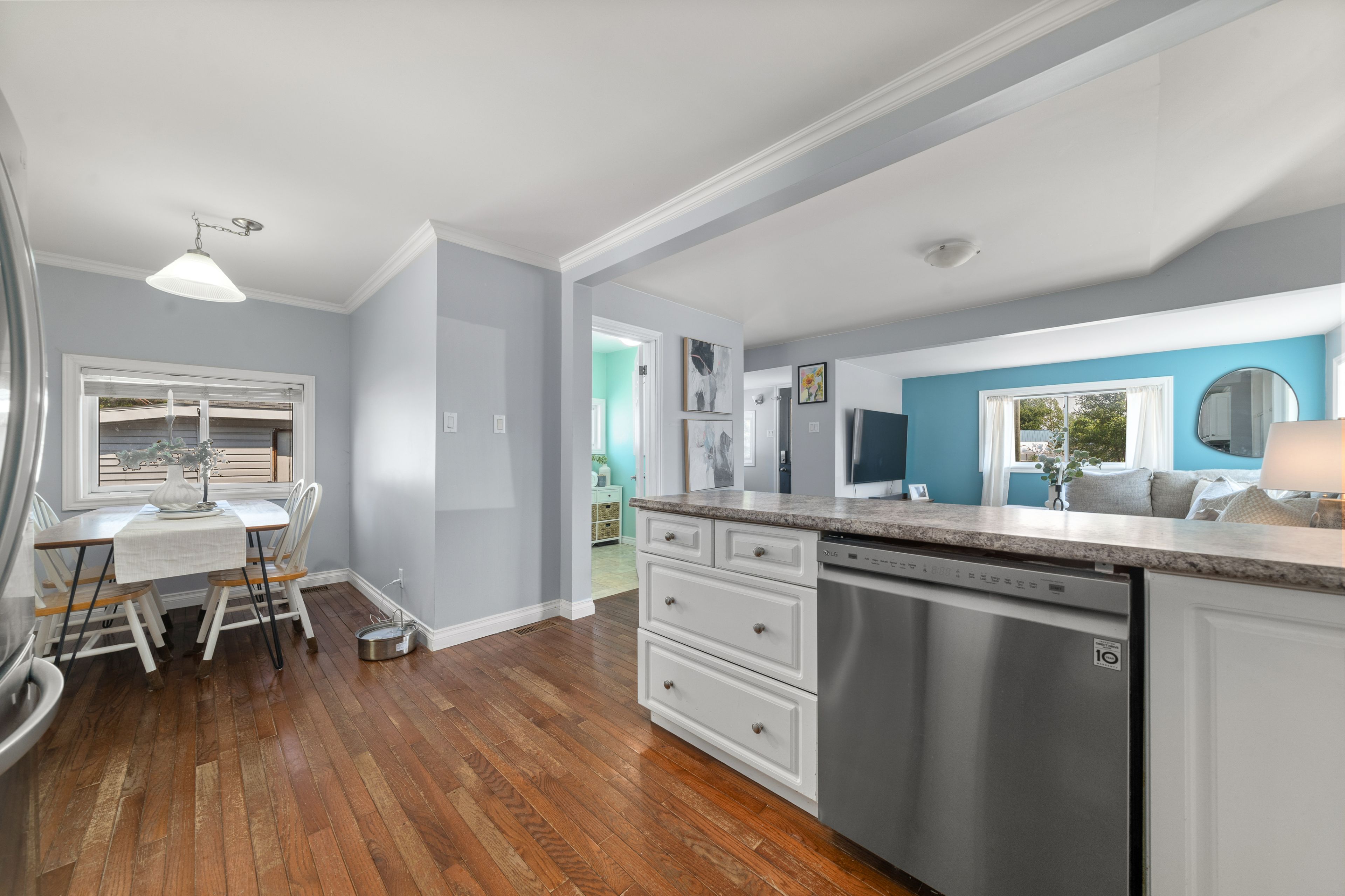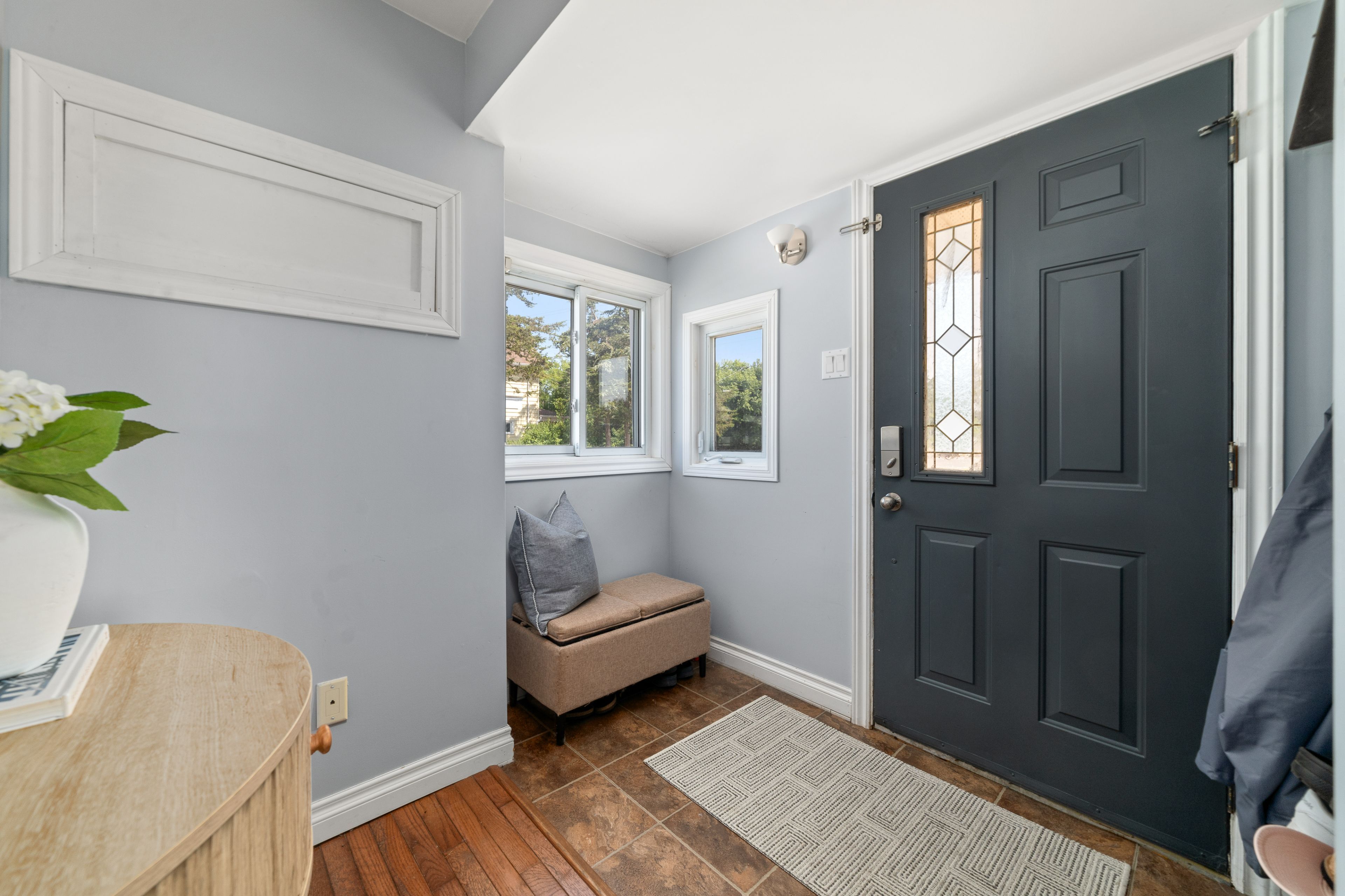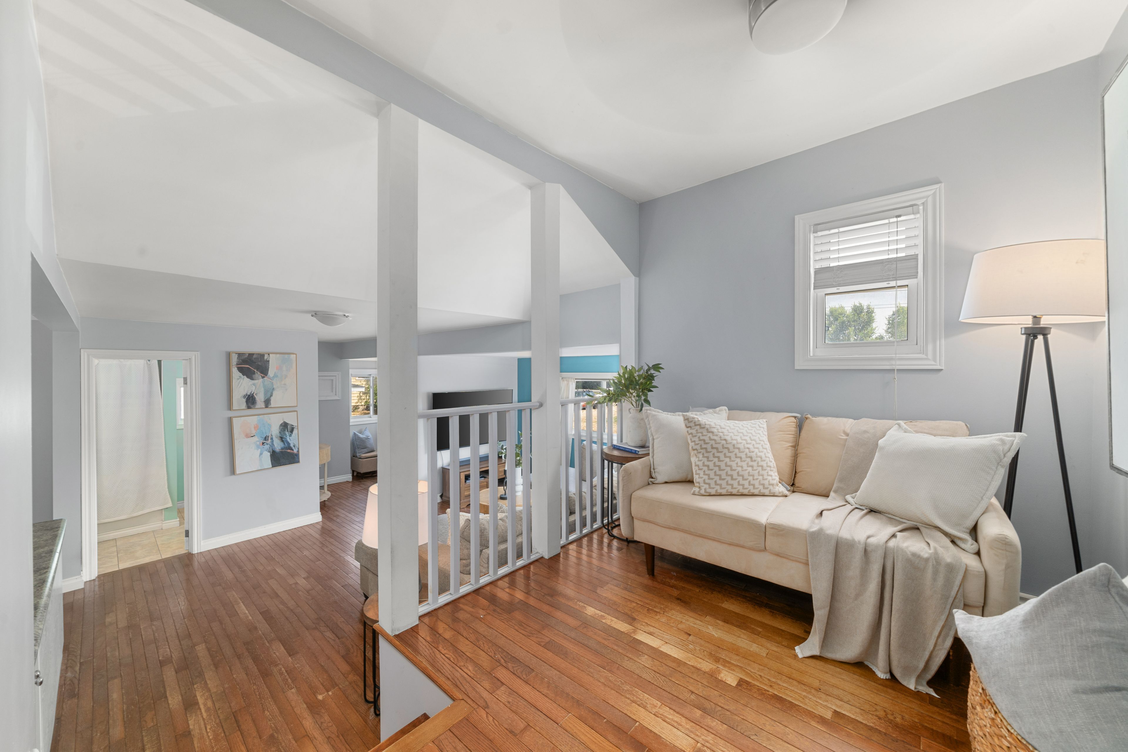 Charming 2 bedroom home in a desirable location on the outskirts of Trenton, set on a spacious 0.8-acre lot. This well-maintained property offers hardwood flooring throughout. Open-concept main floor features an updated kitchen, dining area, 4 pc bath & living room. The bright main floor also includes laundry and a versatile rear room ideal as an office or potential third bedroom. Upstairs, enjoy a sunny sitting area with a south-facing window, primary with electric fireplace and secondary bedroom. The partial basement is dry and perfect for storage. Outside, you'll find a single-car detached garage with power & space to work, fabulous rear deck with ample green space to enjoy, dual driveways for ample parking, generous sized front yard & more! Conveniently located within walking distance to the VIA Rail station, amenities and on school bus route.