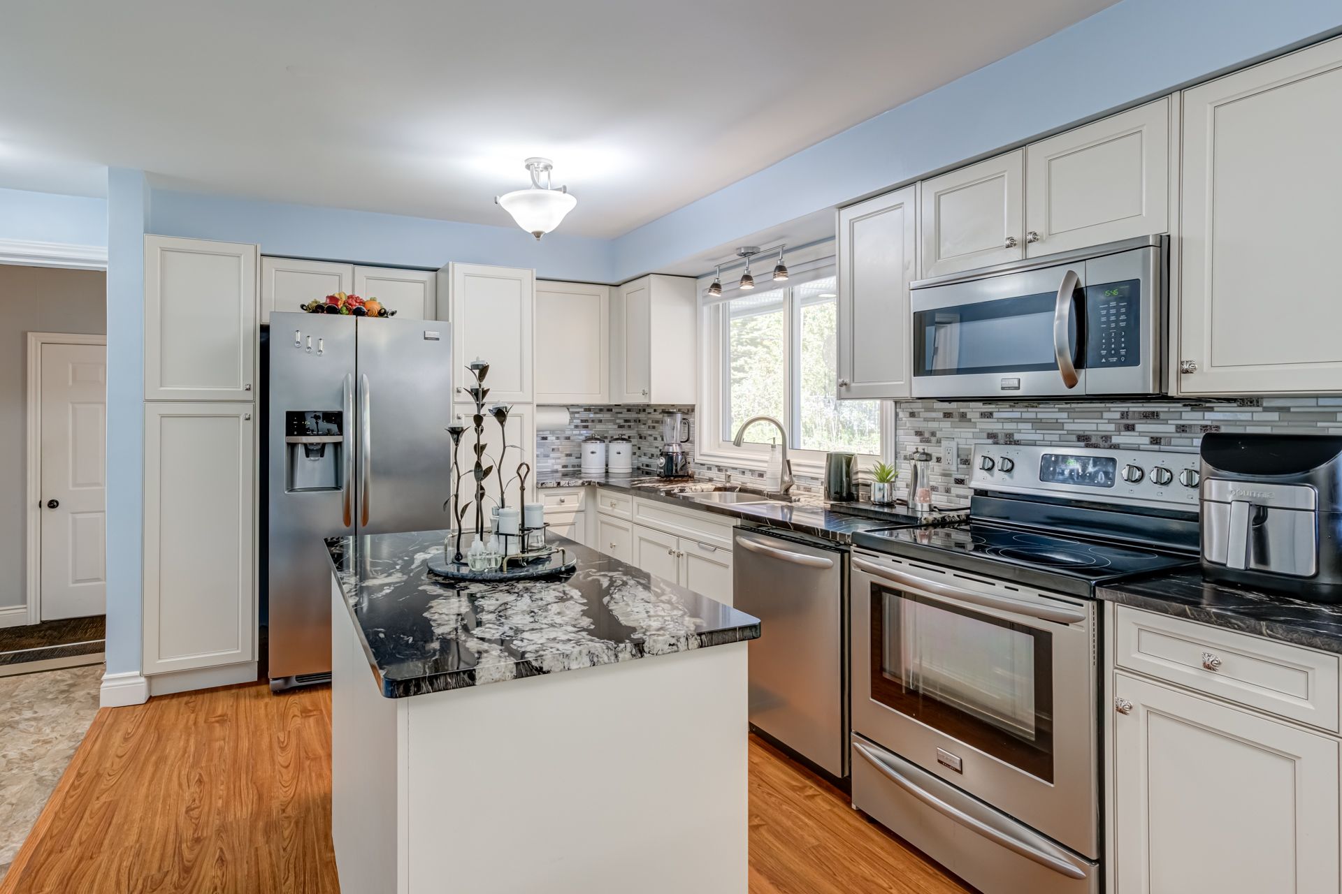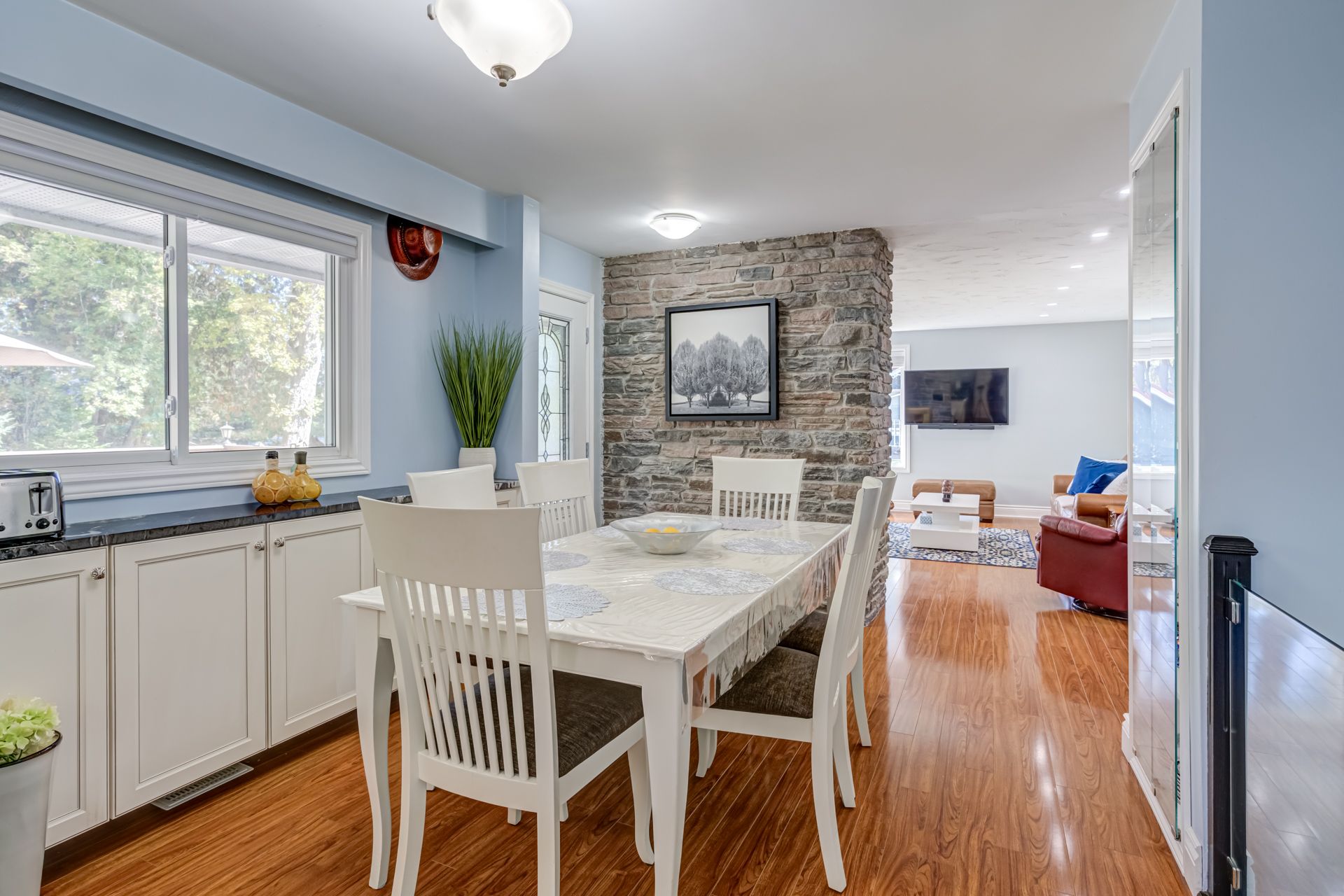 Experience four-season waterfront living in the heart of Haliburton cottage country. This spacious 3+2-bedroom, 2-bathroom lakefront home offers approximately 2,561 sq. ft. of finished living space, thoughtfully designed for year-round enjoyment, entertaining, and relaxed lake life. Set on the shores of Haas Lake on an expansive approximately 1.15-acre waterfront lot, the property features direct water access with a large dock and floating patio-ideal for swimming, boating, fishing, or enjoying quiet mornings and sunset evenings by the lake. The open-concept main level is filled with natural light and framed by tranquil lake views, featuring an updated kitchen with granite countertops and a bright four-season sunroom that comfortably extends the living space beyond the summer months. The finished lower level adds versatility with a generous recreation room, bar area, and two additional bedrooms, making it well suited for hosting family and guests or creating a dedicated entertainment zone. Outside, the landscaped grounds offer a welcoming balance of privacy and usability, complemented by a gated entrance and an oversized paved driveway with ample parking-an uncommon feature for a waterfront property. Located just minutes from Haliburton village, schools, shopping, and year-round amenities, this property presents an appealing combination of acreage, waterfront access, interior space, and true four-season usability, making it suitable as a full-time residence, seasonal retreat, or long-term cottage country investment.