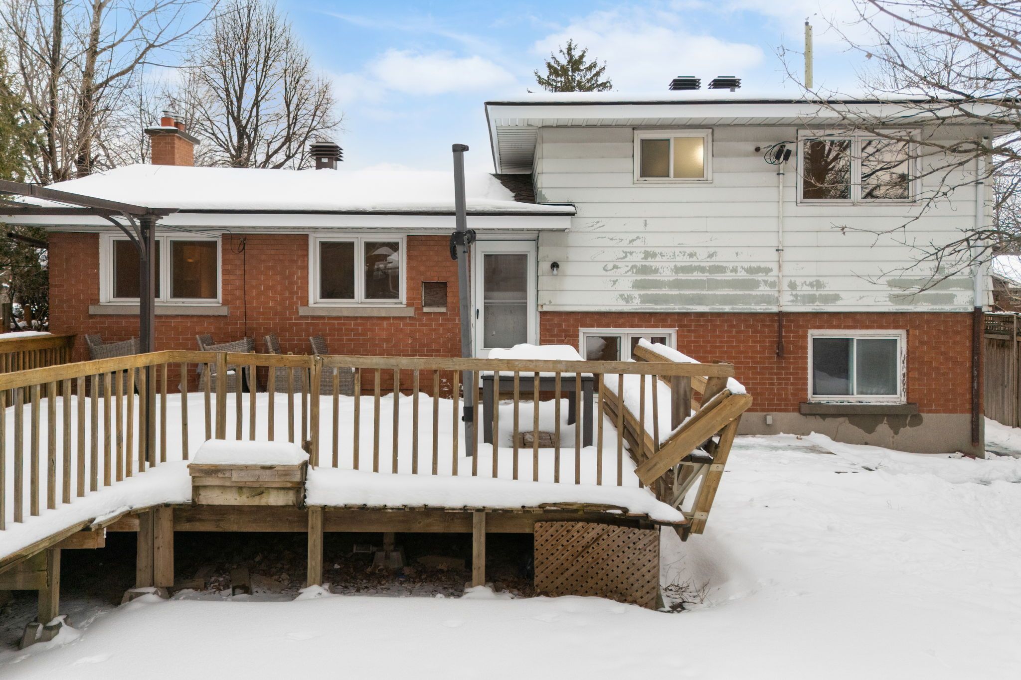 OPEN HOUSE Sunday & Sunday, January 17 & 18, 2 to 4 pm - Welcome to 2358 Malone Crescent, a solid Campeau-built side split situated on a generous 56' x 100.44' lot on a quiet street in the heart of the highly sought-after Queensway Terrace South neighbourhood. This well-maintained 3-bedroom, 1.5-bath home offers a functional layout and presents an excellent opportunity for families or buyers looking to add their own touches. The bright L-shaped living and dining room features a west-facing bay window that fills the space with natural light, while the kitchen provides ample counter and cupboard space along with direct access to the backyard. The second level includes three well-sized bedrooms and a four-piece bathroom. Hardwood flooring throughout the main and second levels has never been refinished and is ready to be restored. The main level also offers a den, with steps leading down to a spacious lower-level recreation room with laminate flooring, additional flexible space ideal for a home office, a two-piece bathroom, and a combined storage, utility, and laundry room. The fully fenced backyard is private and features a large deck, perfect for outdoor entertaining. Freshly painted throughout, this home also benefits from new carpet in the den (2026), roof with 50 year shingles and warranty (2024), furnace and air conditioning (2015), select windows (2013), and 200-amp electrical service. Ideally located within walking distance to shops, restaurants, schools, public transit, Ridgeview Park, Kilreen Park, Pinecrest Park, and the Pinecrest Recreation Complex. Average utilities: Hydro $96.14/month; Gas $79.45/month. With some TLC, this gem will truly shine. Some photos virtually staged.