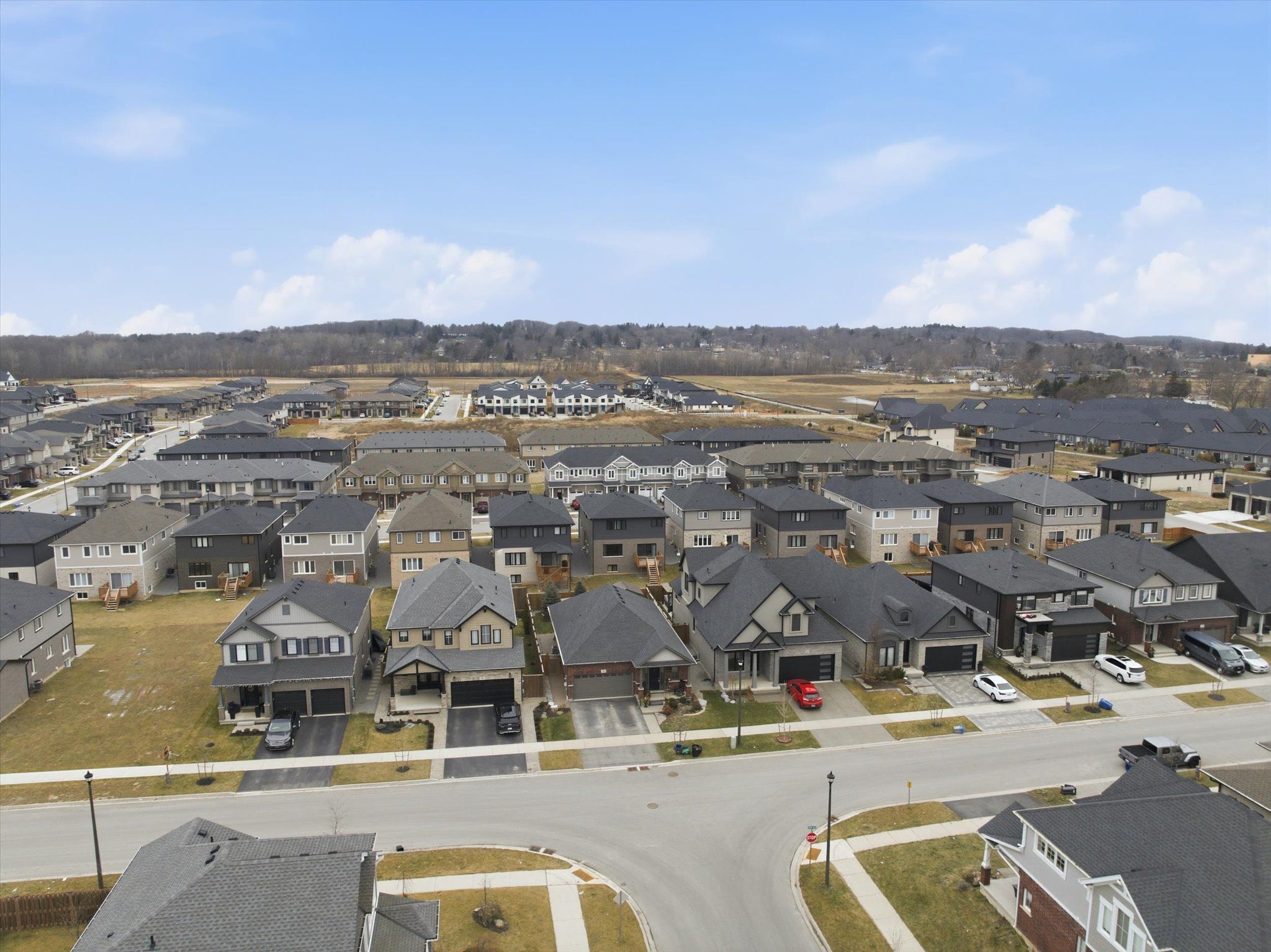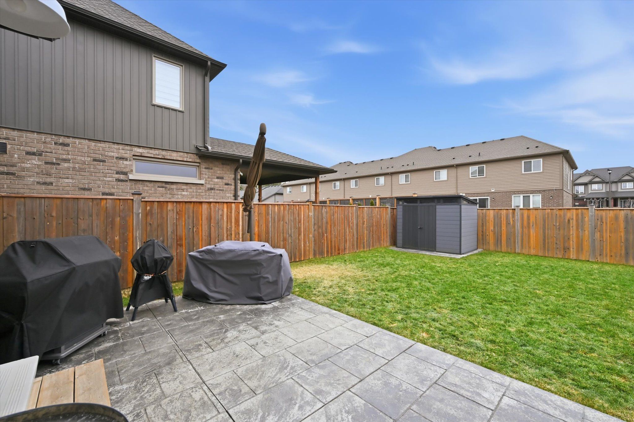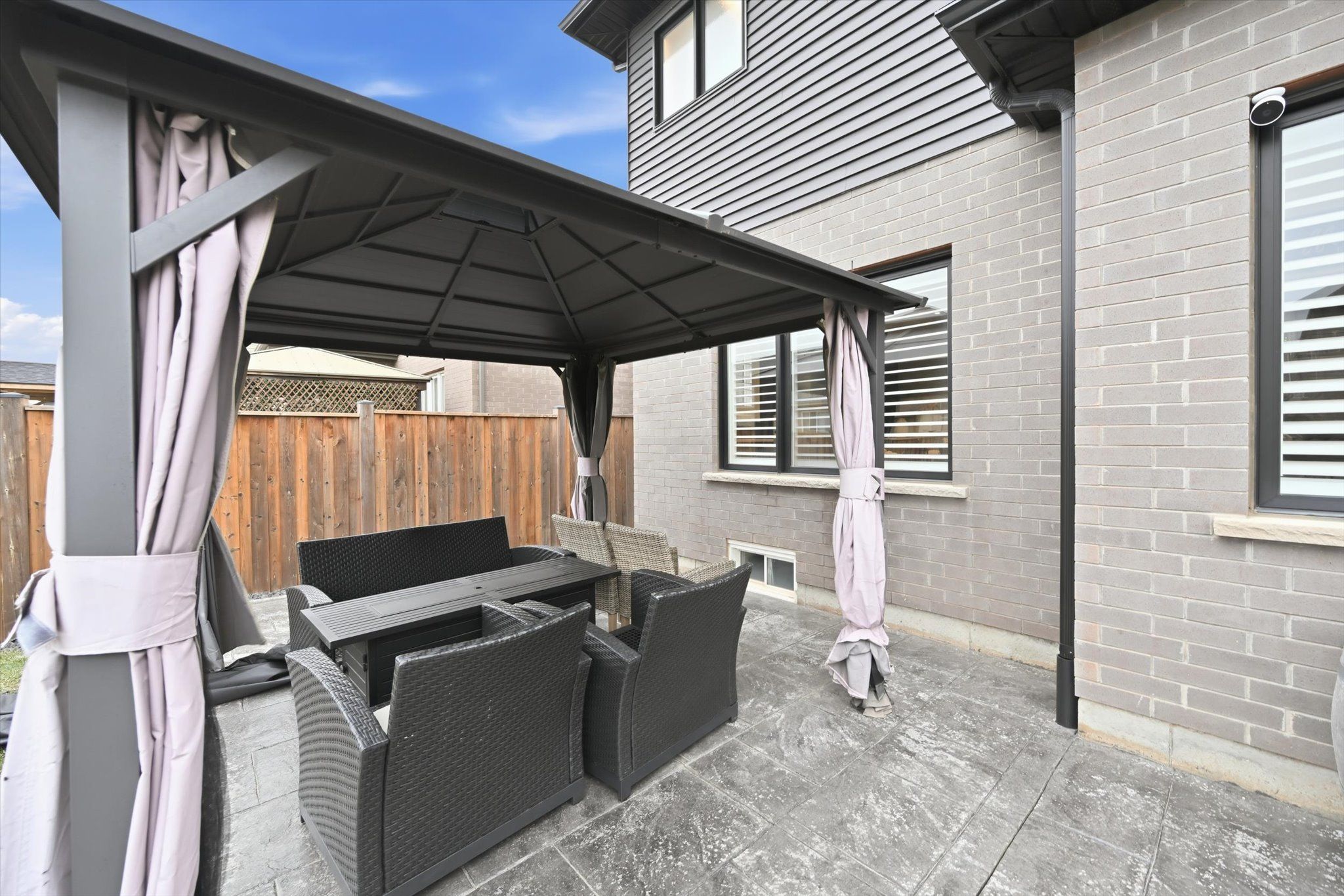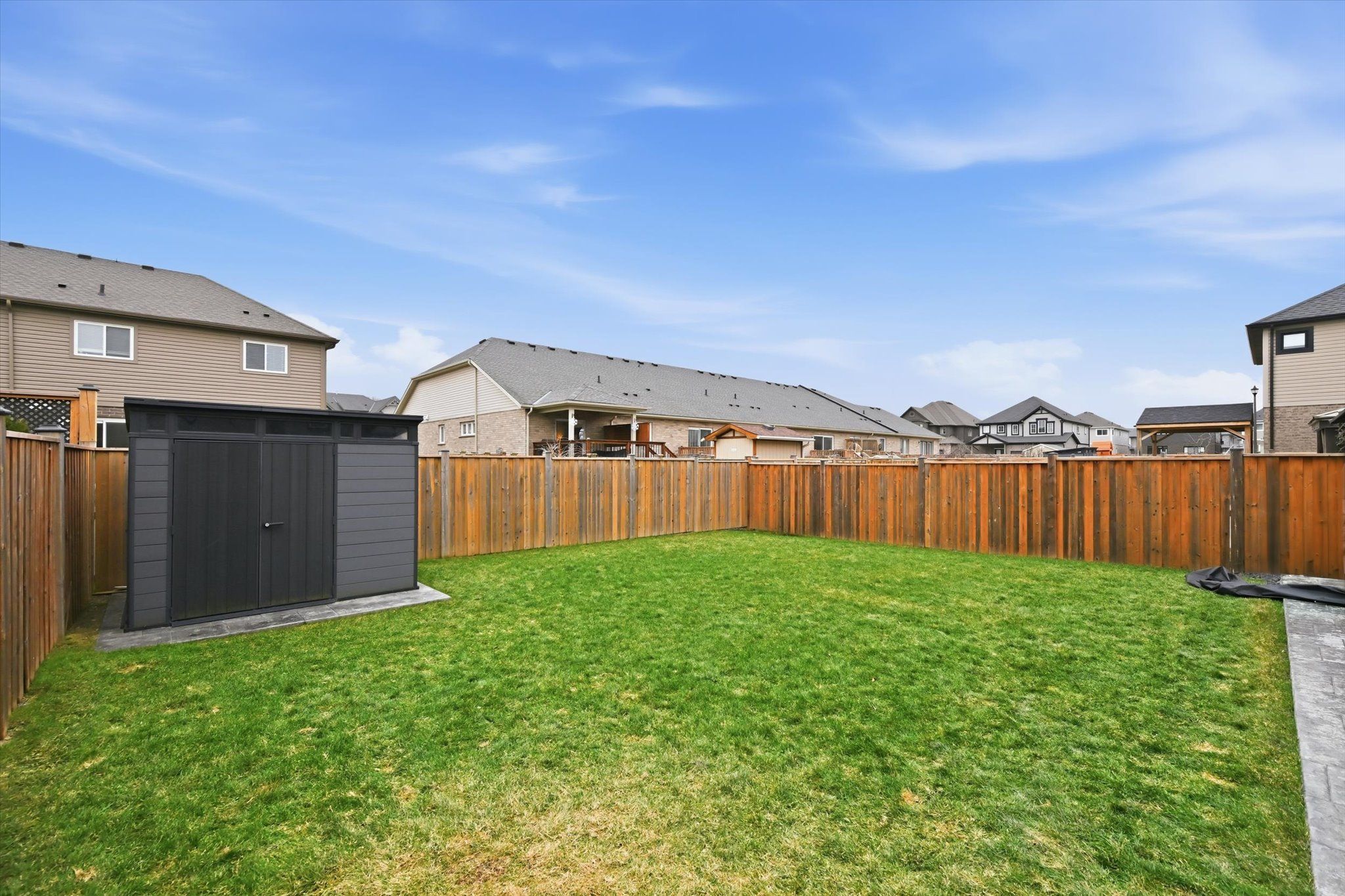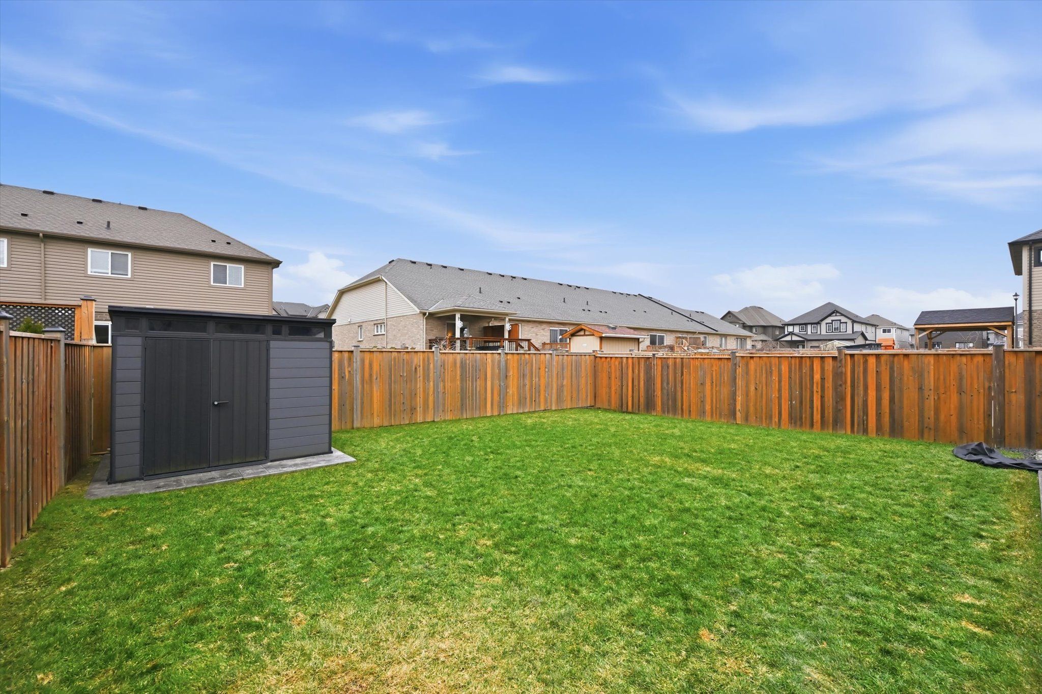 Exquisitely built in 2020 by Mountainview Homes, this beautifully upgraded residence is nestled in the prestigious, family-oriented Saffron Estates community of Fonthill. Offering approx. 1,869 sq. ft. of elegant above-grade living space plus an approx. 782 sq. ft. unfinished basement, this 4-bedroom, 3-bath home showcases thoughtful design and exceptional craftsmanship throughout. The open-concept main floor features 9' ceilings, engineered hardwood flooring, integrated ceiling speakers, and a stunning stone-clad natural gas fireplace with a custom hearth and antique wood mantel insert, framed by bespoke cabinetry with quartz countertops. The refined kitchen is highlighted by an oversized quartz island, custom coffee and wine bar, tile flooring, and seamless access to the backyard. The primary suite is a true retreat with his and hers walk-in closets and a spa-inspired 5-piece ensuite featuring double sinks, a glass shower, and a freestanding soaker tub. A rare second-floor laundry adds everyday convenience. Fully wired for Google Home, the home includes an alarm system, surge-protected electrical panel, sump pump tied to the alarm, gas hookups for BBQ and garage, and a 40-amp garage sub-panel. Exterior features include soffit pot lights, stamped concrete driveway, walkways and patio (reinforced for hot tub), gazebo, fully fenced yard, and shed on a concrete pad. Ideally located near parks, trails, Meridian Community Centre, and the charm of downtown Fonthill, this is refined Niagara living at its finest.