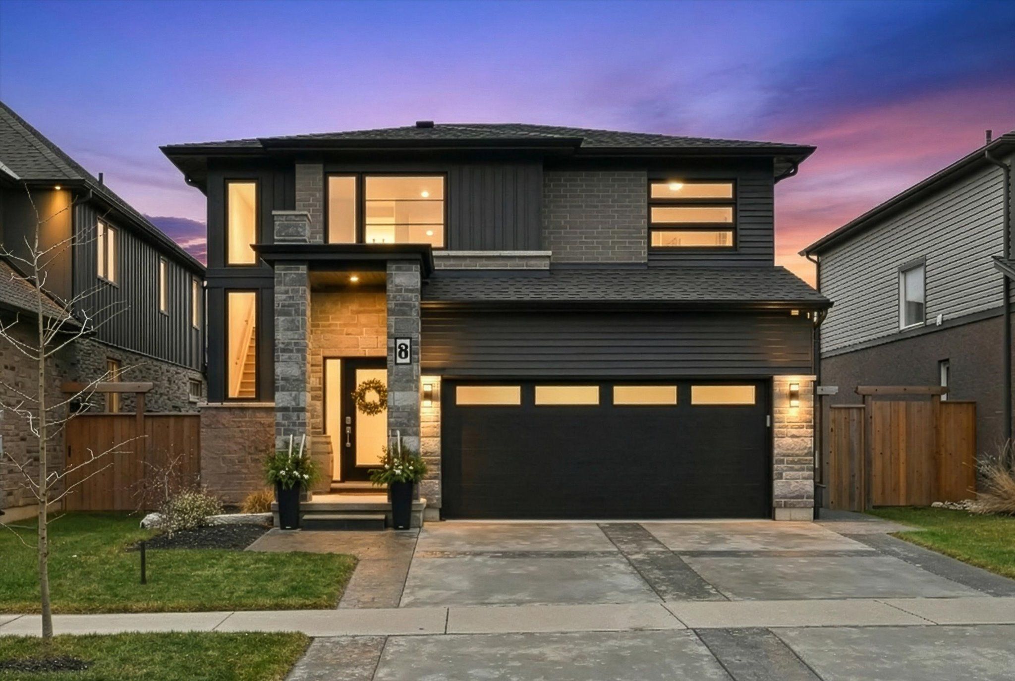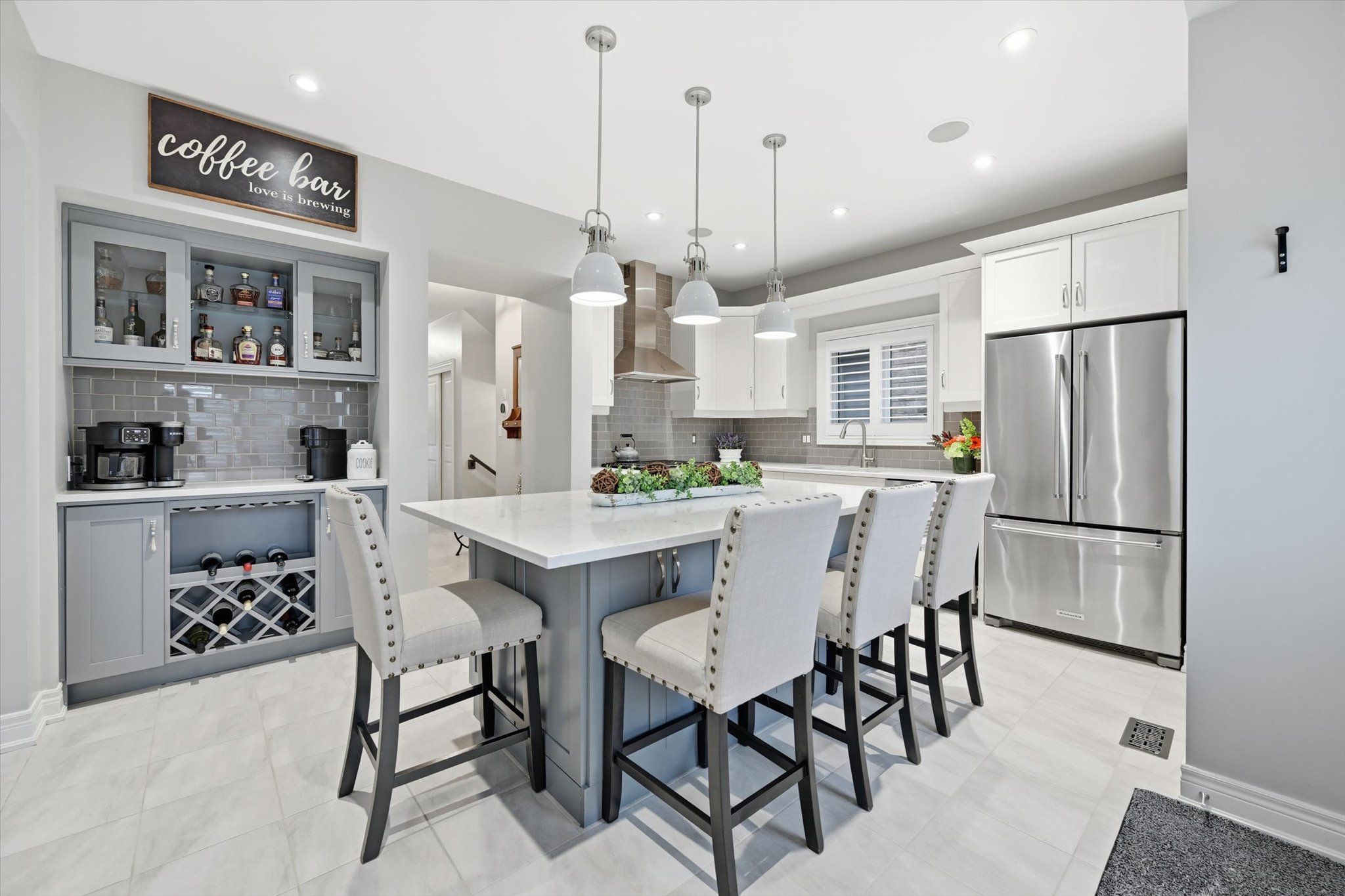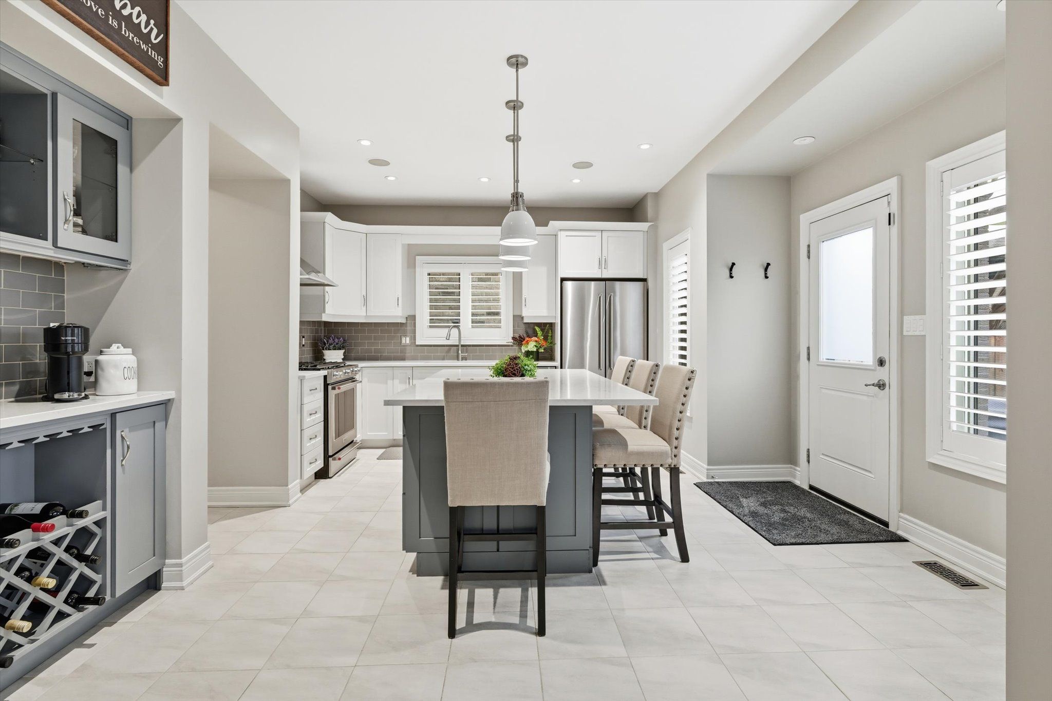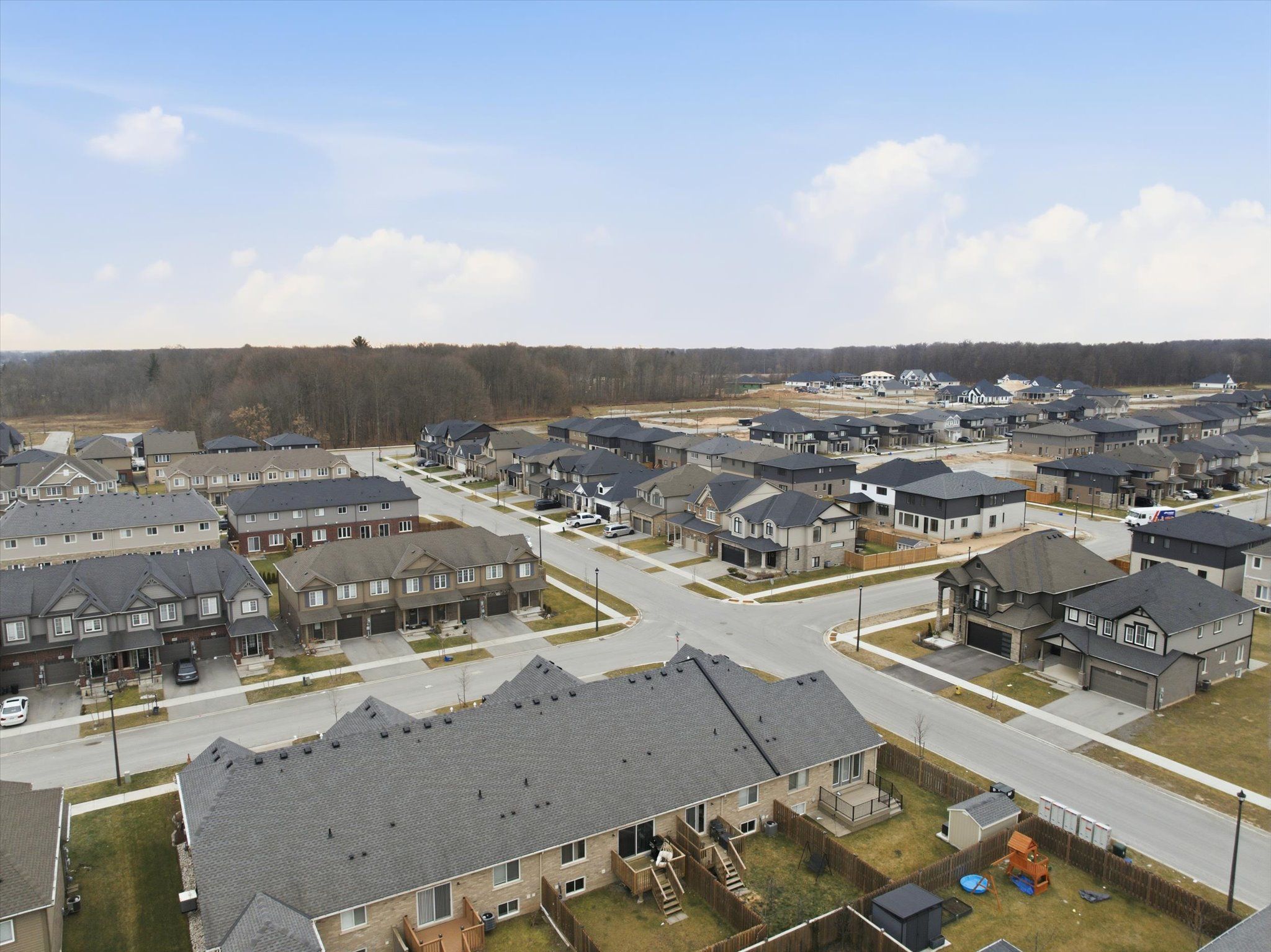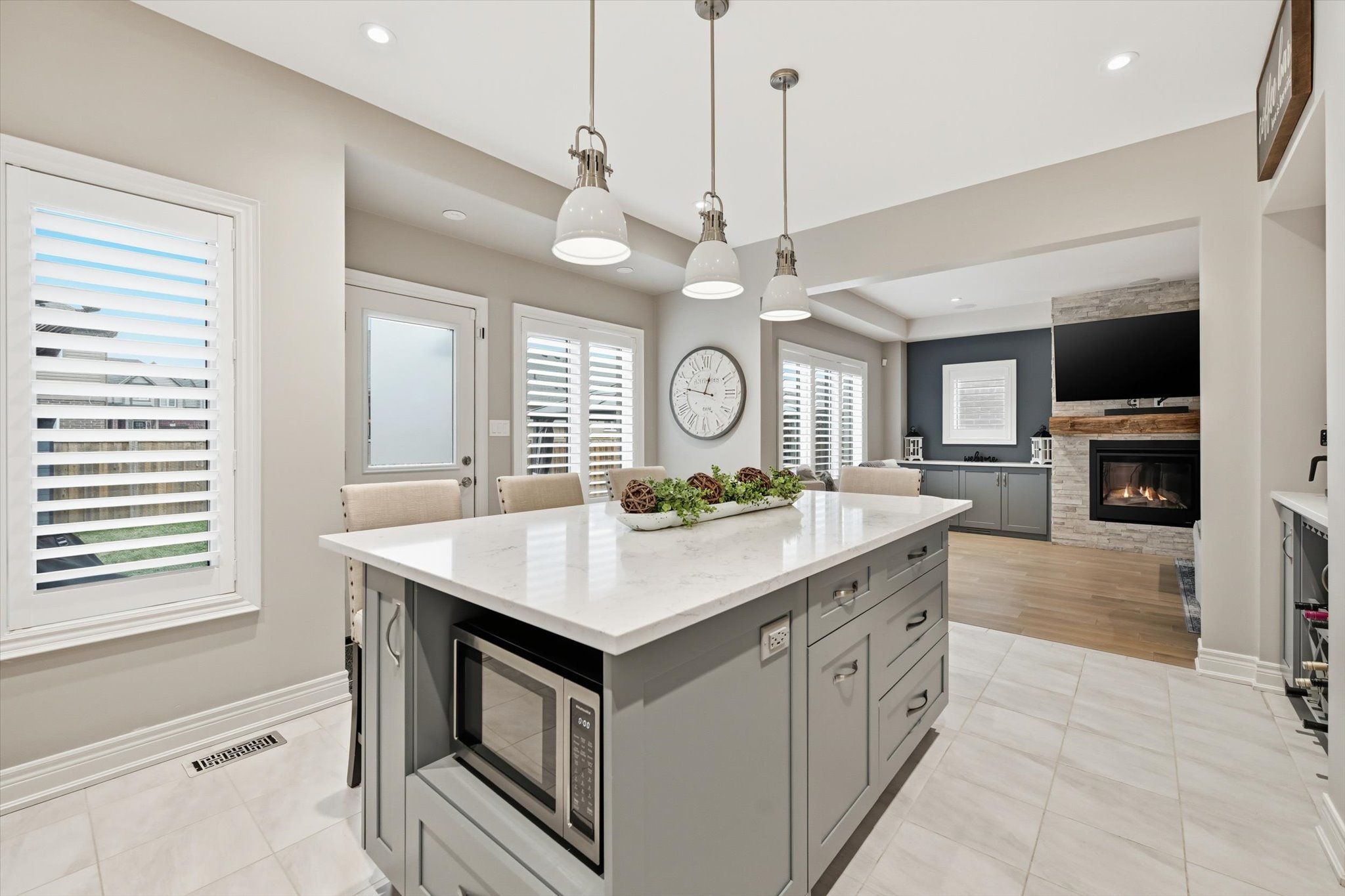 Exquisitely built in 2020 by Mountainview Homes, this beautifully upgraded residence is nestled in the prestigious, family-oriented Saffron Estates community of Fonthill. Offering approx. 1,869 sq. ft. of elegant above-grade living space plus an approx. 782 sq. ft. unfinished basement, this 4-bedroom, 3-bath home showcases thoughtful design and exceptional craftsmanship throughout. The open-concept main floor features 9' ceilings, engineered hardwood flooring, integrated ceiling speakers, and a stunning stone-clad natural gas fireplace with a custom hearth and antique wood mantel insert, framed by bespoke cabinetry with quartz countertops. The refined kitchen is highlighted by an oversized quartz island, custom coffee and wine bar, tile flooring, and seamless access to the backyard. The primary suite is a true retreat with his and hers walk-in closets and a spa-inspired 5-piece ensuite featuring double sinks, a glass shower, and a freestanding soaker tub. A rare second-floor laundry adds everyday convenience. Fully wired for Google Home, the home includes an alarm system, surge-protected electrical panel, sump pump tied to the alarm, gas hookups for BBQ and garage, and a 40-amp garage sub-panel. Exterior features include soffit pot lights, stamped concrete driveway, walkways and patio (reinforced for hot tub), gazebo, fully fenced yard, and shed on a concrete pad. Ideally located near parks, trails, Meridian Community Centre, and the charm of downtown Fonthill, this is refined Niagara living at its finest.