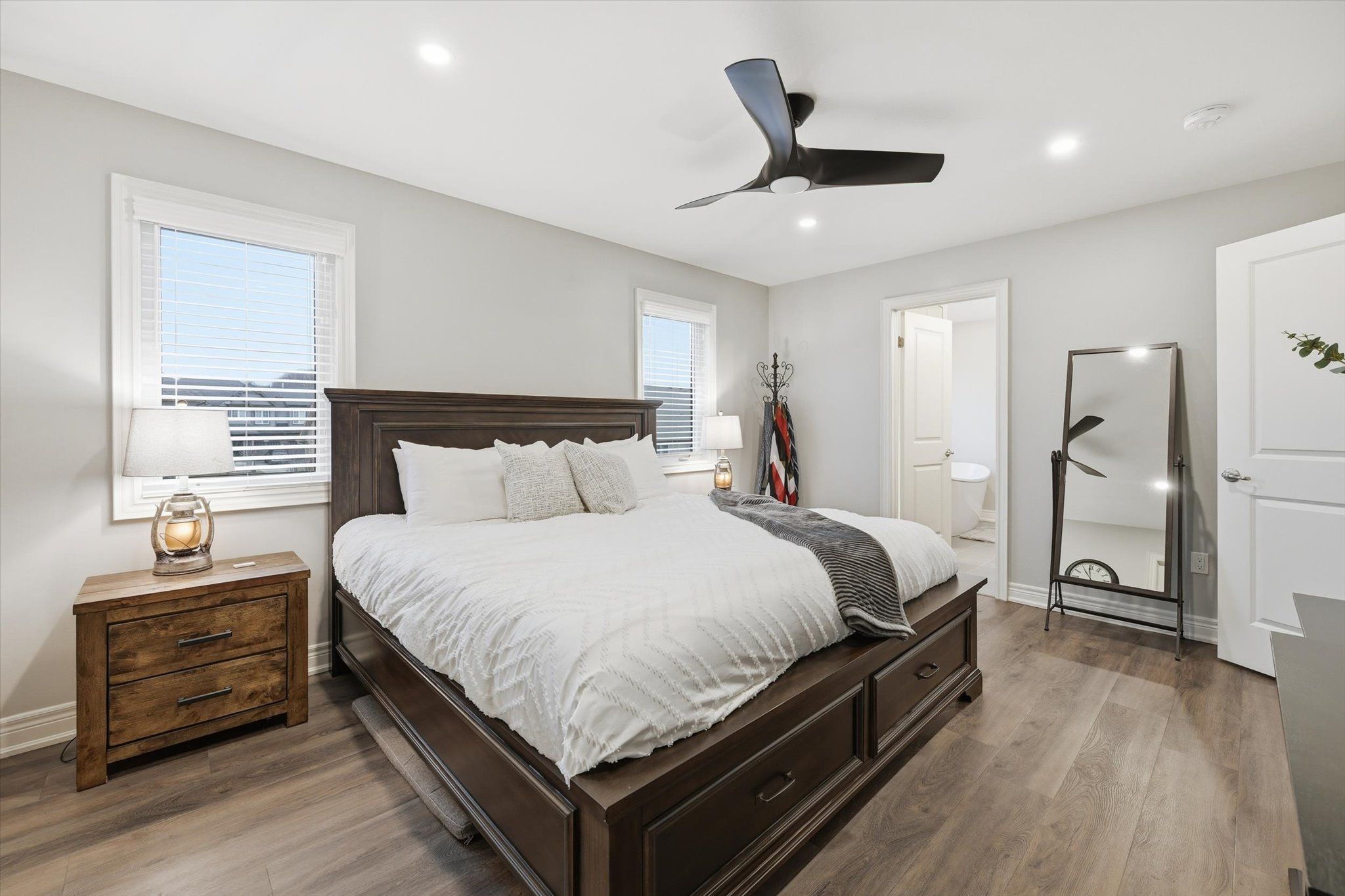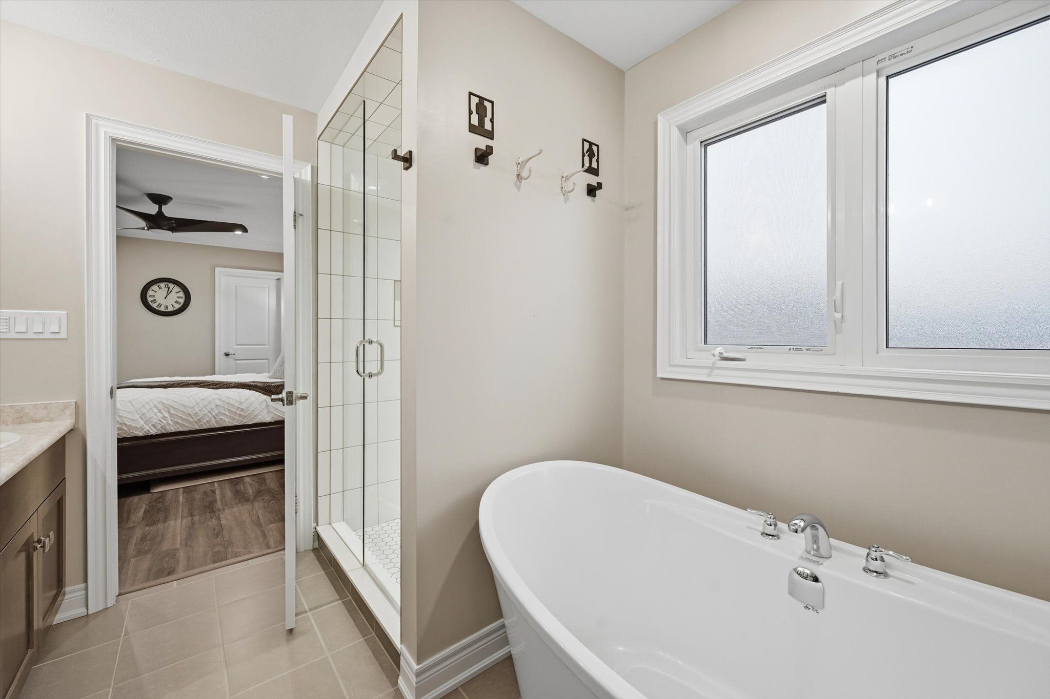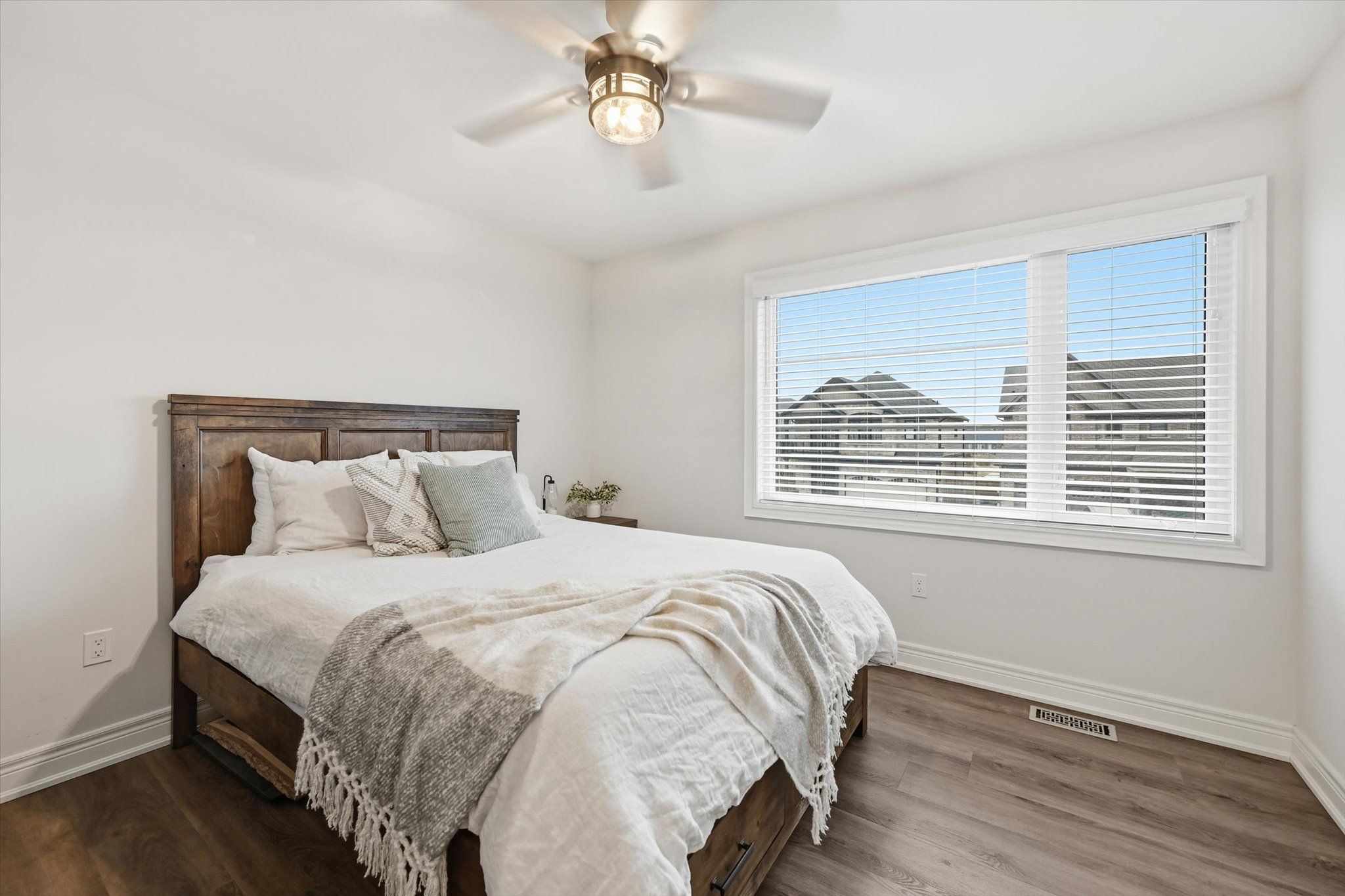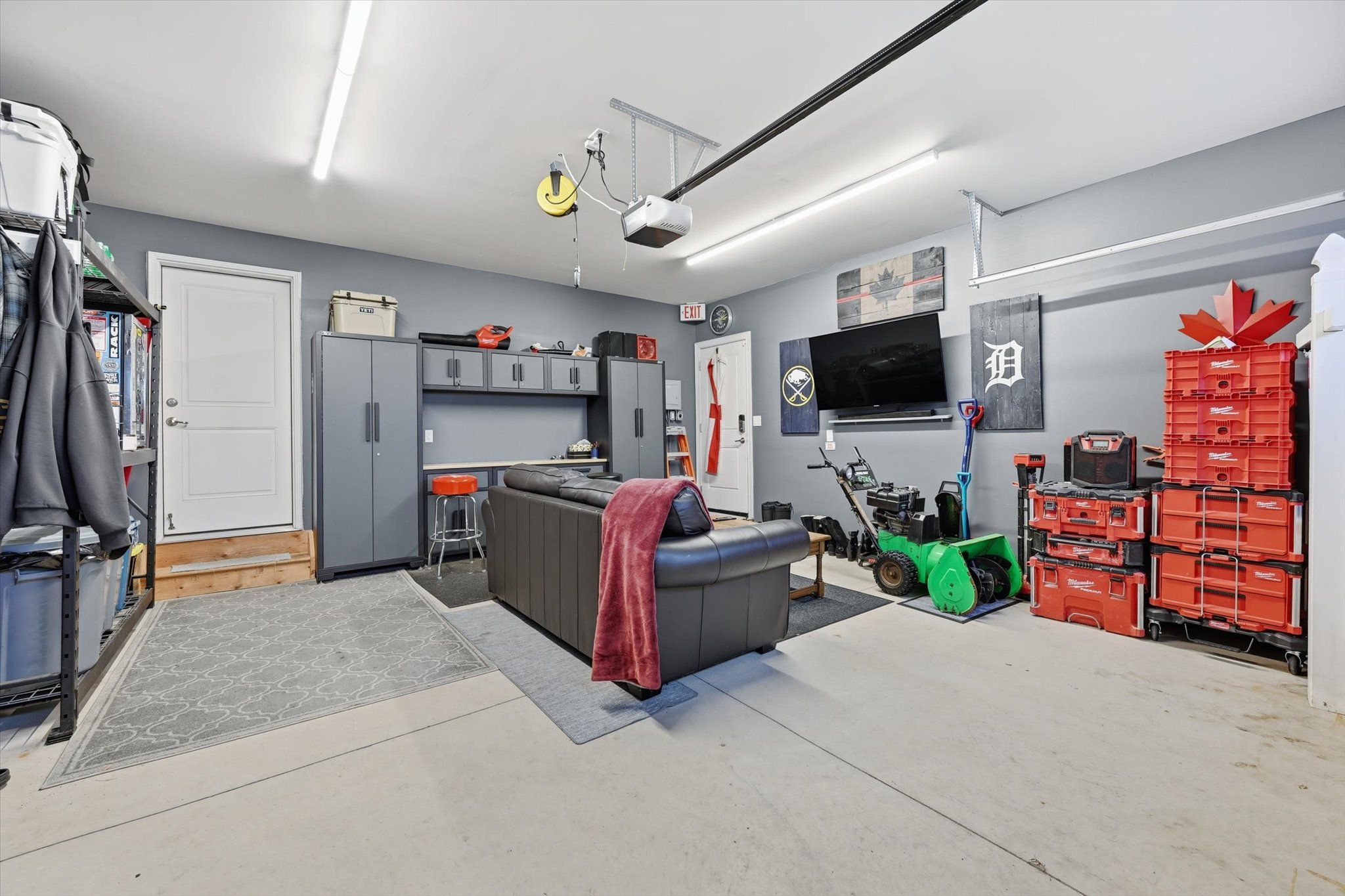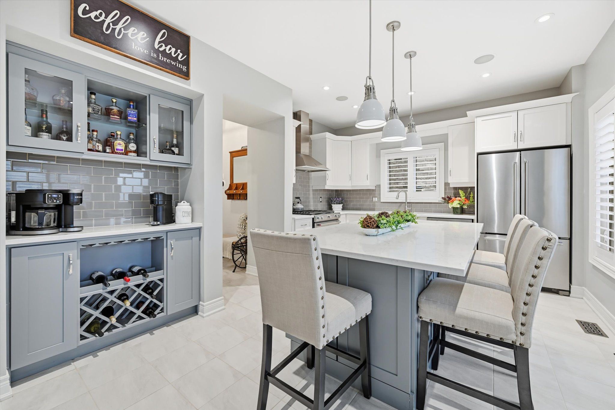 Exquisitely built in 2020 by Mountainview Homes, this beautifully upgraded residence is nestled in the prestigious, family-oriented Saffron Estates community of Fonthill. Offering approx. 1,869 sq. ft. of elegant above-grade living space plus an approx. 782 sq. ft. unfinished basement, this 4-bedroom, 3-bath home showcases thoughtful design and exceptional craftsmanship throughout. The open-concept main floor features 9' ceilings, engineered hardwood flooring, integrated ceiling speakers, and a stunning stone-clad natural gas fireplace with a custom hearth and antique wood mantel insert, framed by bespoke cabinetry with quartz countertops. The refined kitchen is highlighted by an oversized quartz island, custom coffee and wine bar, tile flooring, and seamless access to the backyard. The primary suite is a true retreat with his and hers walk-in closets and a spa-inspired 5-piece ensuite featuring double sinks, a glass shower, and a freestanding soaker tub. A rare second-floor laundry adds everyday convenience. Fully wired for Google Home, the home includes an alarm system, surge-protected electrical panel, sump pump tied to the alarm, gas hookups for BBQ and garage, and a 40-amp garage sub-panel. Exterior features include soffit pot lights, stamped concrete driveway, walkways and patio (reinforced for hot tub), gazebo, fully fenced yard, and shed on a concrete pad. Ideally located near parks, trails, Meridian Community Centre, and the charm of downtown Fonthill, this is refined Niagara living at its finest.