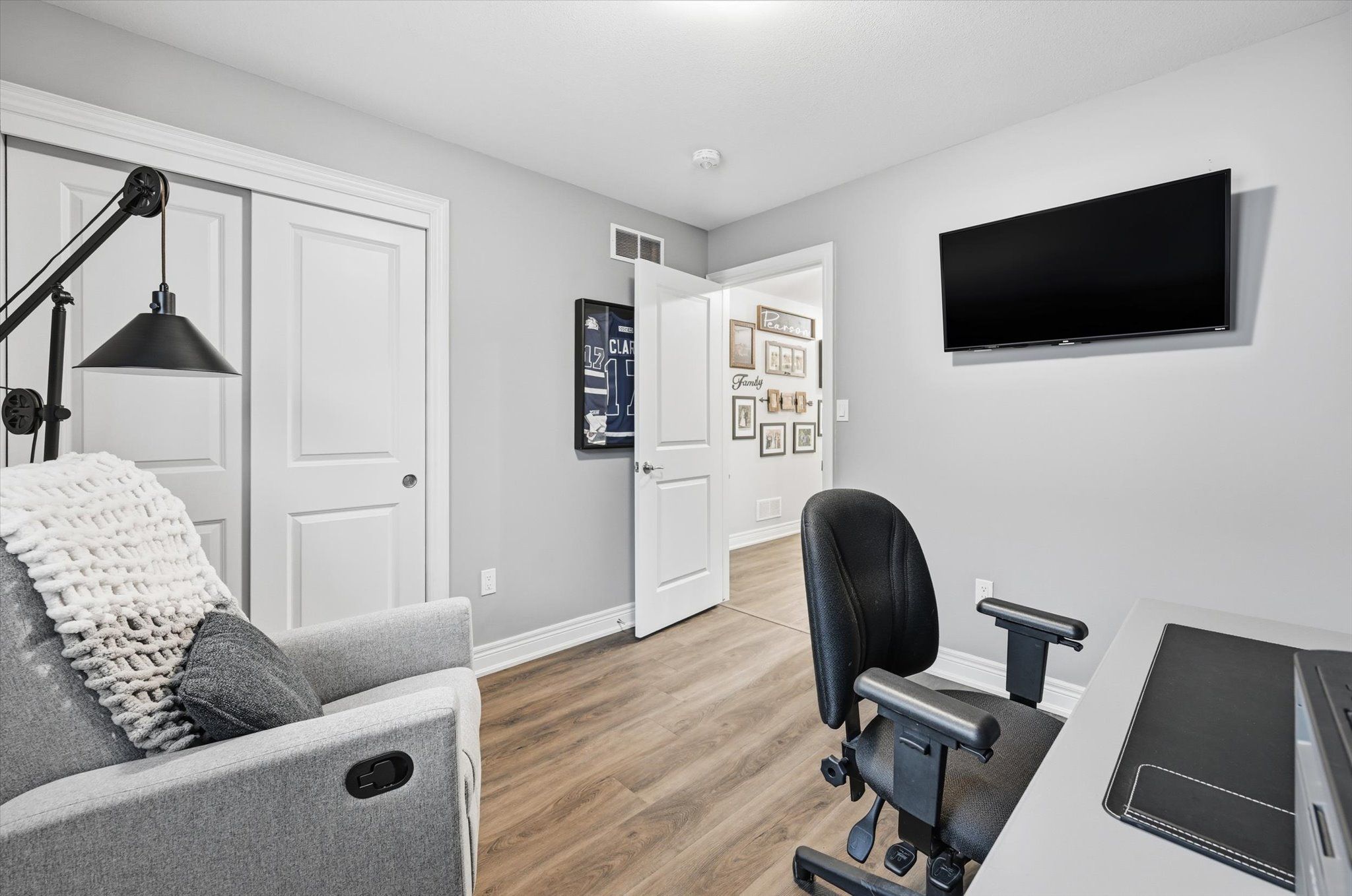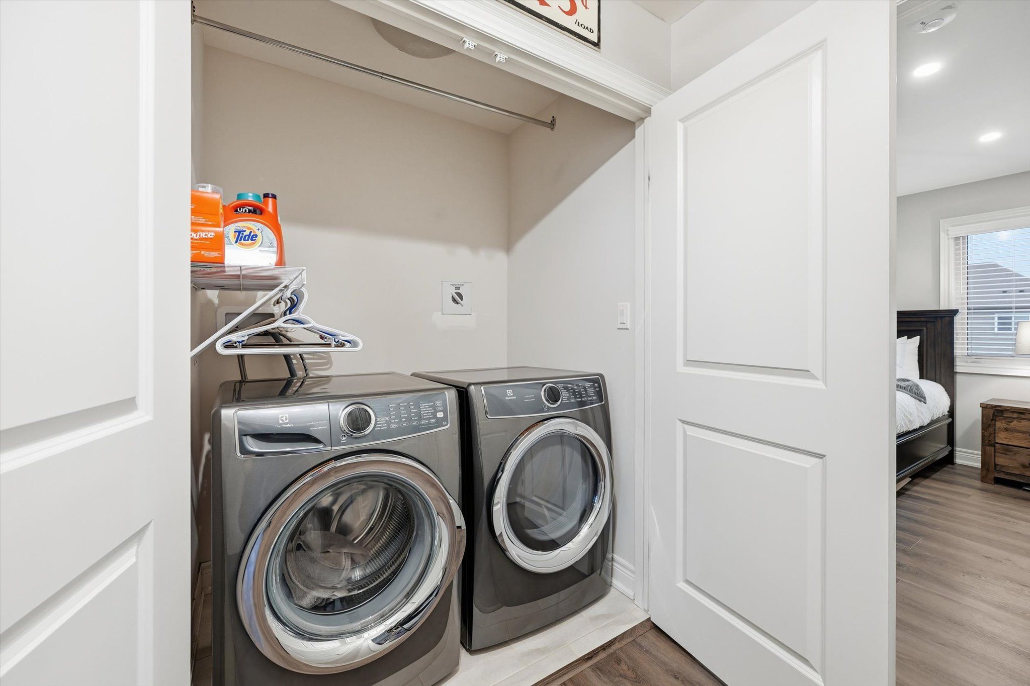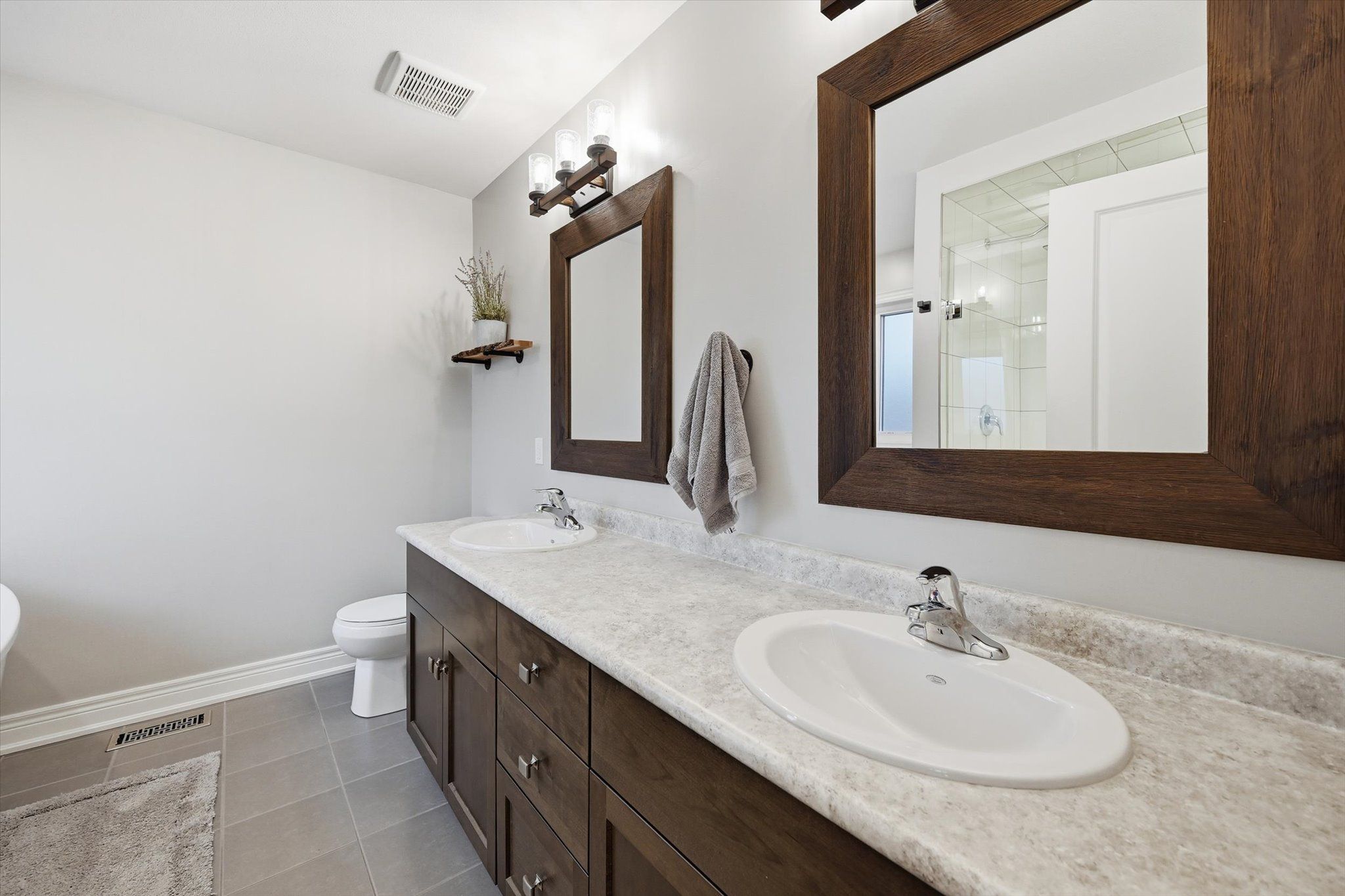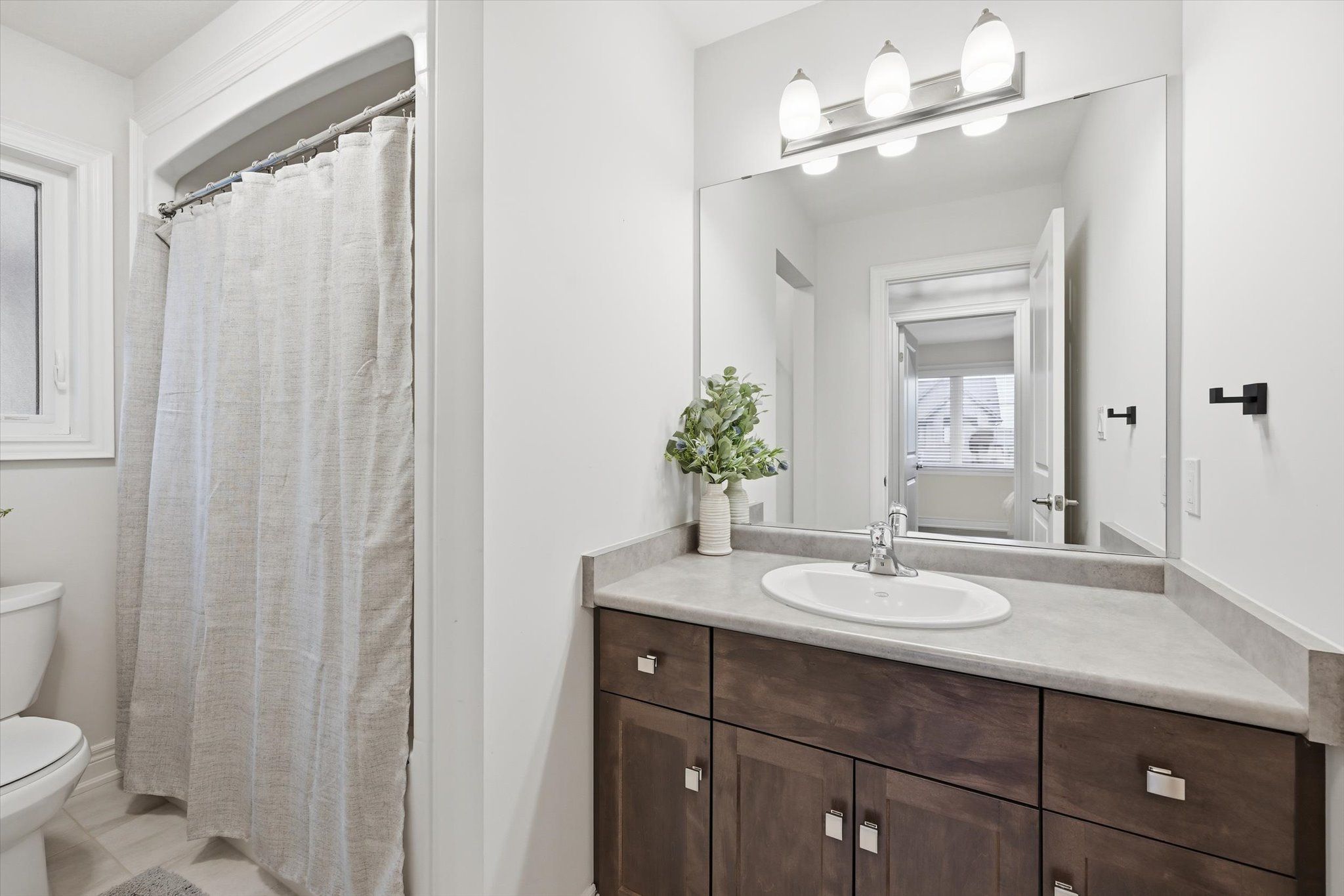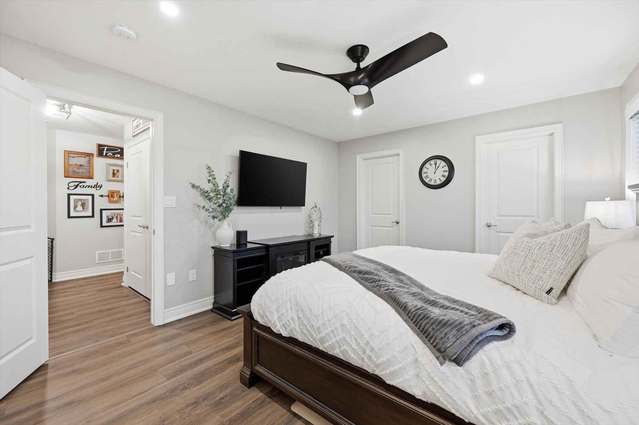 Exquisitely built in 2020 by Mountainview Homes, this beautifully upgraded residence is nestled in the prestigious, family-oriented Saffron Estates community of Fonthill. Offering approx. 1,869 sq. ft. of elegant above-grade living space plus an approx. 782 sq. ft. unfinished basement, this 4-bedroom, 3-bath home showcases thoughtful design and exceptional craftsmanship throughout. The open-concept main floor features 9' ceilings, engineered hardwood flooring, integrated ceiling speakers, and a stunning stone-clad natural gas fireplace with a custom hearth and antique wood mantel insert, framed by bespoke cabinetry with quartz countertops. The refined kitchen is highlighted by an oversized quartz island, custom coffee and wine bar, tile flooring, and seamless access to the backyard. The primary suite is a true retreat with his and hers walk-in closets and a spa-inspired 5-piece ensuite featuring double sinks, a glass shower, and a freestanding soaker tub. A rare second-floor laundry adds everyday convenience. Fully wired for Google Home, the home includes an alarm system, surge-protected electrical panel, sump pump tied to the alarm, gas hookups for BBQ and garage, and a 40-amp garage sub-panel. Exterior features include soffit pot lights, stamped concrete driveway, walkways and patio (reinforced for hot tub), gazebo, fully fenced yard, and shed on a concrete pad. Ideally located near parks, trails, Meridian Community Centre, and the charm of downtown Fonthill, this is refined Niagara living at its finest.