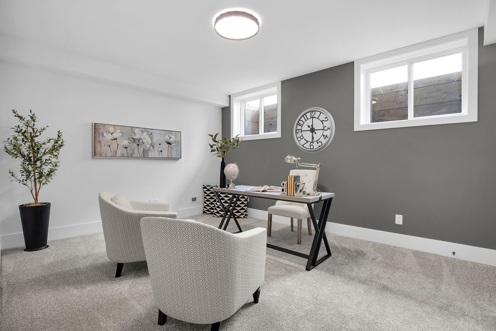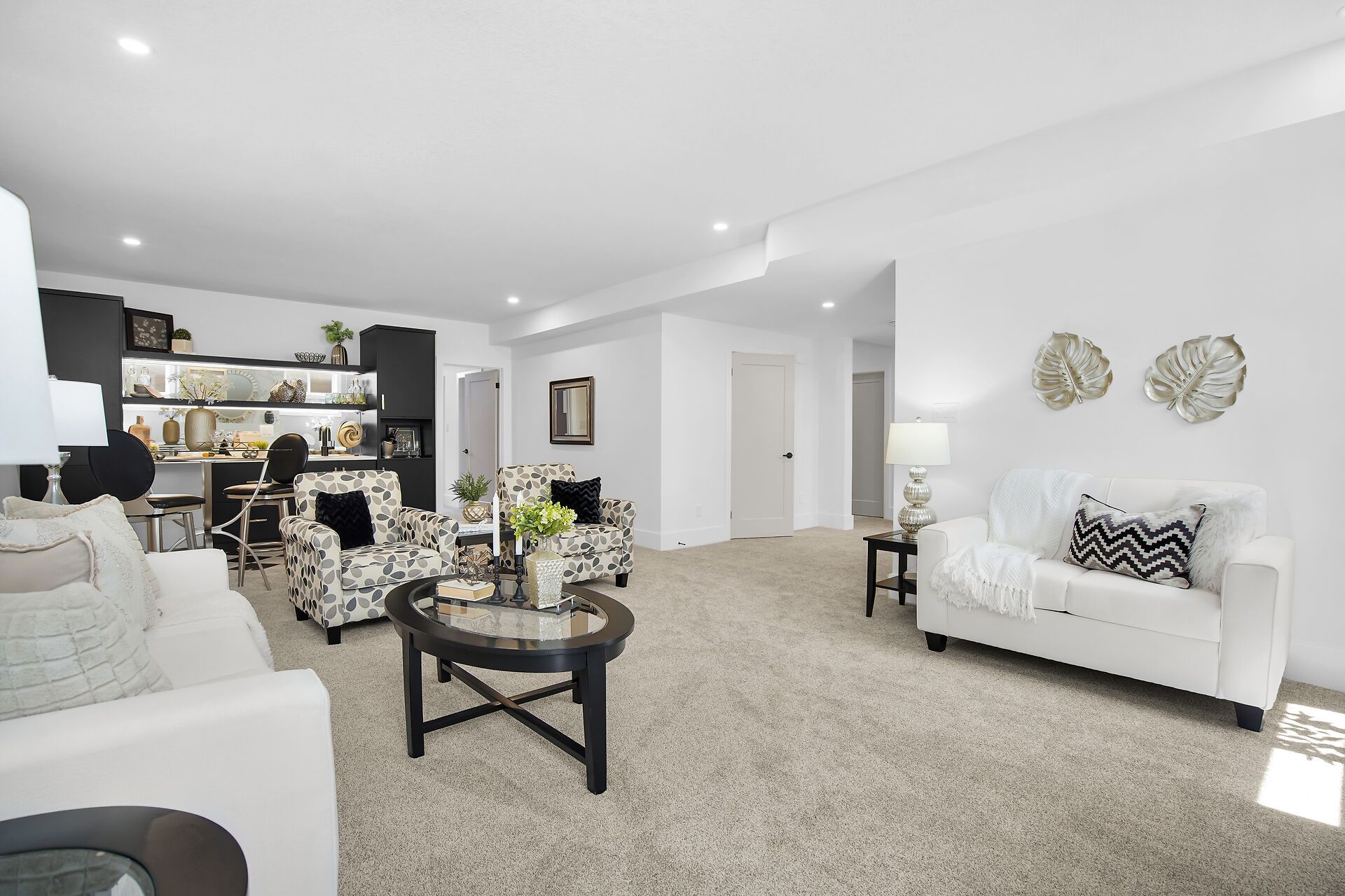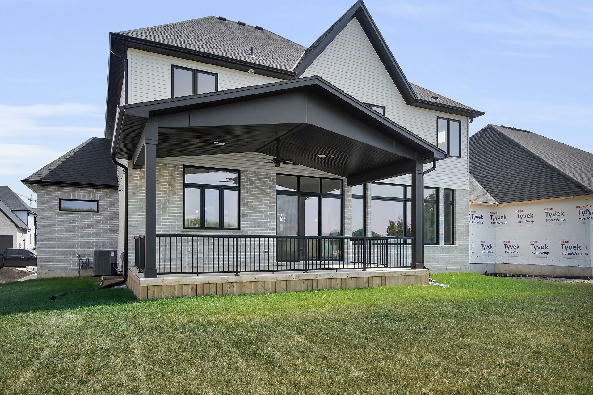 Exquisite custom 2-story "HEATHWOODS ll" model, built by Aleck Harasym Homes. The exterior features white stone, stucco & brick with large windows, 8' double front entry doors, GAF Timberline HDZ architectural roof shingles, a 25' x 12' brown pressure-treated covered rear deck with railing, a tandem garage with a separate concrete stairwell to the basement, 3 transom windows, insulated garage doors, walls & ceiling & brushed concrete driveway/walkways. Open concept 10' main floor with 2-floor foyer, vaulted ceiling in study, wainscoting detail in the dining room. The great room boasts a panoramic window wall & quartz-tiled fireplace with elegant built-in cabinets. The stunning "Chefs Style" kitchen offers white/charcoal cabinets, quartz counters & quartz slab backsplash. The kitchen cafe has a 9' x 8' sliding doors to the covered deck. There is a spacious walk-in pantry incl. sink, window, cabinets, quartz counters/ceramic tiled backsplash & direct access from the mudroom into the kitchen. The mudroom features a built-in bench & shiplap wall & coat hooks. The main & 2nd floors have 8' doors and ceramic floors in bathrooms, laundry & mudroom. Wide plank 7 1/2" engineered oak flooring in the foyer, powder room, kitchen/cafe, great room, dining room, study, landing & upper hall. All bedrooms are carpeted + an interior staircase to the basement. The 2nd. floor has 9' ceilings & 2 vaulted ceilings. All interior door hardware is Halifax levers in black. Inclusions; 2 garage door openers, barbecue gas line, 3 exterior hose bibs, French doors in study, pantry & to the basement. The builder is finishing 1239 sq. ft. in the lower level. Incl. a spacious Leisure Room with a gas fireplace & Bar, 5th Bedroom with 3pc. Ensuite, Office/Bedroom with WI closet 2pc. bath & 2 additional storage closets. The basement is 8' 9" high. Bright, spacious & beautiful, you will not be disappointed. Mature "SUGAR MAPLE" trees have been planted in the backyard for added privacy.