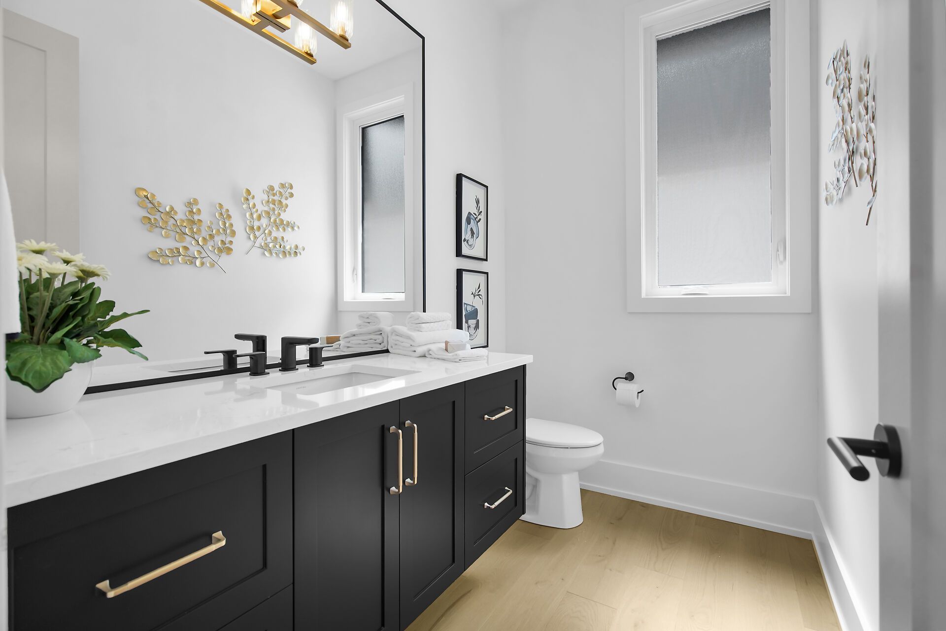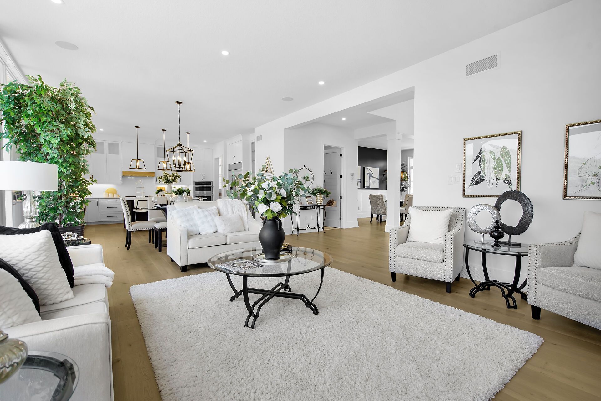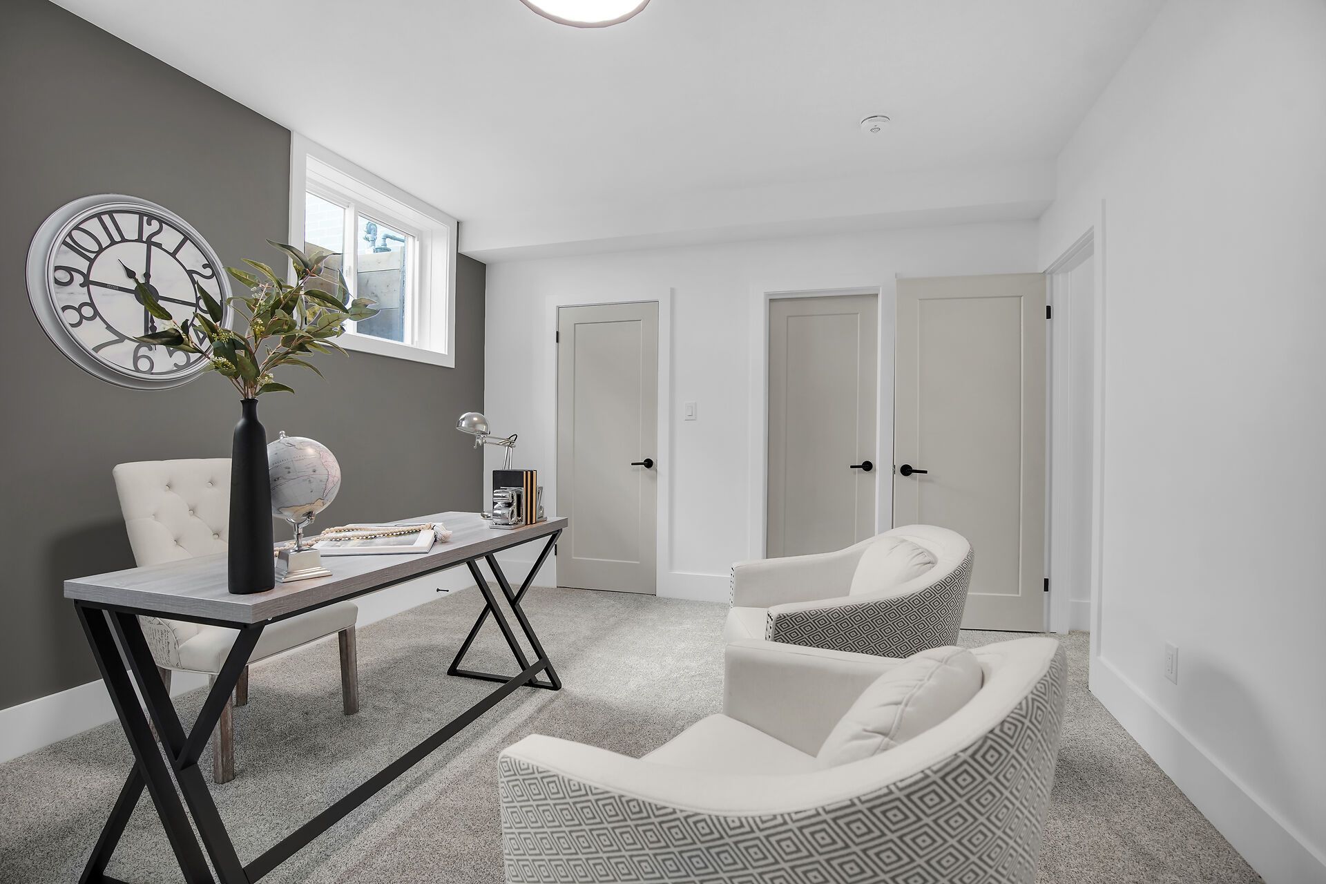Exquisite custom 2-story "HEATHWOODS ll" model, built by Aleck Harasym Homes. The exterior features white stone, stucco & brick with large windows, 8' double front entry doors, GAF Timberline HDZ architectural roof shingles, a 25' x 12' brown pressure-treated covered rear deck with railing, a tandem garage with a separate concrete stairwell to the basement, 3 transom windows, insulated garage doors, walls & ceiling & brushed concrete driveway/walkways. Open concept 10' main floor with 2-floor foyer, vaulted ceiling in study, wainscoting detail in the dining room. The great room boasts a panoramic window wall & quartz-tiled fireplace with elegant built-in cabinets. The stunning "Chefs Style" kitchen offers white/charcoal cabinets, quartz counters & quartz slab backsplash. The kitchen cafe has a 9' x 8' sliding doors to the covered deck. There is a spacious walk-in pantry incl. sink, window, cabinets, quartz counters/ceramic tiled backsplash & direct access from the mudroom into the kitchen. The mudroom features a built-in bench & shiplap wall & coat hooks. The main & 2nd floors have 8' doors and ceramic floors in bathrooms, laundry & mudroom. Wide plank 7 1/2" engineered oak flooring in the foyer, powder room, kitchen/cafe, great room, dining room, study, landing & upper hall. All bedrooms are carpeted + an interior staircase to the basement. The 2nd. floor has 9' ceilings & 2 vaulted ceilings. All interior door hardware is Halifax levers in black. Inclusions; 2 garage door openers, barbecue gas line, 3 exterior hose bibs, French doors in study, pantry & to the basement. The builder is finishing 1239 sq. ft. in the lower level. Incl. a spacious Leisure Room with a gas fireplace & Bar, 5th Bedroom with 3pc. Ensuite, Office/Bedroom with WI closet 2pc. bath & 2 additional storage closets. The basement is 8' 9" high. Bright, spacious & beautiful, you will not be disappointed. Mature "SUGAR MAPLE" trees have been planted in the backyard for added privacy.