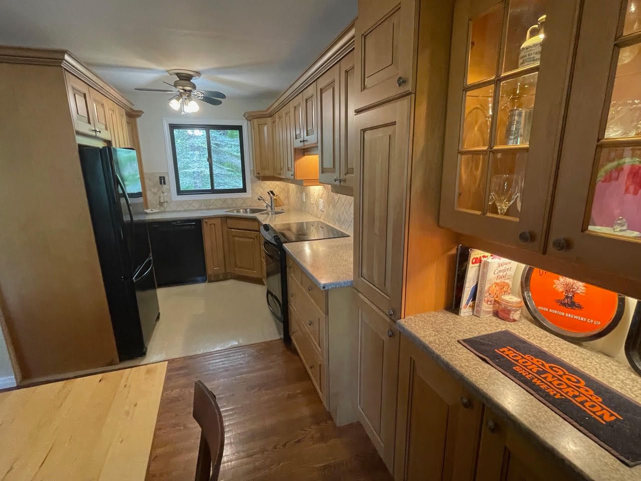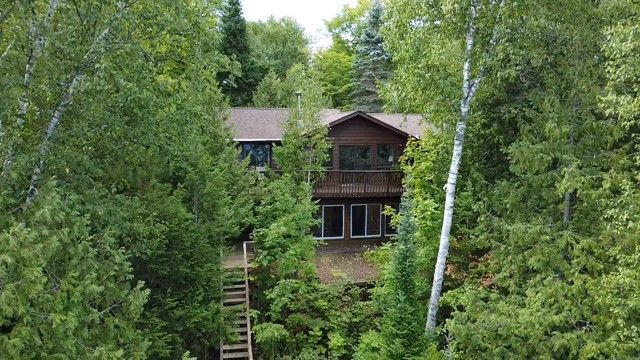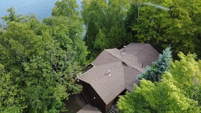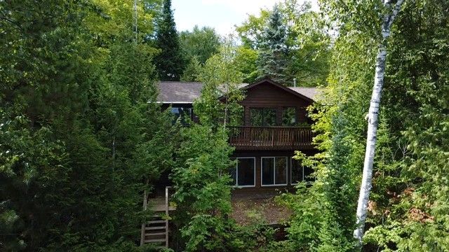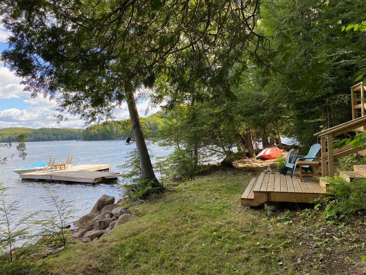 Incredible property on sought-after Miskwabi Lake! Rare point lot, with well over 300 feet of lake frontage (330' per assessment) and 1.3 acres for total privacy! Fantastic big lake view. Deep clean shoreline with a mix of rock and a hard sand beach for wading in -- perfect for kids. Bright and spacious 4-season cottage. The main floor has open-concept kitchen/living/dining areas. The living area features a vaulted ceiling, fireplace and walkout to deck facing the spectacular water view. There are 3 bedrooms plus a den, and 2 full bathrooms. Finished lower level with rec room, and walkout to sunroom facing the lake. Dual forced-air electric and oil-fired heating systems with on-demand hot water, plus electric baseboards and air conditioning. Detached 2-car garage with additional carport -- lots of storage for boats and toys! New stairs to waterfront, plus there's an easy trail leading down to the water, and nice level areas at the shoreline to play or relax. Enjoy sunset views from the dock and spectacular sunrise views from the cottage. Shoreline is owned. Miskwabi Lake is part of a 2-lake chain renowned for miles of boating, clear waters, and lake trout fishing. Easy access by year round Municipal road, approximately 15 minutes to Haliburton village for shopping and services.