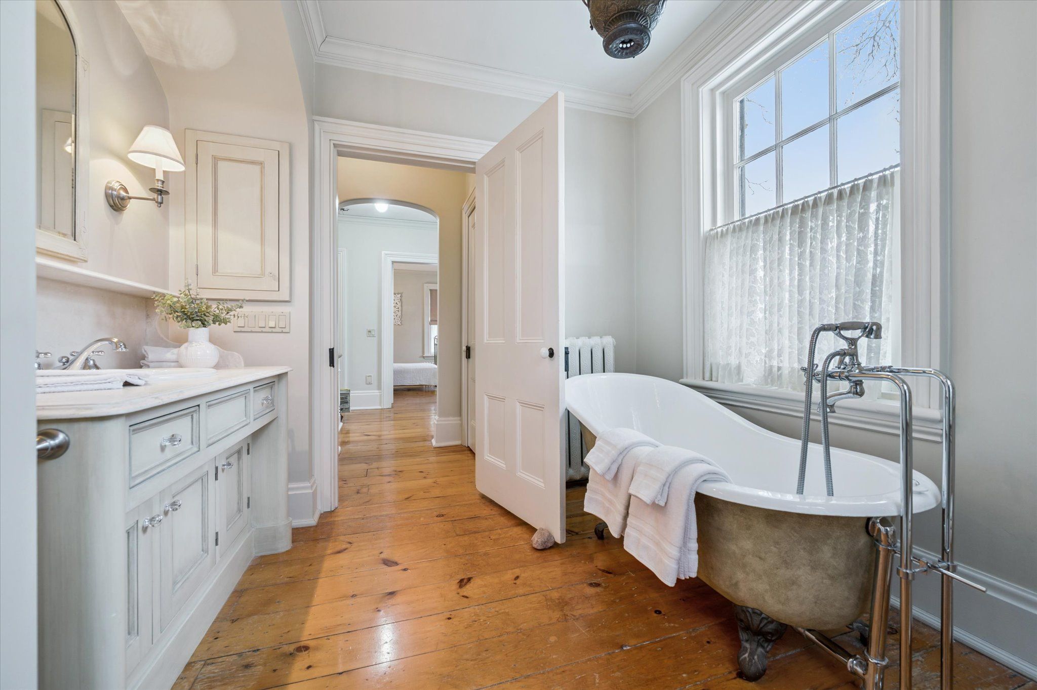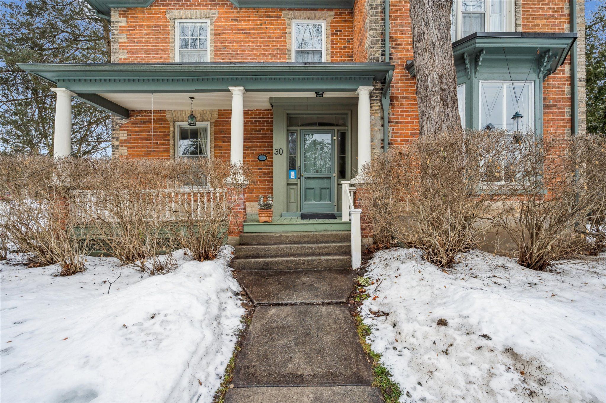 Historic 1867 Heritage Home in the Heart of Town. Built in 1867, this charming red-brick heritage home at 30 Moir Street offers timeless character and exceptional craftsmanship. Featuring yellow brick accents, original windows, and a classic front veranda, the exterior reflects its 19th century origins. Inside, a traditional centre hall plan showcases original pine floors, baseboards, and interior trim, complemented by a graceful cherry staircase. A one-storey rear addition (early 1900) blends seamlessly with the original structure. This designated heritage property protects key exterior and interior elements, offering a rare opportunity to own a beautifully preserved piece of local history.