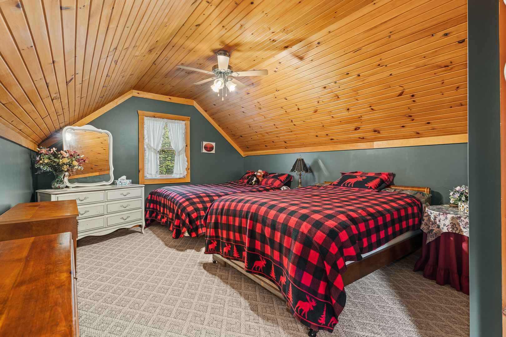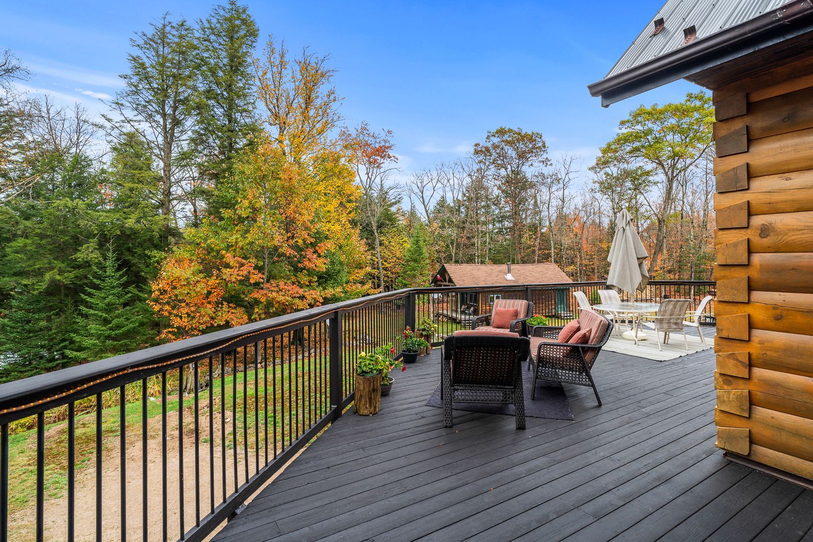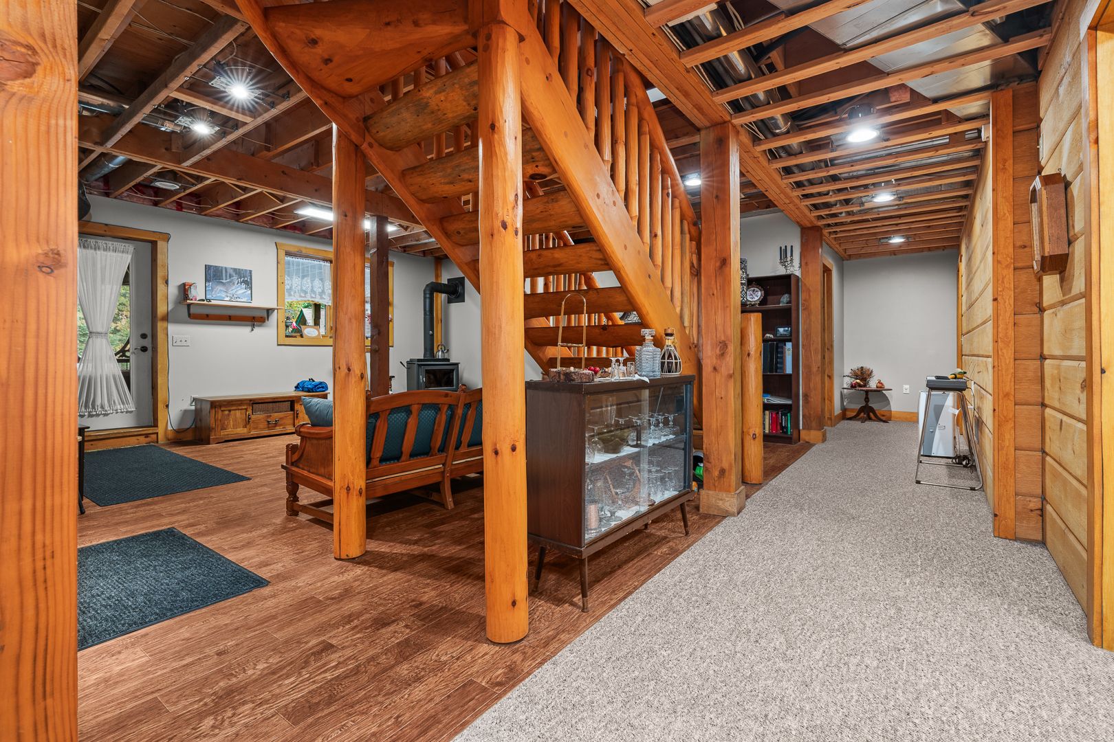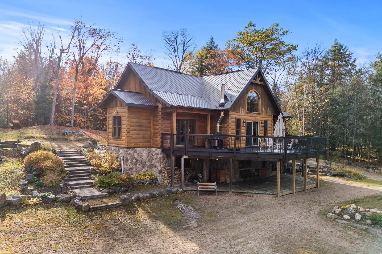 Welcome to this one-of-a-kind True North log home, built in 2005 and nestled on just over 9 acres in the unorganized Township of Lount. With 350+ feet of frontage on Maeck Lake, this property blends seclusion, craftsmanship, and natural beauty. Arrive to exceptional curb appeal and the timeless charm of log construction. Beautiful landscaping surrounds the home, featuring man-made waterfalls, a spacious yard for kids or pets, and a treehouse for endless outdoor fun. A detached two-car garage with a second story above, offering ample storage. Inside, pride of ownership shines. The main floor features hardwood floors and a custom crafted, built in cabinetry by Cutters Edge in the Kitchen, Primary Bathroom, and Basement Bathroom, Built in JennAir oven, microwave, and Kitchen Aid fridge with JennAir gas cooktop, with a Silestone Island countertop. The open-concept living and dining area is warmed by a propane fireplace insert and opens to an expansive deck across the back lakeside, perfect for enjoying peaceful views. A loft overlooks the living room, ideal as an office, creative nook, or extra sleeping area. The main floor also includes laundry and a 3-piece bath with in-floor heat. The primary suite is a true retreat with built-in cabinetry, deck access, and a spa-inspired ensuite featuring an oversized shower and massaging jets. The lower level offers two additional bedrooms, a large rec room with a wood stove, 3-piece bathroom with heated floors and a walkout to a lower deck. Modern comforts include a drilled well, septic, propane heating, and a wired generator. Near the shoreline, a charming bunkie equipped with hydro and propane options. Providing guest space with a bedroom, wash area, loft, wood stove, and propane stove. With a sandy waterfront, private dock, and the freedom of unorganized living, this property is the perfect year-round home or Northern retreat. Over 9 acres of privacy, with trails to explore, 350 feet of waterfront, and endless possibilities!