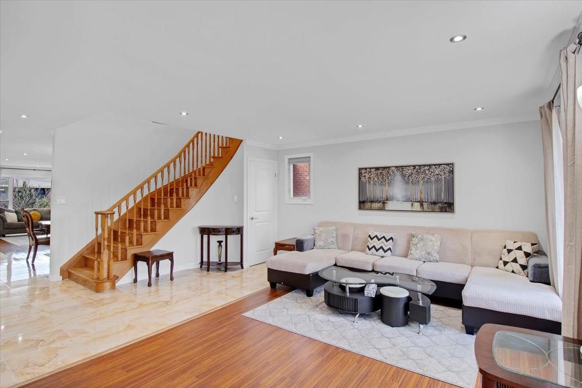 Exceptional family residence with rare multi-generational functionality situated on a premium 42 110 ft lot, offering approximately 3,156 sq. ft. of total living space thoughtfully designed for today's modern household. This meticulously maintained and extensively upgraded home features 4+2 bedrooms and 4 full bathrooms, delivering outstanding versatility, privacy, and long-term value. The main level showcases a refinished white chef's kitchen complete with quartz countertops, stainless steel appliances, porcelain tile flooring, and elegant crown moulding throughout. A bright open-concept living and dining area is ideal for entertaining, while the separate family room provides comfortable everyday living. A rare main-floor bedroom with a full bathroom offers an ideal solution for multi-generational living, aging parents, guests, or home-office flexibility. The upper level features a sprawling primary retreat spanning the full width of the home, highlighted by his-and-hers closets, a newly updated ensuite, and space for a private sitting area. All additional bedrooms are generously sized with abundant natural light, making this home exceptionally family-friendly. The fully finished basement with a separate side entrance enhances the home's value with two additional bedrooms, a full bathroom, kitchen, large recreation area, and laundry, presenting excellent in-law suite or income-generating potential. Additional upgrades include hardwood flooring on the main level, upgraded bathrooms (2024), newer roof and windows, fresh paint throughout, and a carpet-free, smoke-free interior- truly move-in ready. Ideally located in a quiet, family-oriented neighbourhood, close to parks, schools, shopping, public transit, and major highways, this property offers a rare combination of space, layout, and flexibility rarely found in today's market. A standout opportunity for families, investors, or multi-generational buyers. Book your private showing