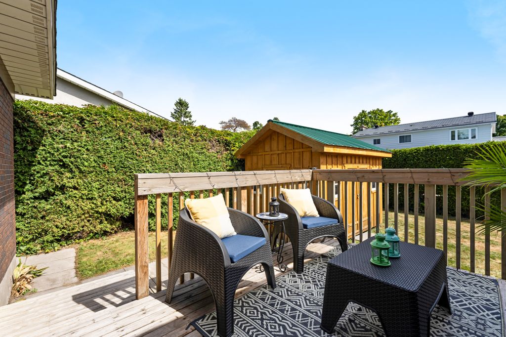 Welcome to 3 Roberta Crescent, a true five-bedroom, three-bathroom all-brick family home set on a large hedged lot with 65ft frontage, tucked away on a quiet, mature crescent in the heart of Barrhaven. Perfect for a growing family in need of space, this home blends traditional charm with a long list of modern updates, all in one of the community's most desirable locations. The oversized interlock driveway accommodates up to four vehicles with ease, adding both convenience and curb appeal. Inside, thoughtful renovations create a warm and functional layout. The living room has been updated with new flooring, a custom façade for the woodburning fireplace, and a striking mantle (2025). The former sunroom was professionally converted into a bright and inviting dining room in 2025, featuring seven new windows, spray foam insulation, updated ventilation, new lighting, fresh flooring, an exposed brick interior wall, and a seamless transition to the large kitchen with generous cabinet and counter space perfect for entertaining and family gatherings. The main floor also includes a new powder room, office, and mudroom with new finishes and a stylish barn door for privacy (2025). Upstairs, five bedrooms provide plenty of space for family, guests, or home offices. Major updates include new front and back doors, exterior paint on dining room & garage door, new air conditioner (2024), and a custom-built 10x14 shed (2022). Additional improvements include fresh interior paint, plantation shutters (2021), new washer/dryer & dishwasher. A red oak tree (2019) enhances the landscaped yard. N atural gas was brought to the kitchen stove and BBQ in 2018, along with new appliances. With its spacious design, family-friendly features, and extensive list of upgrades, 3 Roberta Crescent offers the perfect balance of character, comfort, and modern living in sought-after old Barrhaven, just steps away from parks, schools, shopping and restaurants and a quick commute on the 416/417 corridors.