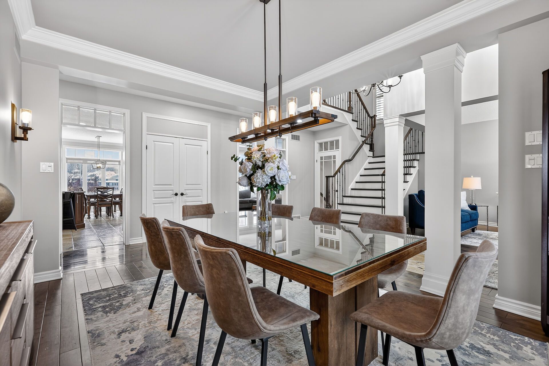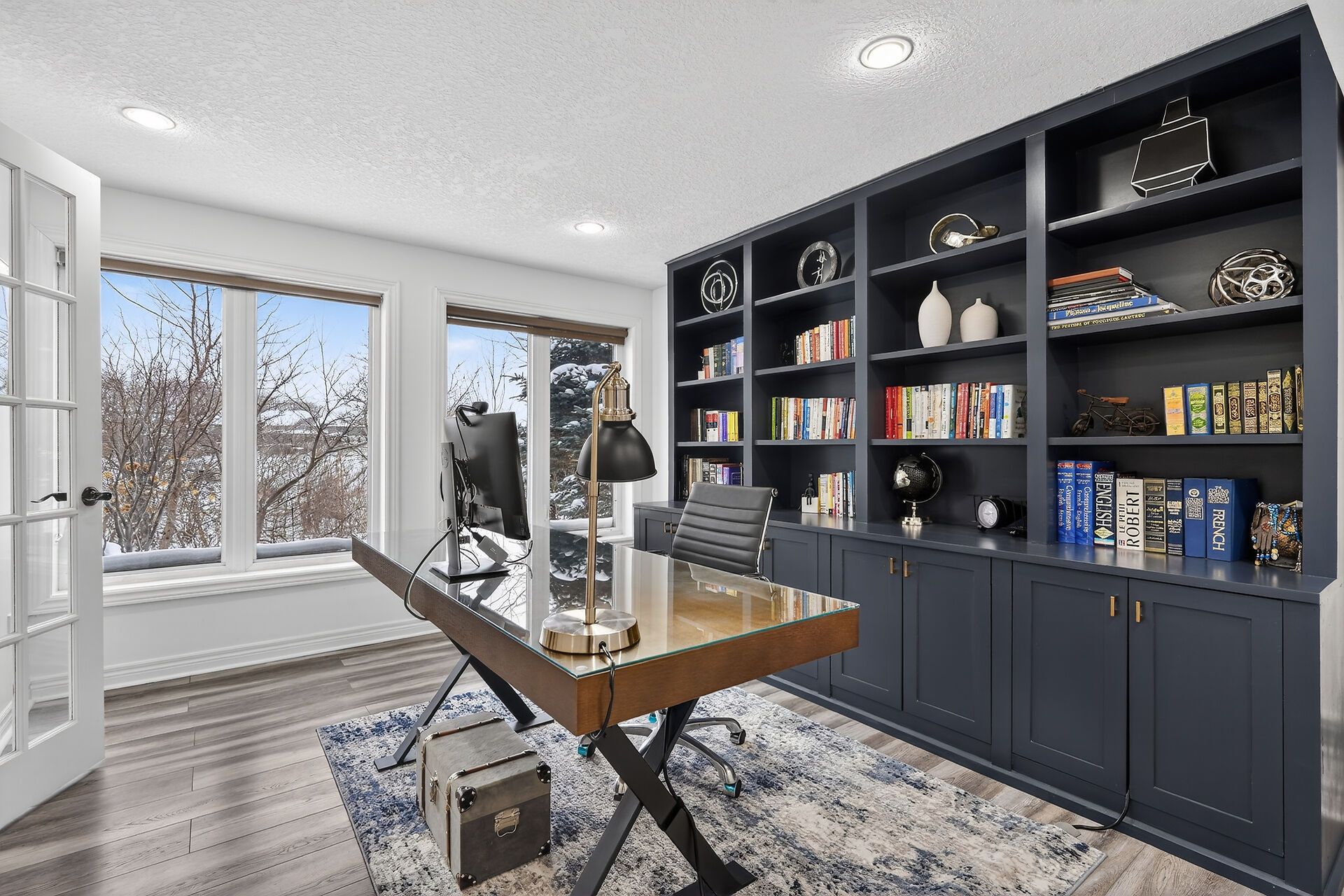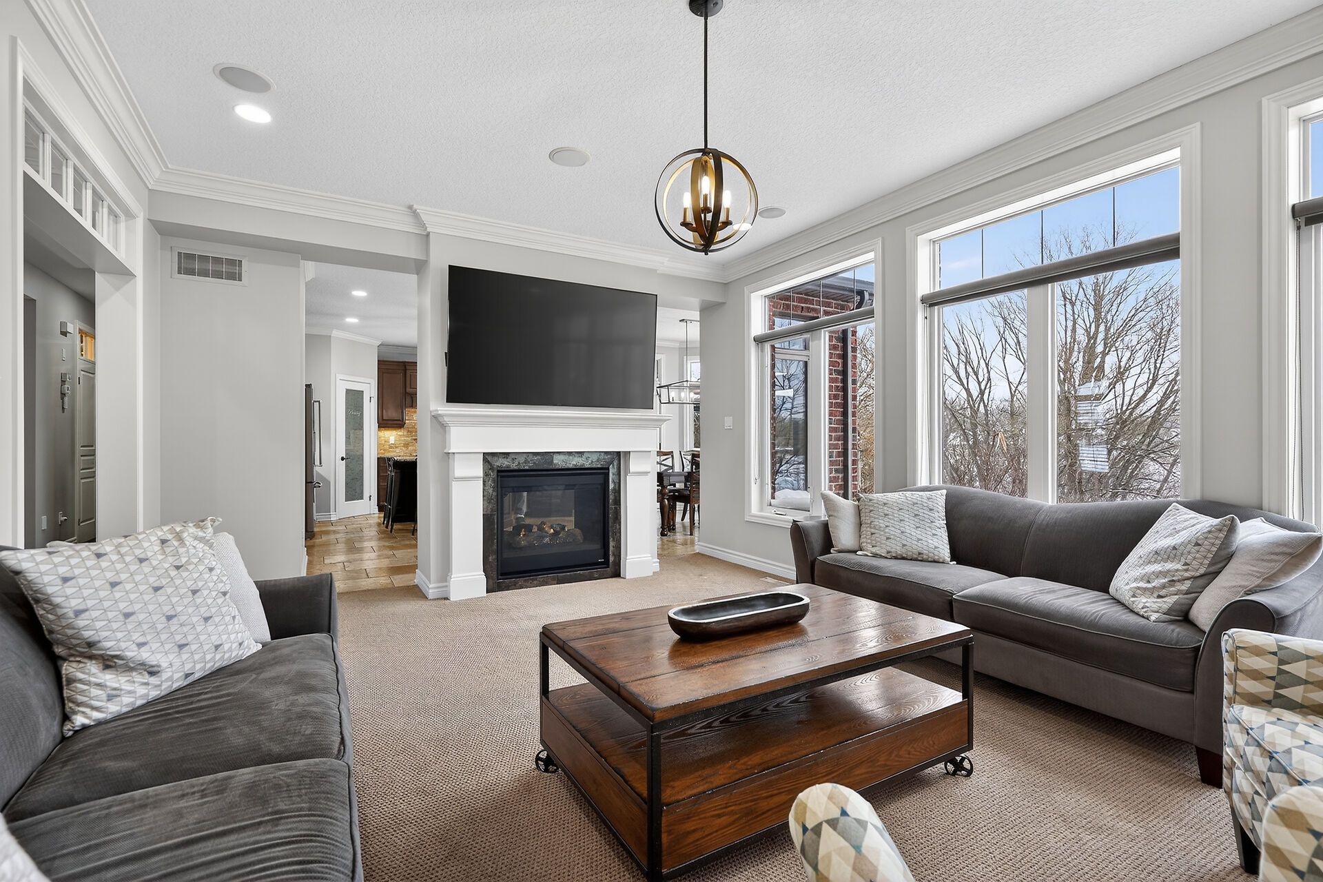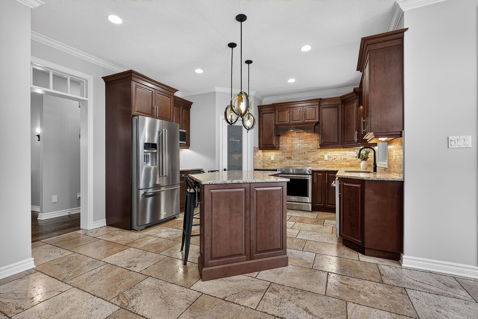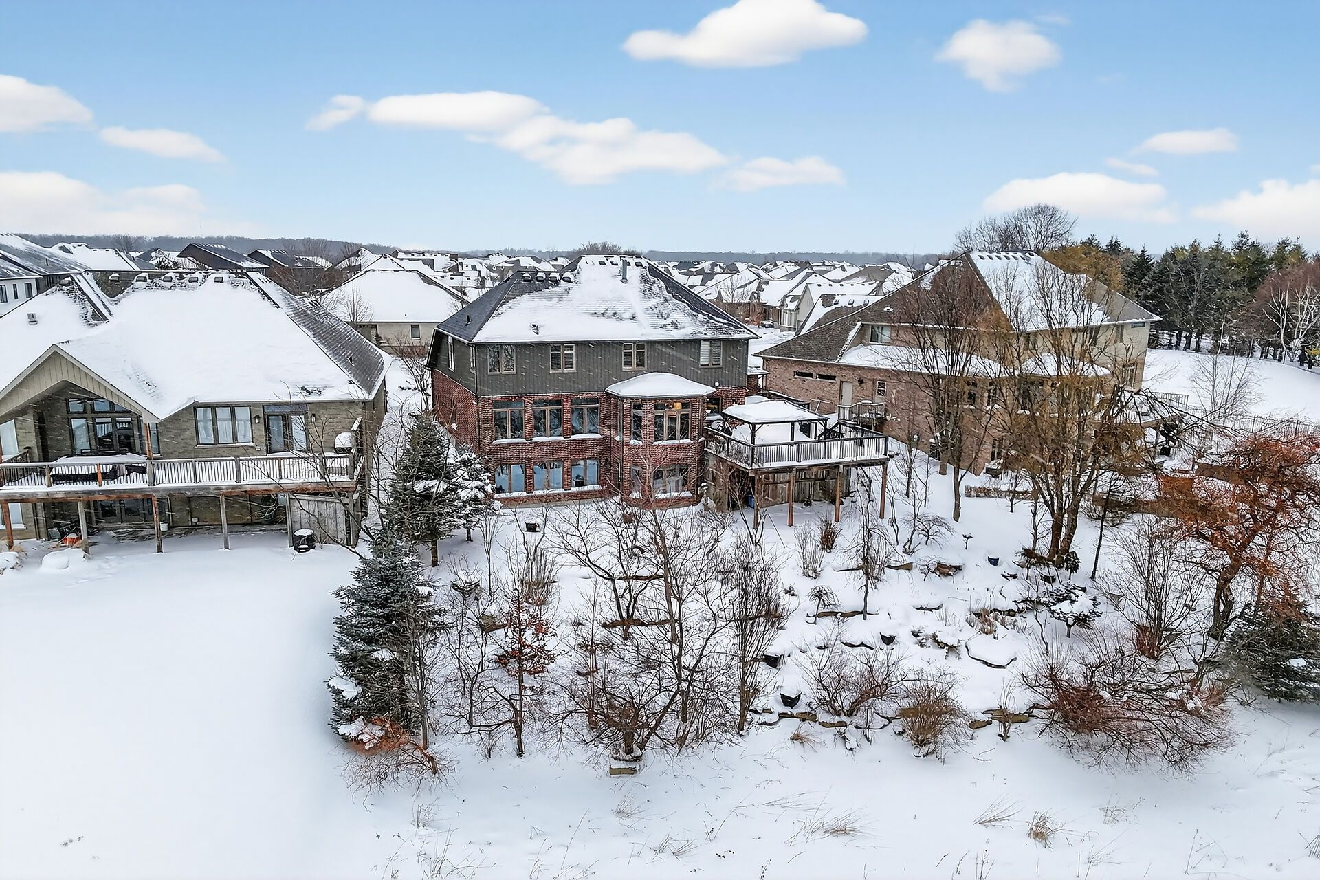 Welcome to 2505 Gatenby Street, ideally located in sought-after Riverbend on one of the neighbourhood's most distinguished streets. This exceptional stone and brick residence sits on a rare pie-shaped lot of nearly 1/4 acre, backing onto mature trees and protected green space for remarkable privacy and a serene ravine setting. Professionally landscaped by Nature's Image, the terraced backyard features mature gardens and a tranquil pond, creating a true outdoor retreat. A full sprinkler system services the front, sides, and rear gardens, complete with app-based remote control. Built in 2012 by respected London builder Aleck Harasym Homes, this residence offers over 4,200 sq ft of finished living space with meticulous attention to detail throughout. The formal main floor includes living, dining, and family rooms accented by warm hardwood floors, crown moulding, window transoms, in-ceiling surround sound, and a striking double-sided gas fireplace. The maple-brown kitchen features granite countertops, a walk-in pantry, octagonal dinette, and new stainless-steel appliances (under warranty). It opens to a wraparound deck overlooking treed views. The extended second-floor deck, updated in 2020, includes under-deck storage. Main-floor laundry includes newer washer and dryer (2021). Additional upgrades include an owned tankless water heater (2021), updated lighting and faucets (2022), rough-in central vacuum, and camera-enabled exterior security. Upstairs, 4 spacious bedrooms await, including an oversized primary retreat with his-and-her closets and a refined five-piece ensuite.The finished walkout basement, renovated in 2022, adds flexibility with two additional bedrooms, a den, 3pc bath, second kitchen, a large office with custom wall unit, and a cozy banquette window-seat nook. Walk directly out to your private backyard sanctuary. Offered far below replacement cost for this lot size and square footage. A rare opportunity in one of Riverbend's most coveted settings.