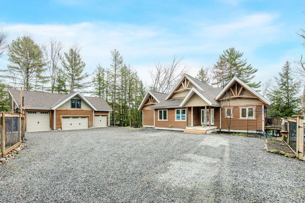 A serene waterfront lifestyle awaits with 3641 sq ft total finished on the shores of Butterfly Lake in Port Carling. This custom-built home is nestled on a private lot filled with matures trees, gardens, and calming southern exposure lake views from multiple rooms. The spacious interior is highlighted by a stunning cathedral ceiling with natural wood beams in the living room, where floor to ceiling windows overlook the backyard and a wood fireplace is set in an elegant brick facade. The fully-equipped kitchen offers ample cabinetry, a dual-level island, and is just steps from the versatile dining room space. A large pantry and laundry room combination add convenience, with the bonus of a garden door walkout. The primary retreat is complete with a pampering 5-piece ensuite and a walkout to a private balcony, ideal for enjoying your morning coffee or a night cap as the sun sets. Two other family bedrooms located on the main level are served by the main 4 piece bathroom. On the lower level, utilize the spacious recreation room to best suit your family's needs, and find plenty of space for guests with 4 additional bedrooms - all with 9' ceilings. A walkout to the backyard adds convenience while enjoying the summer sun, providing easy access to the 4-piece bathroom. Enjoy the great outdoors tending to the multiple gardens, practicing hobbies in the oversized garage with rough-in for loft/living space, and enjoying the pristine lakefront with loved ones. A newer dock adds peace of mind, and there is plenty of space for children to play on the shoreline. 1930 sq ft main level.
