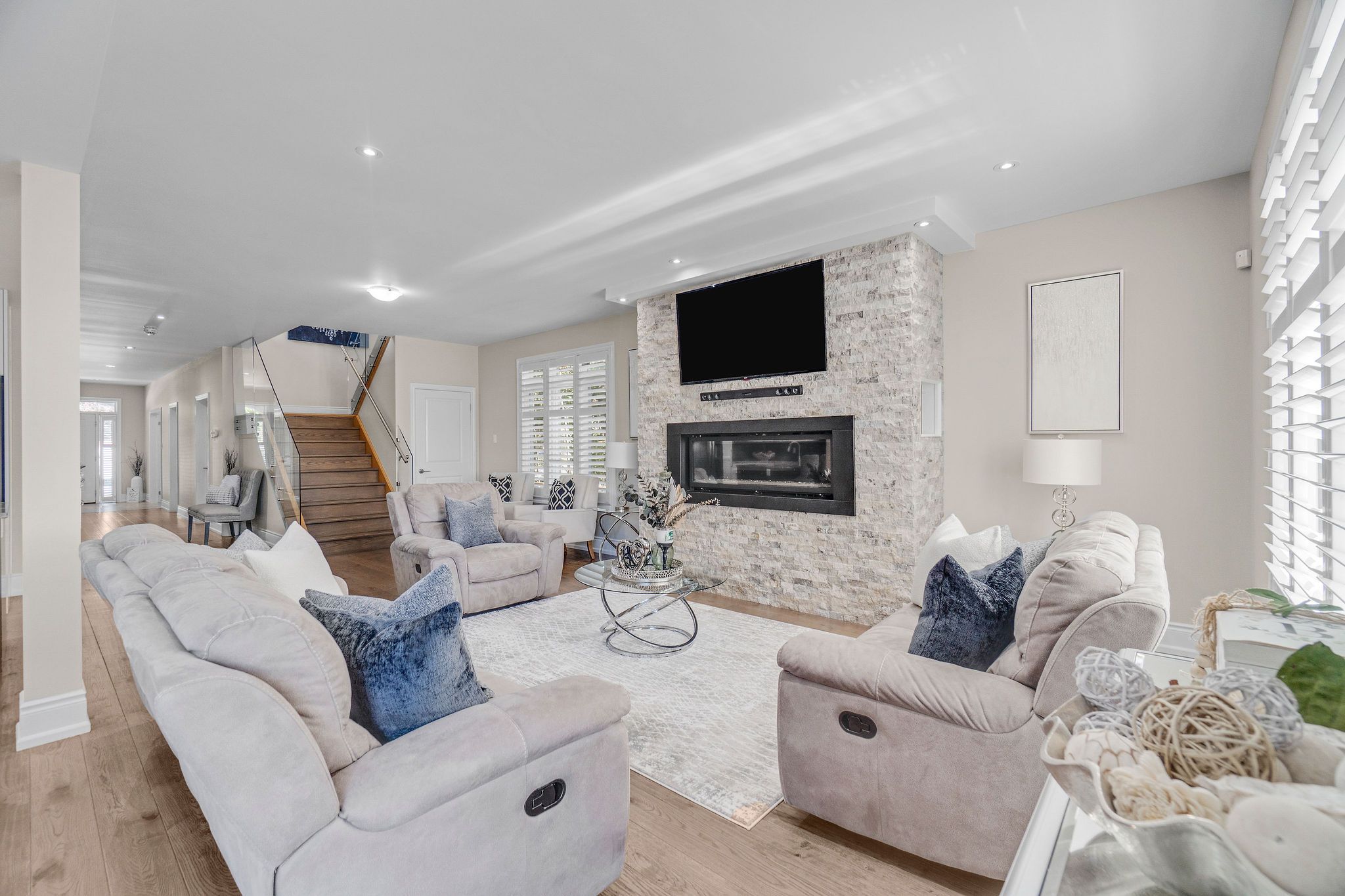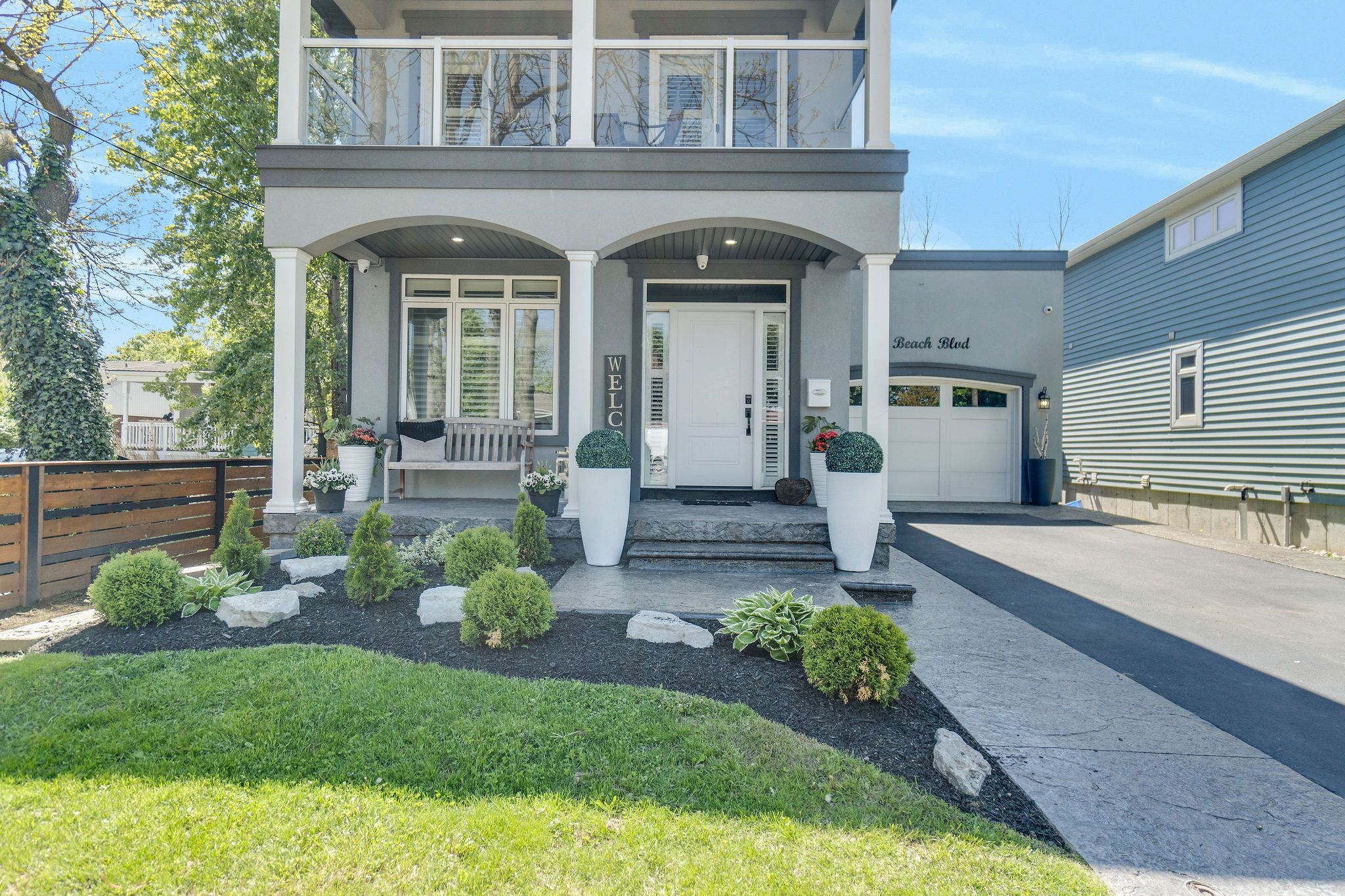 Welcome to 958 Beach Blvd! Stunning, custom built, 3 bed 3 bath home situated on a large 170 deep lot located in the desirable Hamilton Beach community. Bright and spacious with a functional, open concept floor plan. Located just steps to the waterfront trail & sandy beach. Stylish kitchen with centre island, granite counters, stainless steel appliances, custom cabinetry with under valence lighting. Pot lights, 9 ceilings, california shutters and engineered hardwood throughout. Main floor office or den area off the foyer. Laundry room with cabinetry & laundry sink on the main floor. Sliding doors off dining area to back deck to cabana with fireplace & TV. Off the back deck there is a massive, fenced backyard. Glass railing off living area leads to second floor sitting room, with sliding door walk out to 363 sq ft terrace with water views. Primary bedroom offers 5pc ensuite, walk-in closet and private 94 sq ft balcony also with water views. Second & third bedrooms are spacious with large closets. Watch the sun rise from your balcony, and relax in the evening with the sunset out back. Close proximity to downtown Burlington, public transit, waterfront trail, parks, amenities & quick highway access.