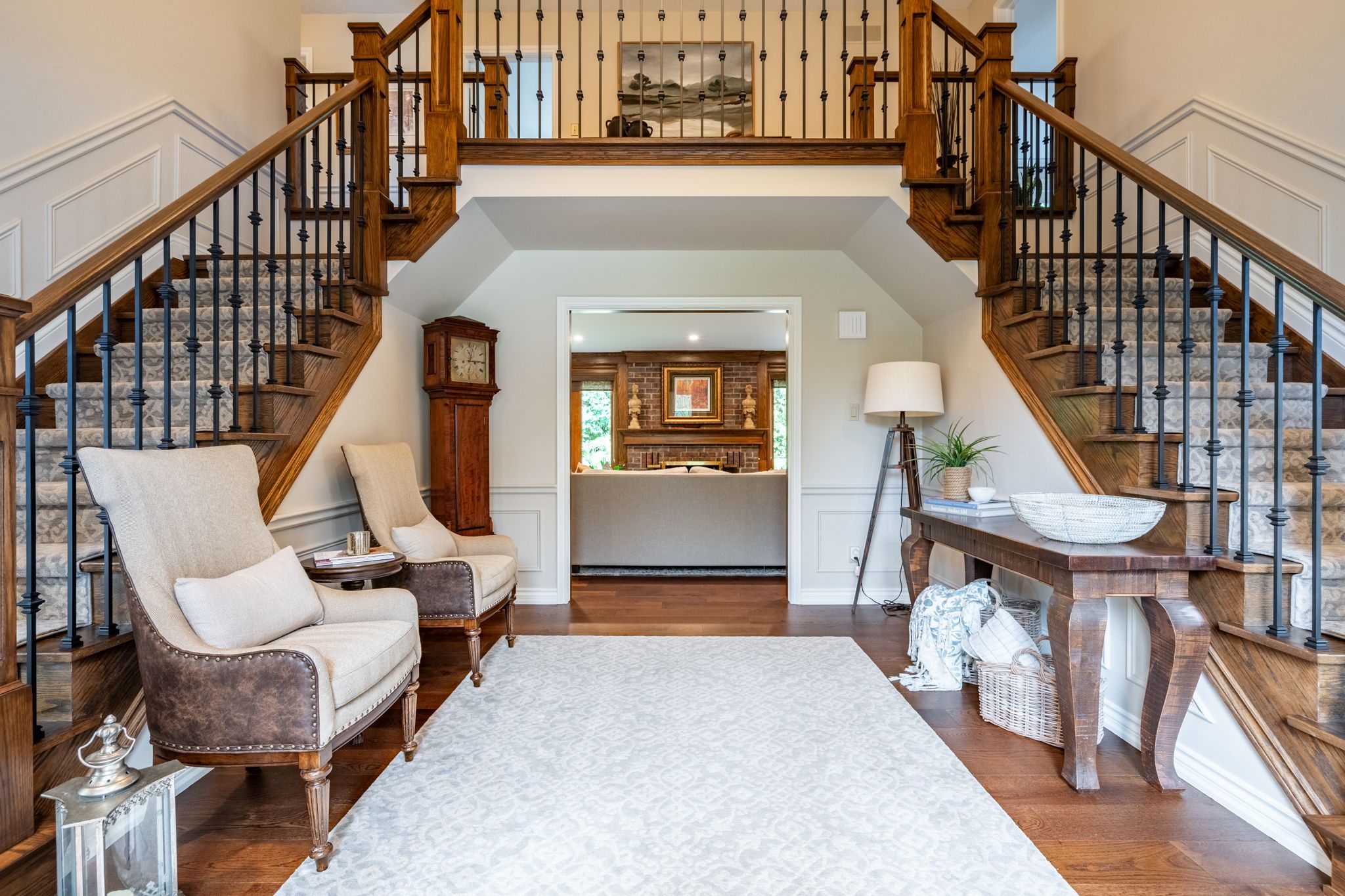 Exceptional Estate in One of Ancaster's most sought-after Neighbourhoods! Just steps from the prestigious Hamilton Golf & Country Club, this remarkable estate offers over 4,000 sqft above grade of living space on a generous pie-shaped lot w/ lush landscaping, inground pool & a resort-like bckyrd! The approach alone is unforgettable- you're greeted by a picturesque streetscape, grand windows (replaced '11-'15), extensive stonework & landscaping ('14) & an incredible architectural presence. Inside, a stunning double staircase (reno'd Spring '21) makes an immediate statement. Beneath the staircase, the elegant great rm feat rich oak wainscoting and a gas fp, creating a warm yet sophisticated gathering space. Main flr hdwd '21. The kitchen, fully reno'd in '21, boasts Cambria quartz countertops & premium Thermador appliances. Step outside from the kitch to an extraordinary, bckyrd oasis designed for entertaining! Highlights include two gas fp, multiple outdoor entertaining areas, an impressive L-shaped pool & ample green space for children and pets. Landscaping by Cedar Springs in '11. The main lvl also offers a gracious living rm w/ a wood-burning fp, a formal dining rm, a regal office w/ oak detailing and wainscoting, a 2-pc bthrm and a convenient main-flr lndry rm off the grg w/ heated floors. Upstairs, you'll find 4 generously sized bdrms and 3 full bthrms. The children's rms share a Jack & Jill bthrm reno'd in 15', while the luxurious primary suite feat his-and-hers w/i closets, a spa-like ensuite reno'd in 15' w/ Cambria Quartz countertops, heated flrs, and an add'l gym or private office. The lower lvl offers exceptional versatility, w/ a spacious bdrm, full kitch w/ granite countertops ('15), and a reno'd bthrm w/ heated flrs ('15). With a sep entrance, this lvl is ideal for summer entertaining, pool access, or extended family living. A truly rare offering-private, elegant, and perfectly located-this home delivers timeless design & an unmatched lifestyle.