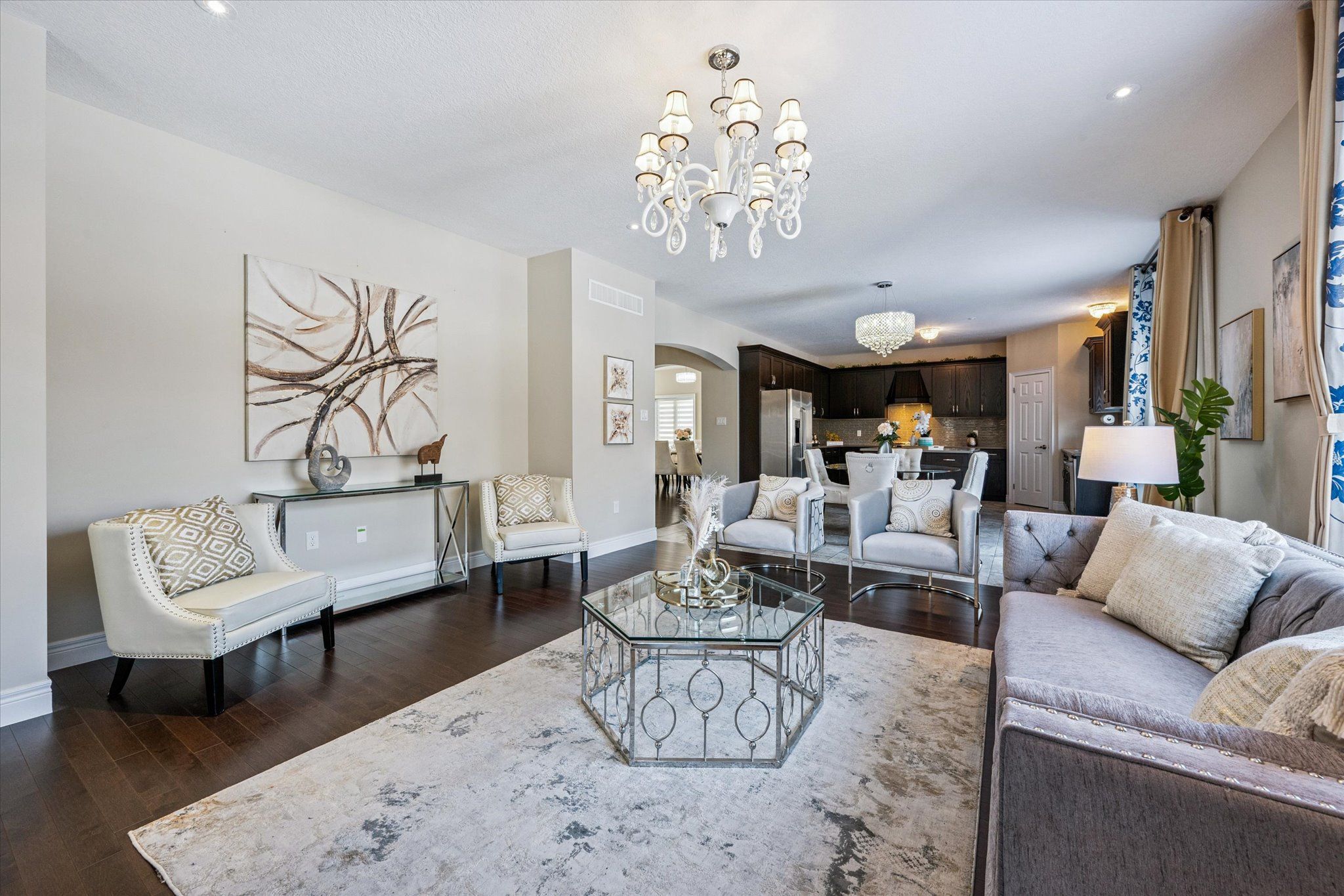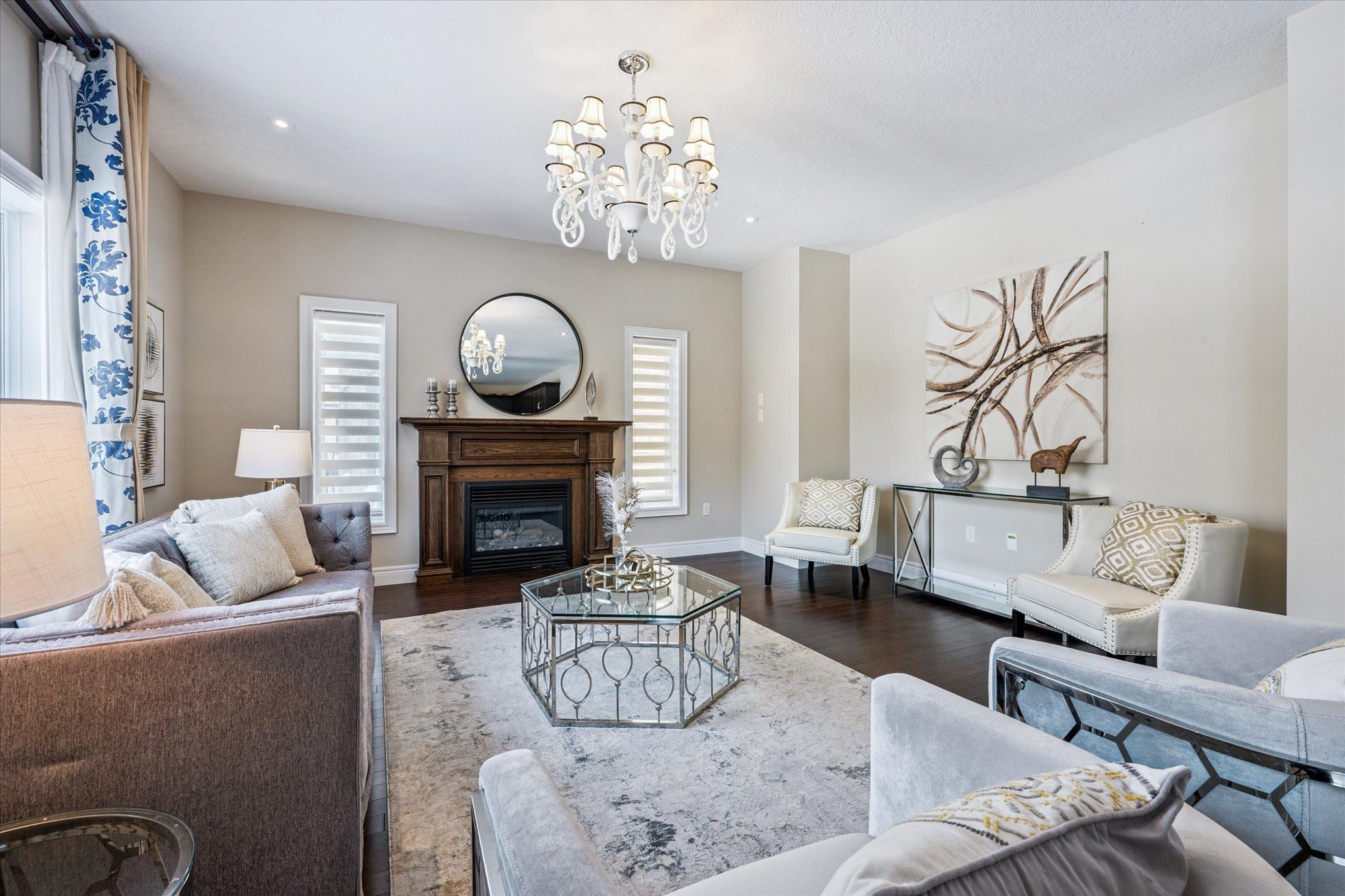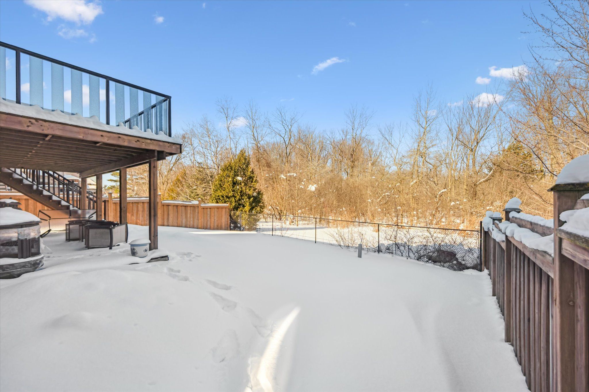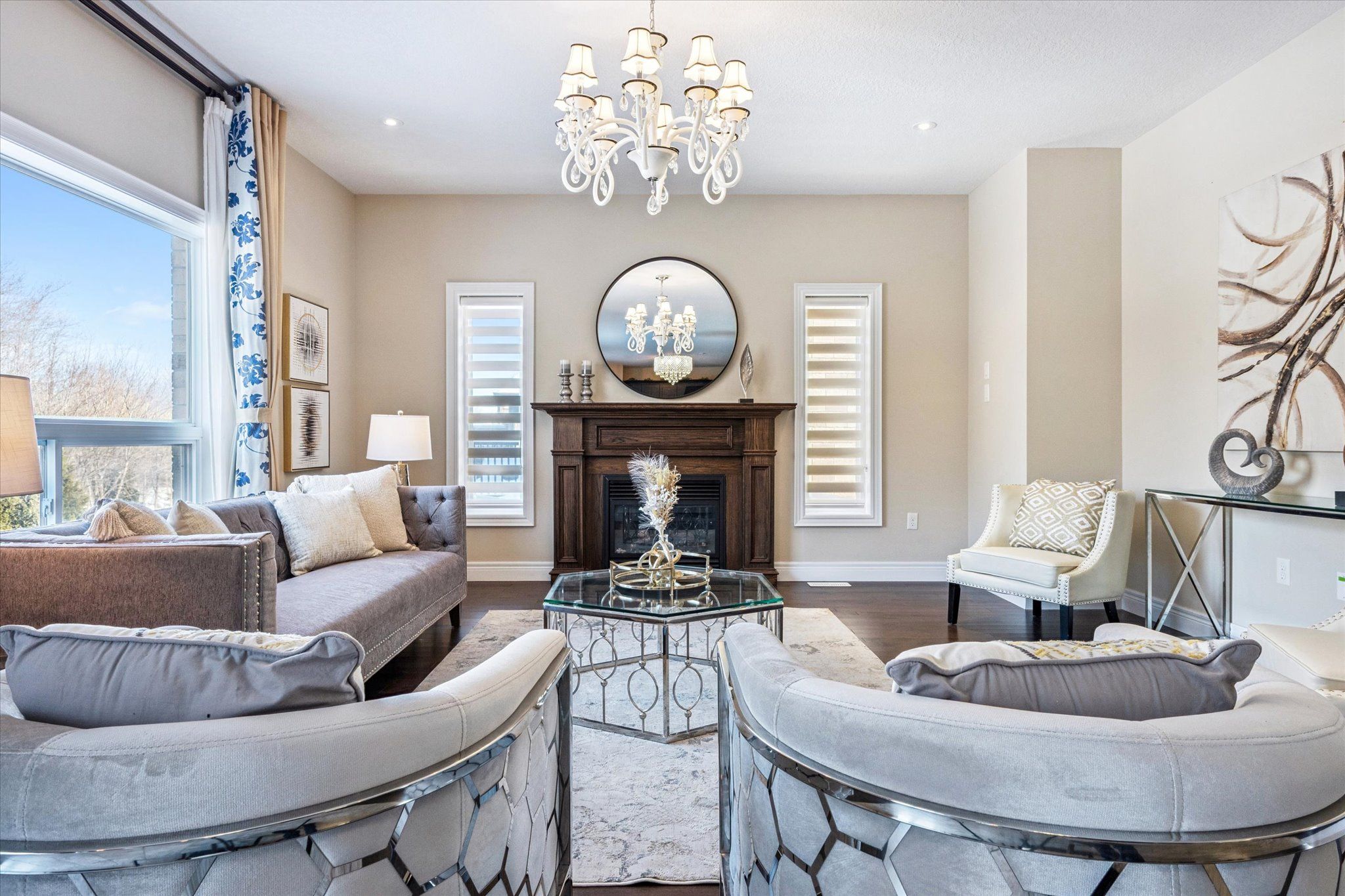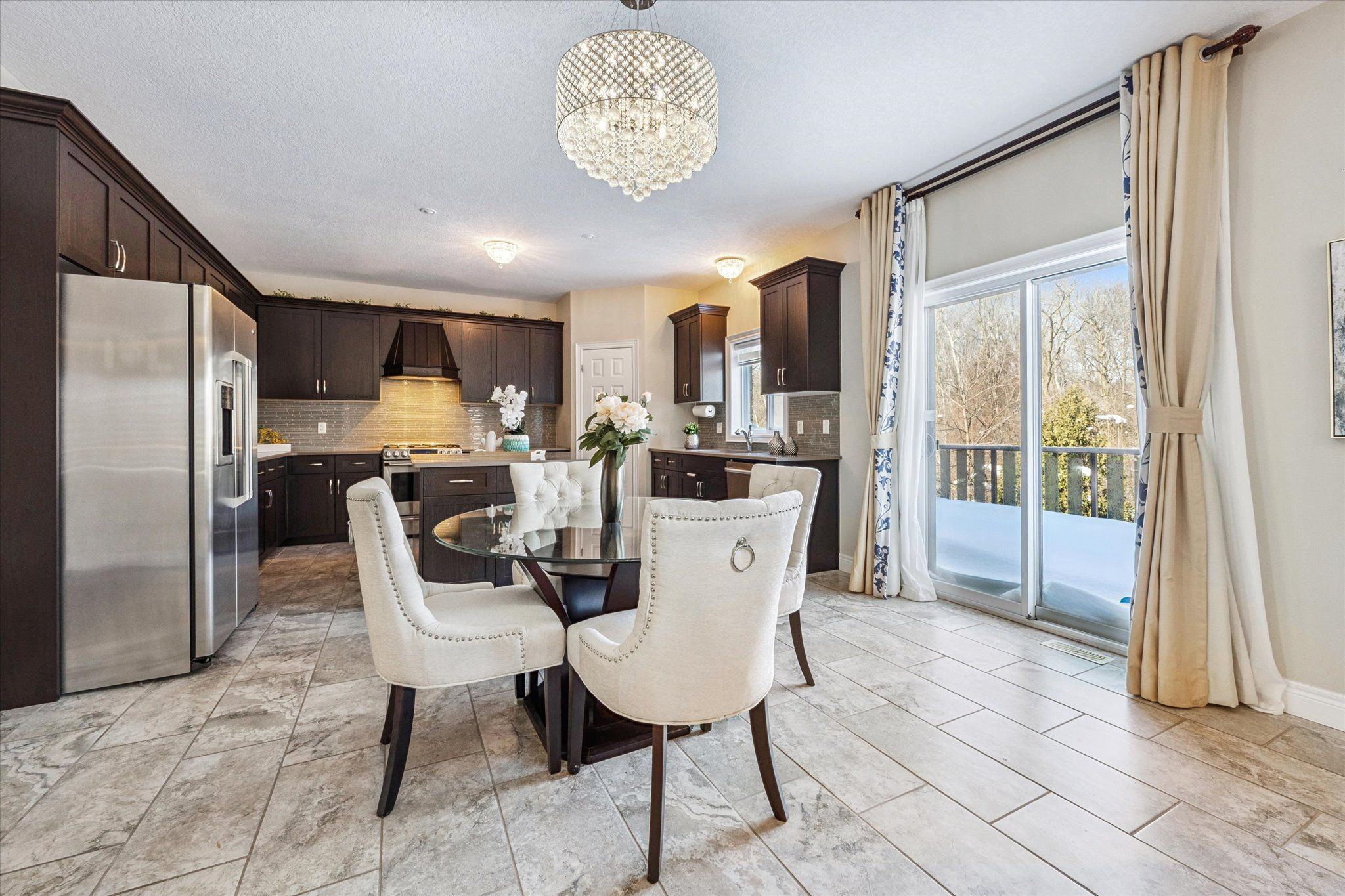 Set on a premium lot backing onto conservation and greenspace, this former model home (built in 2015) offers approximately 4,080 sq. ft. of total living space, including 2,880 sq. ft. above ground and 1,200 sq. ft. in the walk-out basement, ideal for growing families. The main floor features a spacious open-concept layout with soaring ceilings, highlighted by an oversized kitchen with a large dinette that seamlessly flows into the great room with gas fireplace. Step directly from the dinette onto a generous deck and enjoy unobstructed forest views. The home also offers a formal dining room, perfect for entertaining, and a bright, private living room located just off the foyer. The second level boasts four spacious bedrooms and 2 full bathrooms, including a primary retreat with a luxurious 5PC ensuite and large walk-in closet. The finished walk-out basement has building permits with large recreation room with electric fireplace, an additional bedroom, and a full bathroom with a sauna. Additional features include hardwood flooring throughout, with brand-new hardwood installed on the second level in 2025, and a large deck, fully fenced, private backyard backing onto conservation. Conveniently located close to schools, library, recreation centre, Costco, and shopping amenities, this exceptional property offers both comfort and convenience-an ideal place to call home.
