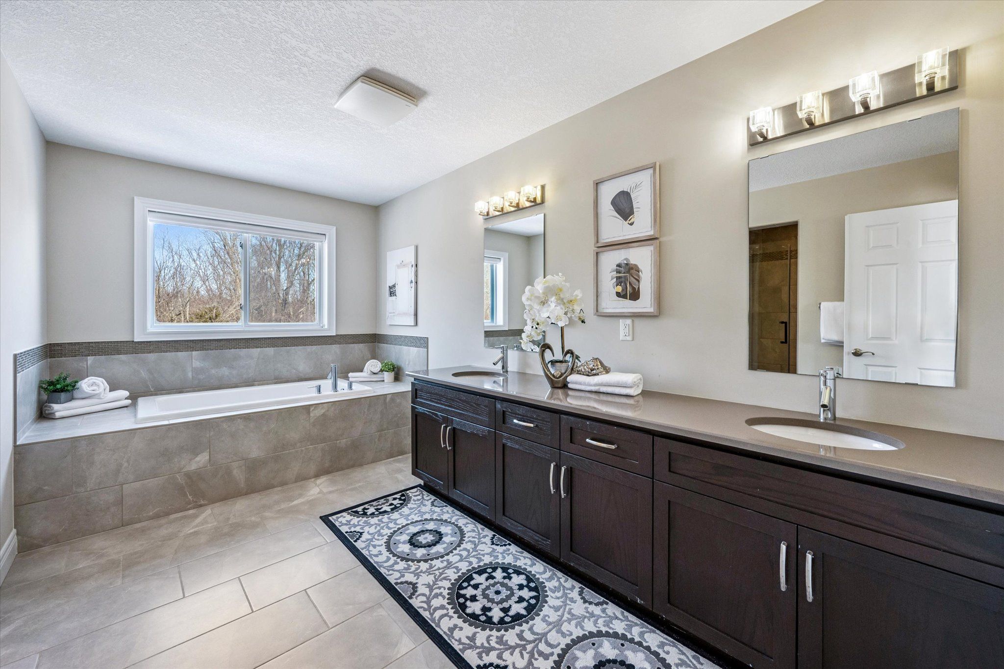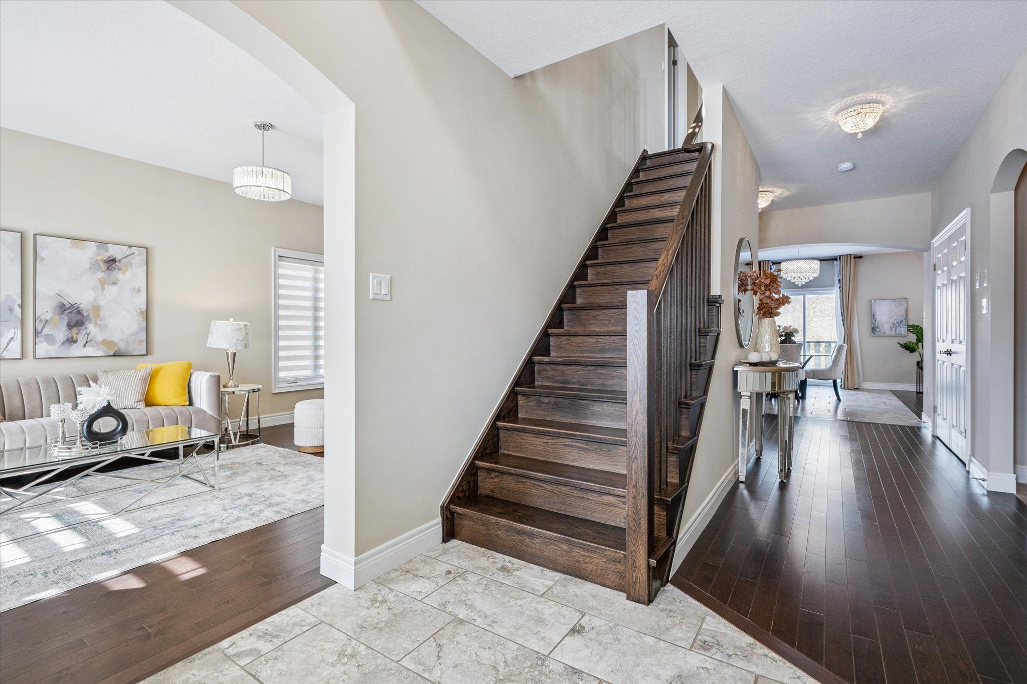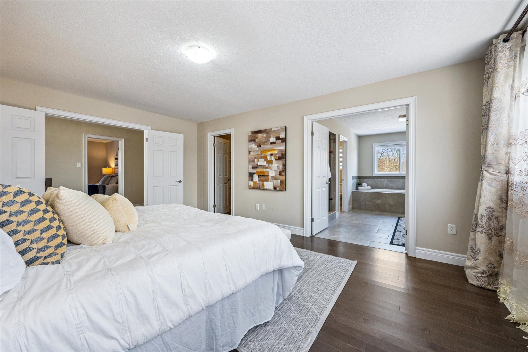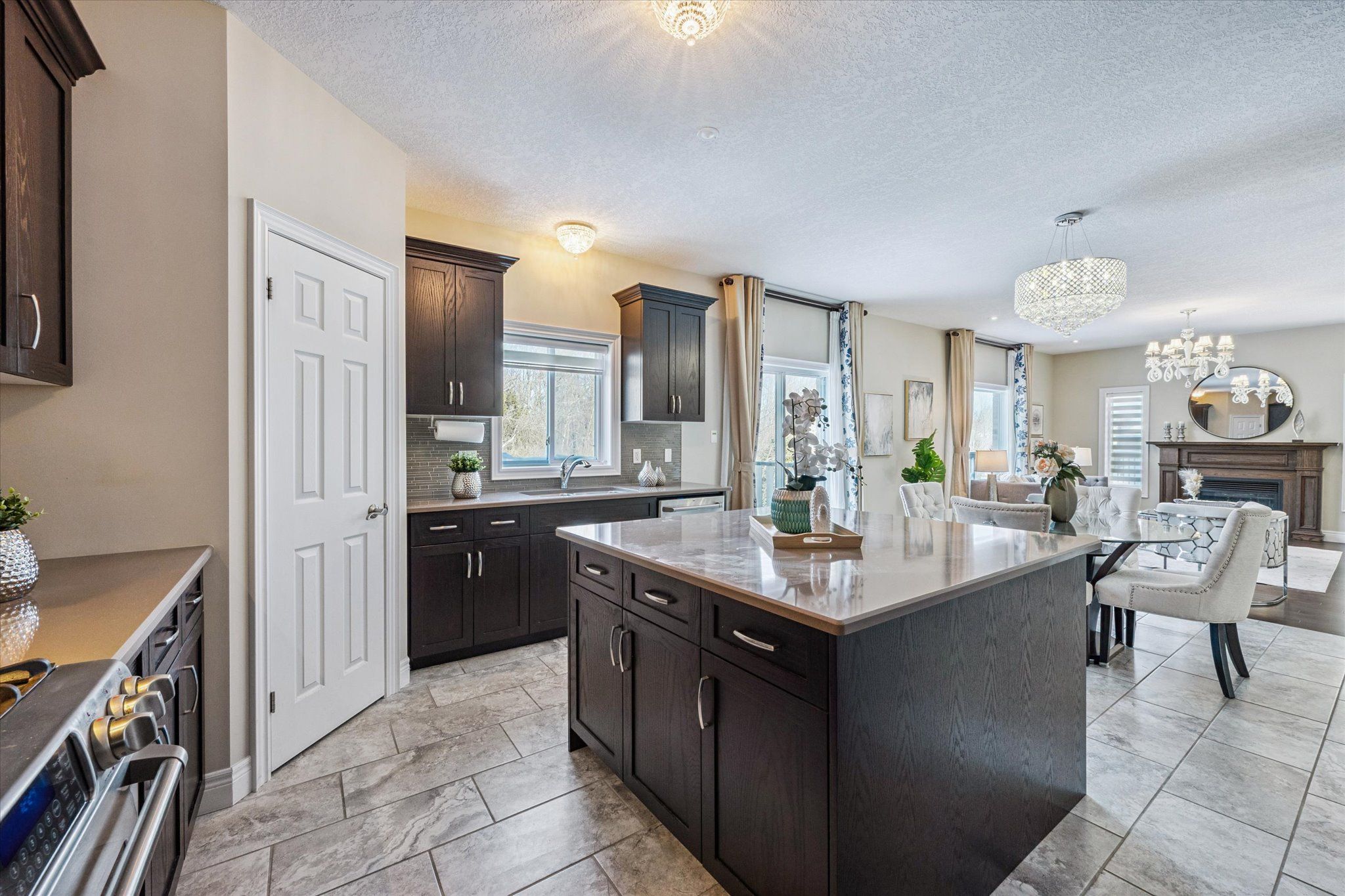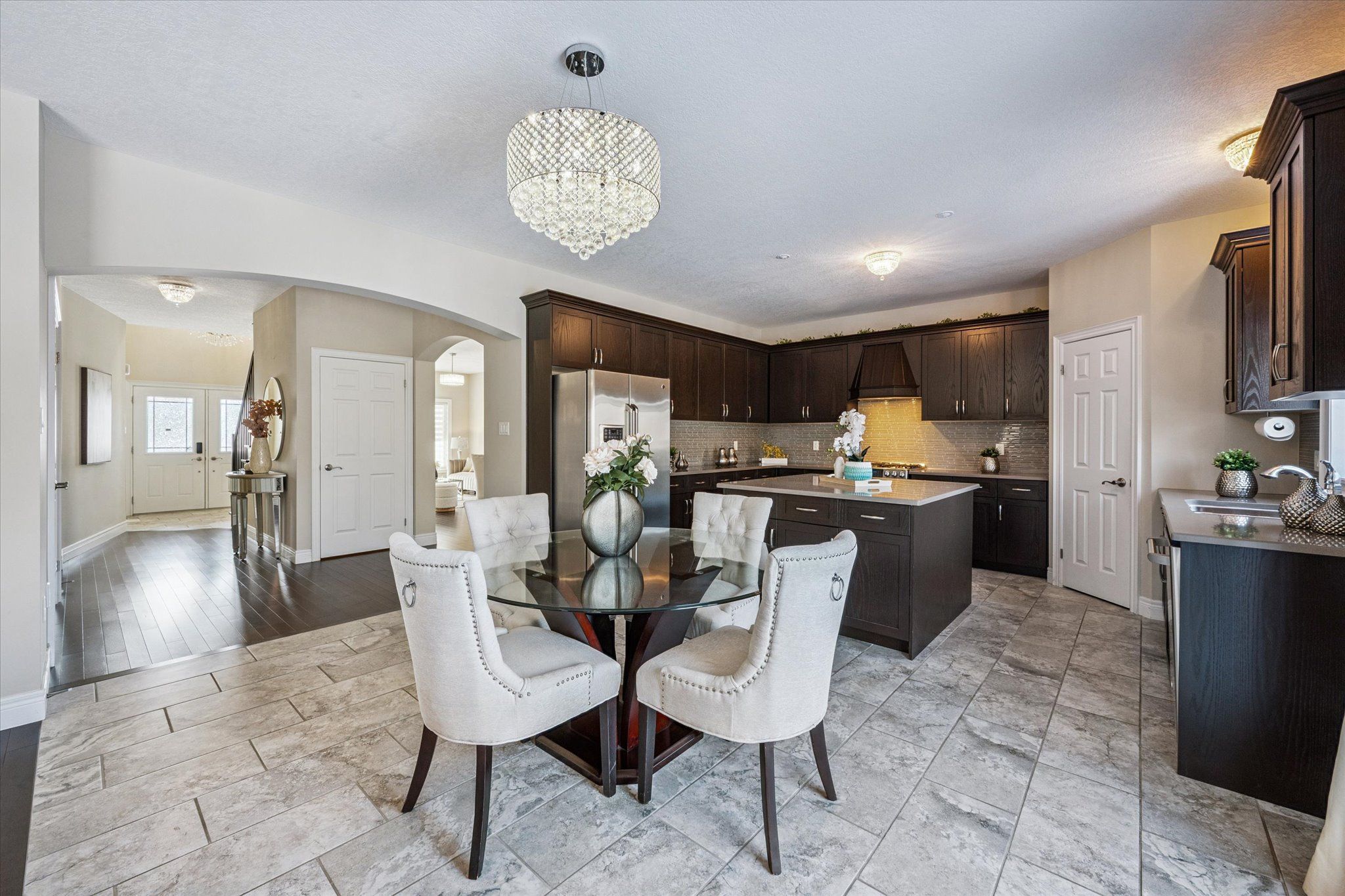 Set on a premium lot backing onto conservation and greenspace, this former model home (built in 2015) offers approximately 4,080 sq. ft. of total living space, including 2,880 sq. ft. above ground and 1,200 sq. ft. in the walk-out basement, ideal for growing families. The main floor features a spacious open-concept layout with soaring ceilings, highlighted by an oversized kitchen with a large dinette that seamlessly flows into the great room with gas fireplace. Step directly from the dinette onto a generous deck and enjoy unobstructed forest views. The home also offers a formal dining room, perfect for entertaining, and a bright, private living room located just off the foyer. The second level boasts four spacious bedrooms and 2 full bathrooms, including a primary retreat with a luxurious 5PC ensuite and large walk-in closet. The finished walk-out basement has building permits with large recreation room with electric fireplace, an additional bedroom, and a full bathroom with a sauna. Additional features include hardwood flooring throughout, with brand-new hardwood installed on the second level in 2025, and a large deck, fully fenced, private backyard backing onto conservation. Conveniently located close to schools, library, recreation centre, Costco, and shopping amenities, this exceptional property offers both comfort and convenience-an ideal place to call home.