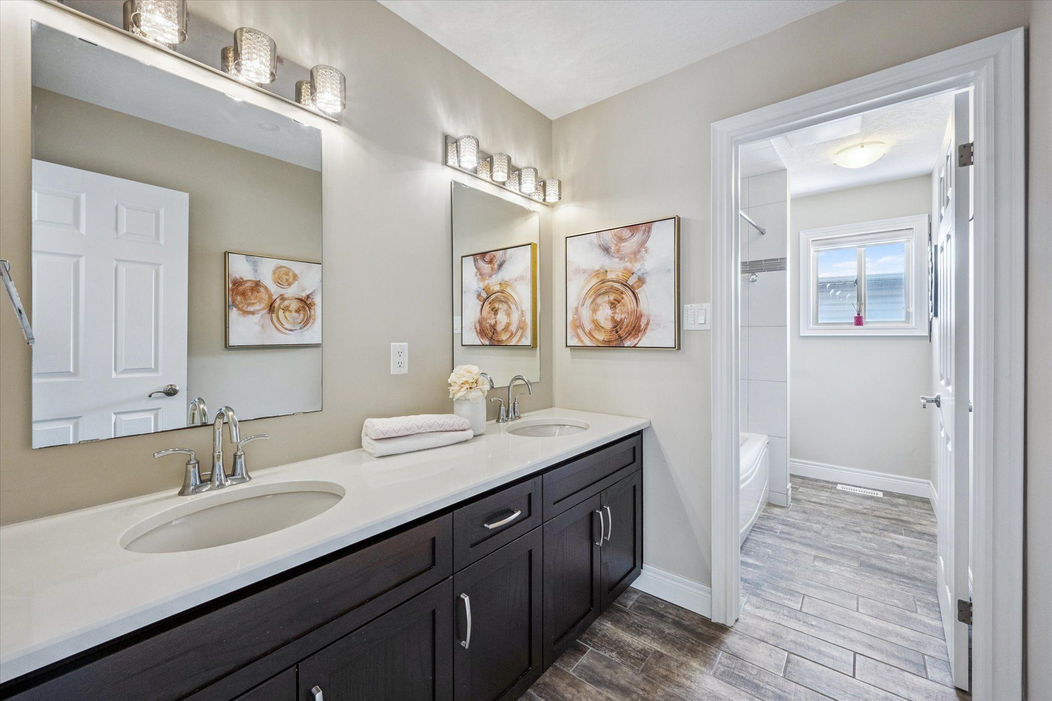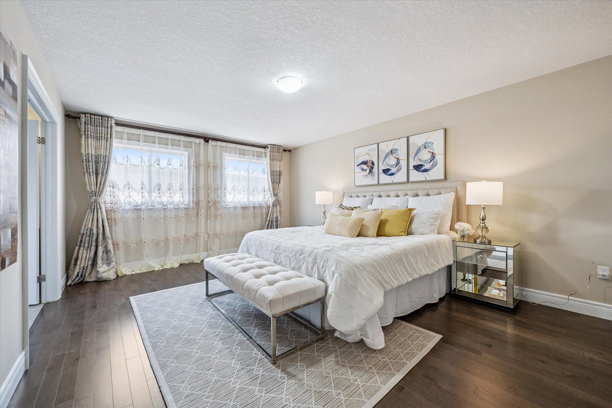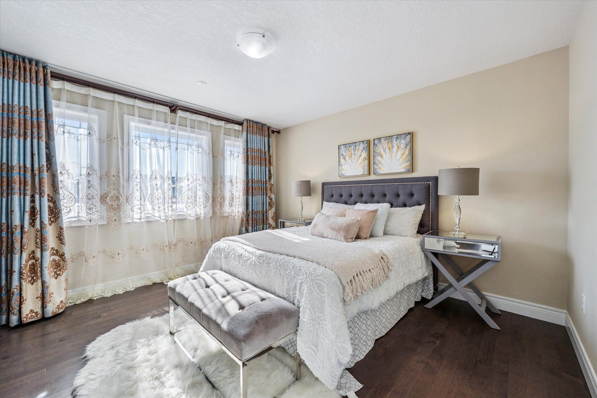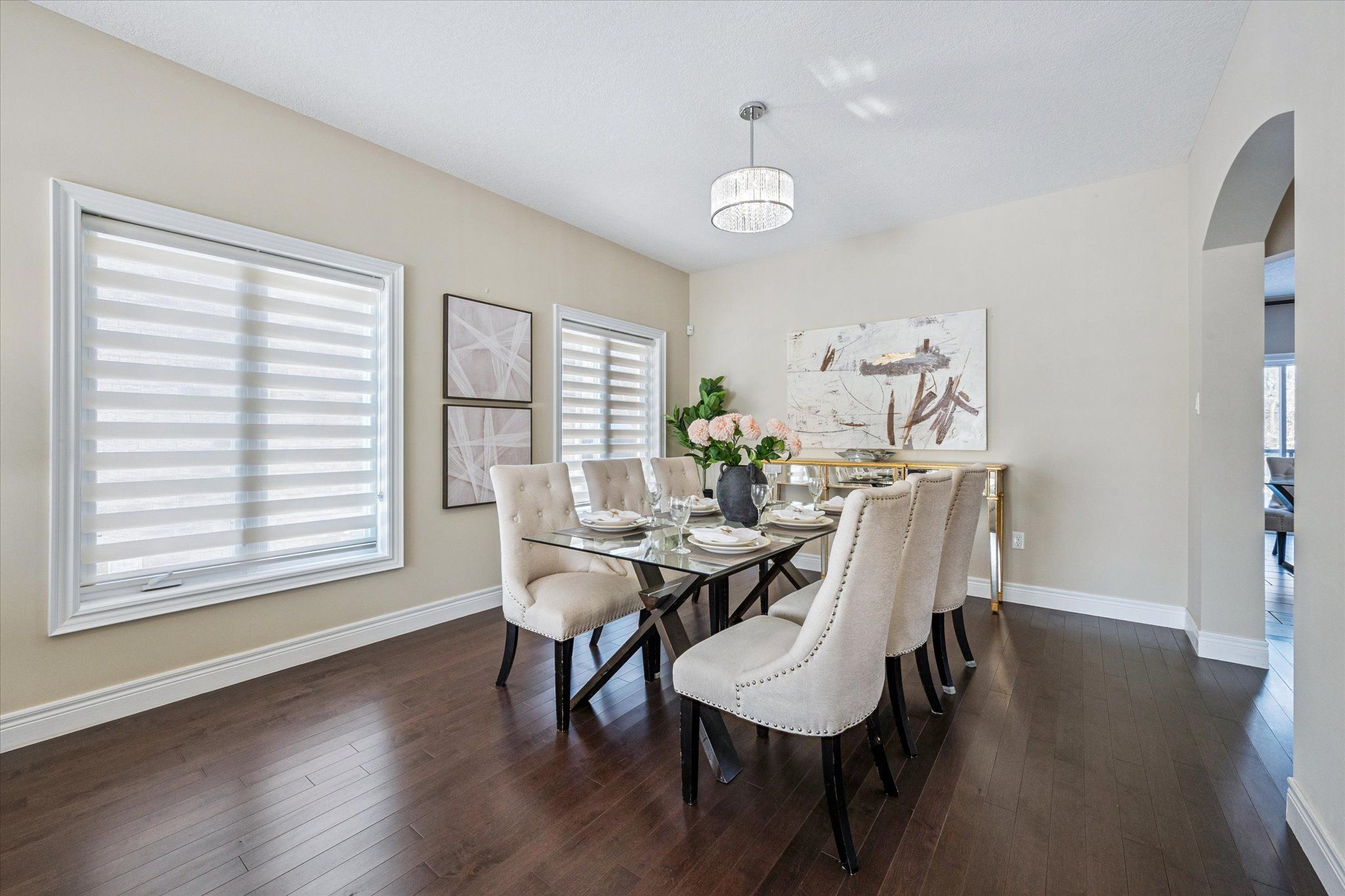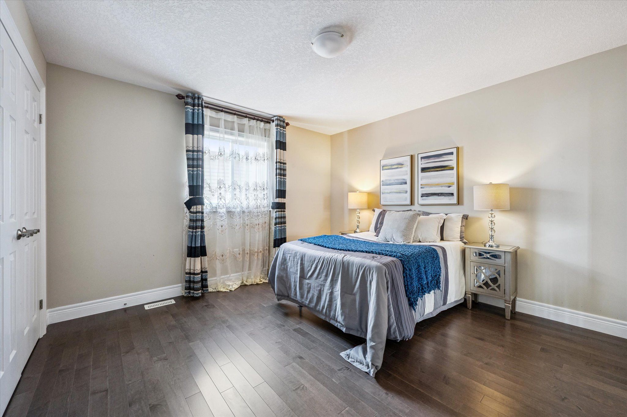 Set on a premium lot backing onto conservation and greenspace, this former model home (built in 2015) offers approximately 4,080 sq. ft. of total living space, including 2,880 sq. ft. above ground and 1,200 sq. ft. in the walk-out basement, ideal for growing families. The main floor features a spacious open-concept layout with soaring ceilings, highlighted by an oversized kitchen with a large dinette that seamlessly flows into the great room with gas fireplace. Step directly from the dinette onto a generous deck and enjoy unobstructed forest views. The home also offers a formal dining room, perfect for entertaining, and a bright, private living room located just off the foyer. The second level boasts four spacious bedrooms and 2 full bathrooms, including a primary retreat with a luxurious 5PC ensuite and large walk-in closet. The finished walk-out basement has building permits with large recreation room with electric fireplace, an additional bedroom, and a full bathroom with a sauna. Additional features include hardwood flooring throughout, with brand-new hardwood installed on the second level in 2025, and a large deck, fully fenced, private backyard backing onto conservation. Conveniently located close to schools, library, recreation centre, Costco, and shopping amenities, this exceptional property offers both comfort and convenience-an ideal place to call home.