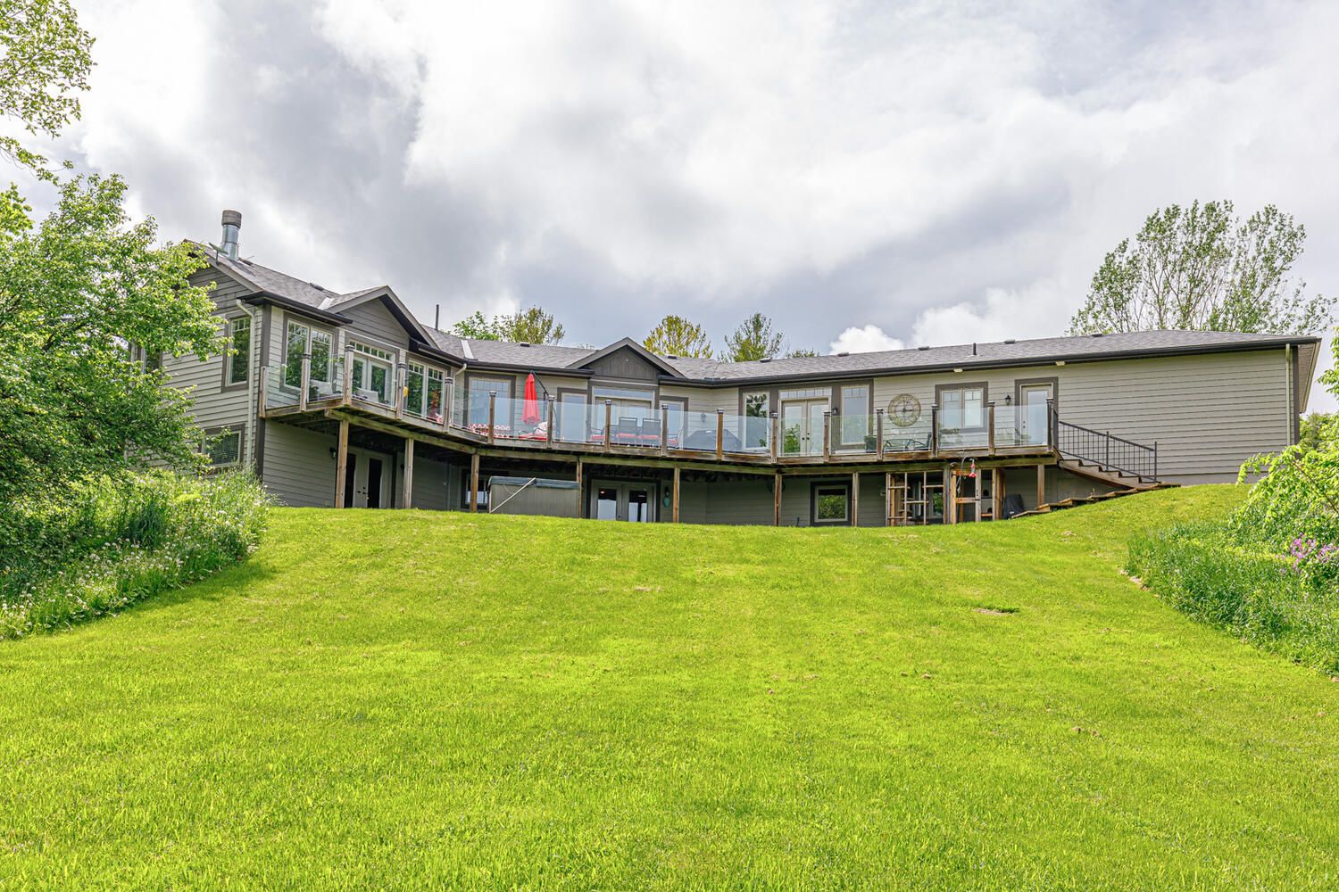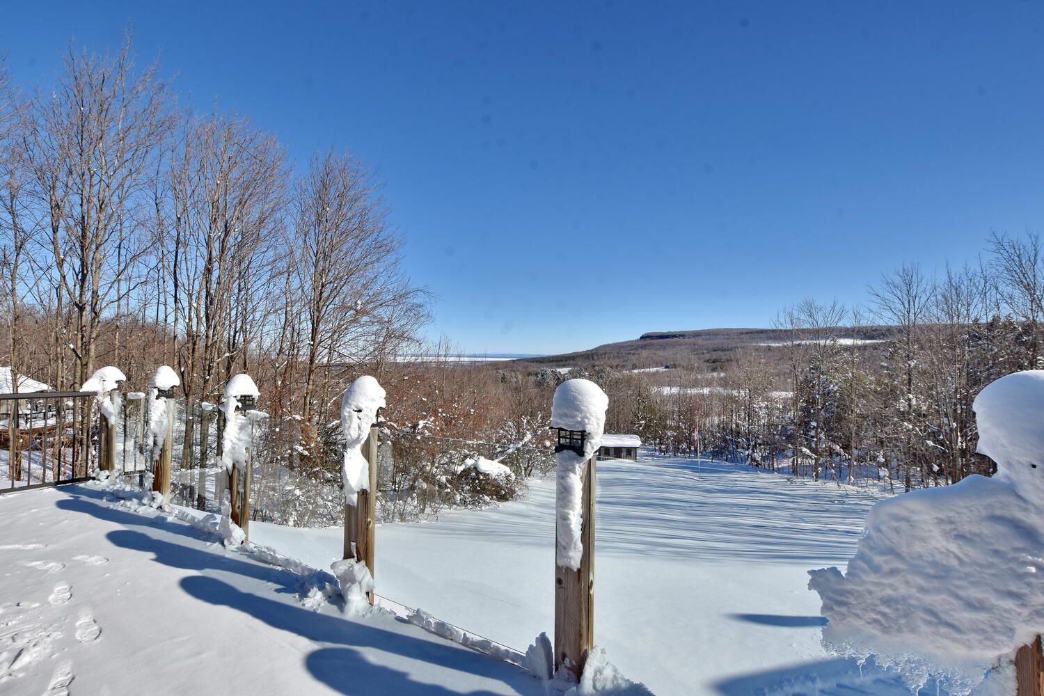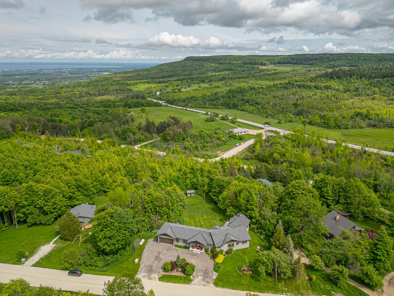 Known as the sunshine chalet and the house with the best views in all of Castle Glen! Immerse yourself in the stunning, panoramic views of Osler Bluffs, Niagara Escarpment and Georgian Bay from this one-of-a-kind bungalow. The wrap-around 75-ft deck with glass panels provides unobstructed sights. Every window in this home has a breathtaking look of natural beauty from season to season. Castle Glen is a one-of-a-kind community that sits amidst an outdoor enthusiast's heaven, surrounded by scenic hiking trails with cascading rivers, the Bruce Trail, 3-Stage mountain biking trails, cyclists' routes, snowshoeing and cross-country ski trails. The location of this home offers the perfect balance of nature and convenience with downtown Collingwood and Blue Mountain Village just 10 minutes away. This four bed, 3 bath open-concept home is truly an entertainer's delight throughout and has too many features to include! Main level has a chef's kitchen w/ high-end appliances, dining room designed for gathering, great room anchored by a wood-burning fireplace and vaulted ceilings, master suite in separate wing from guest suite, mudroom and laundry w/ access to a large two-car, insulated garage w/ storage loft for all your outdoor gear. The lower-level walk-out is a man-cave dream w/ a bar to rival any fine pub. Enjoy the wet sauna and hot tub. Even the walk-out level guest bedrooms have a view! This remarkable home has been meticulously cared for and must be seen!