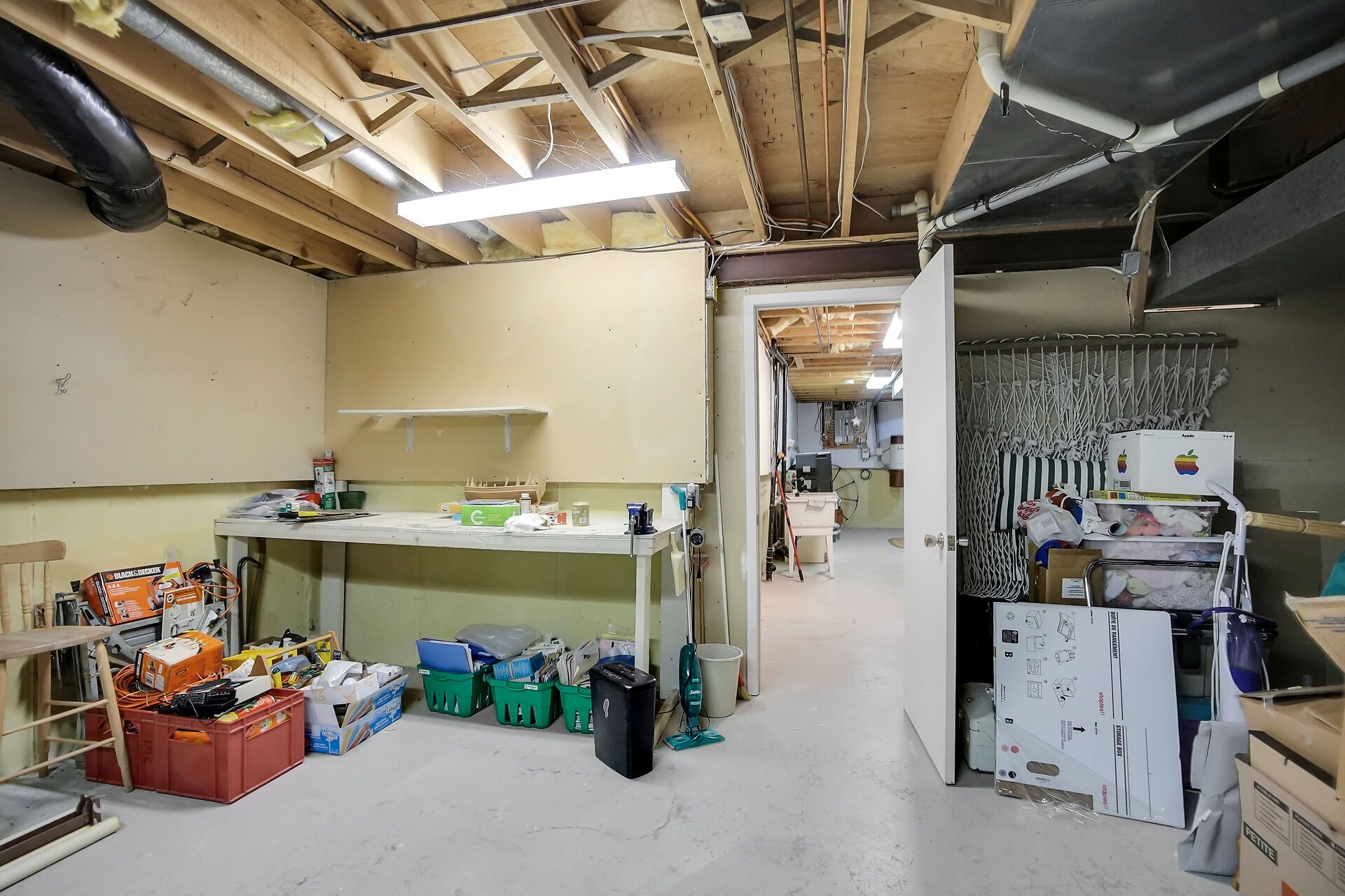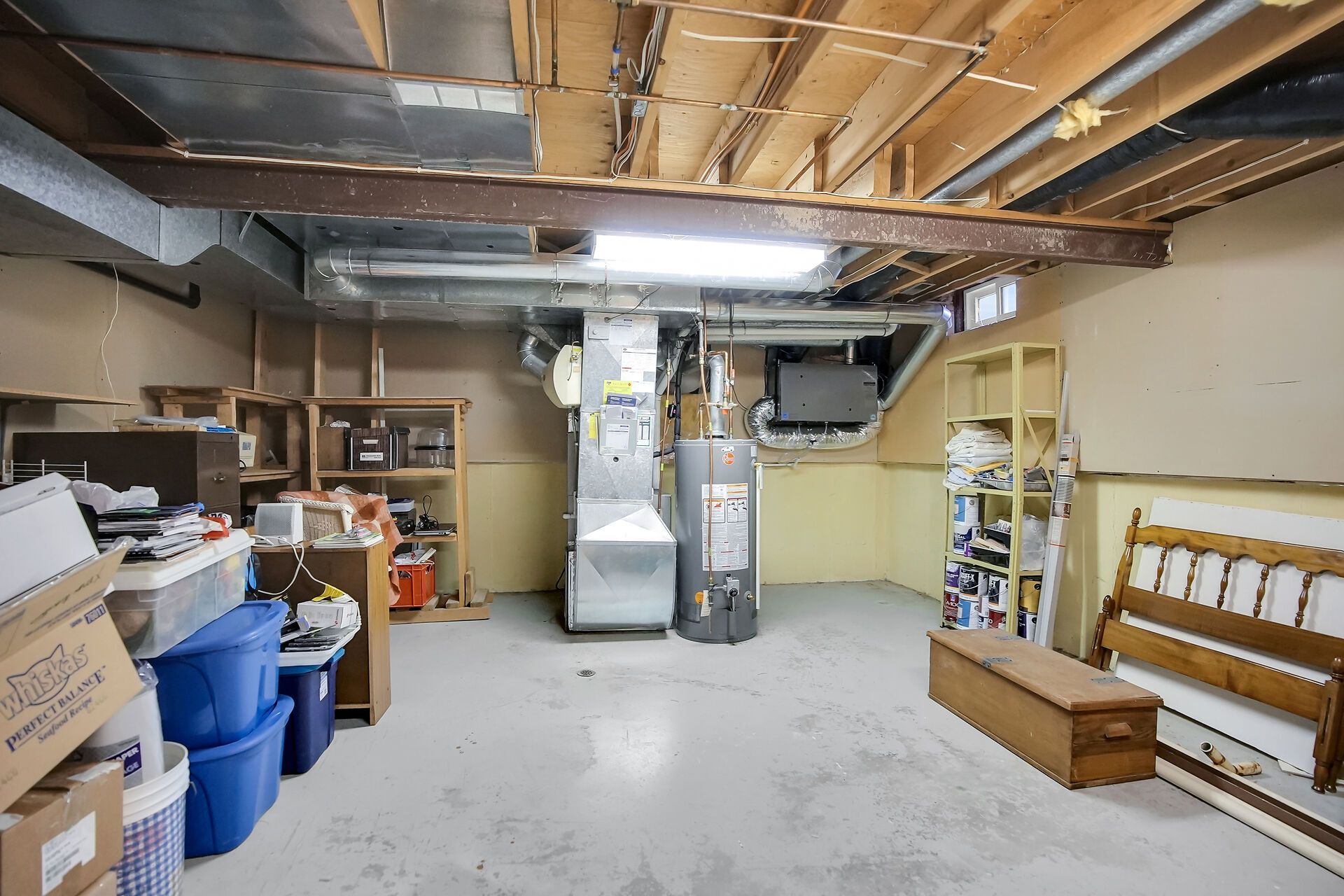 - Interior Features: Auto Garage Door Remote, Central Vacuum, Storage Area Lockers, Sump Pump, Water Heater Owned, Workbench