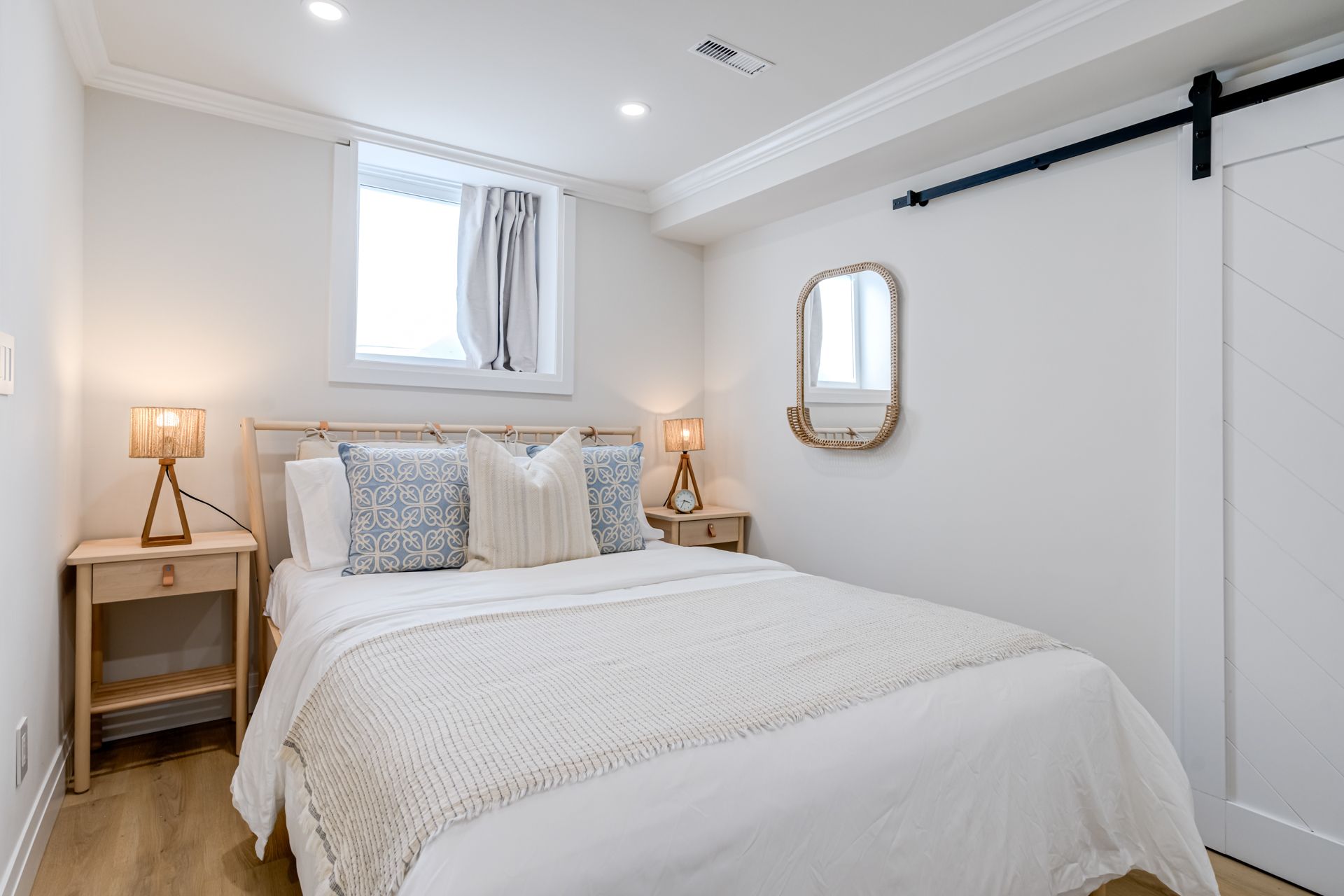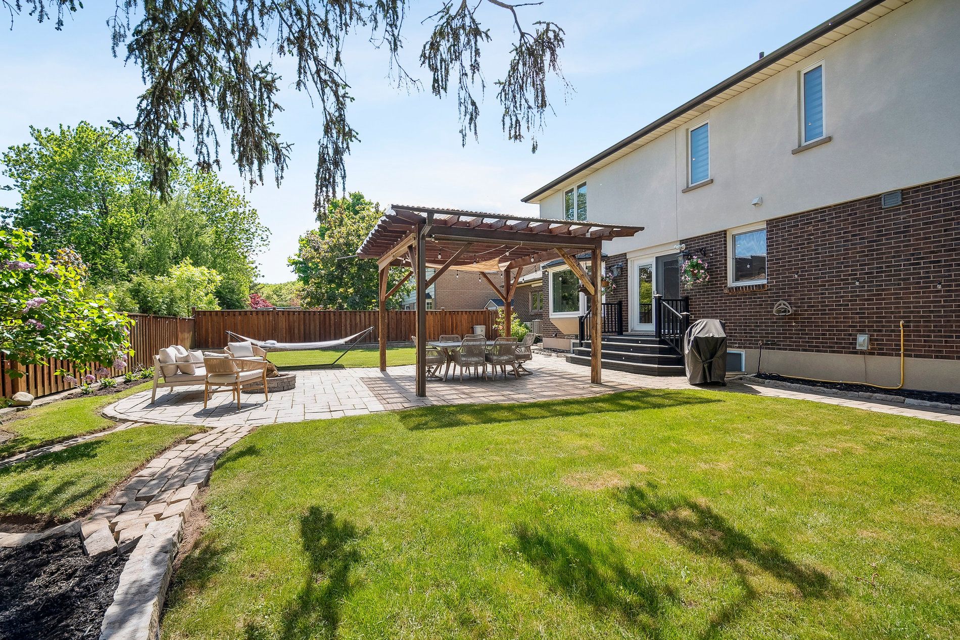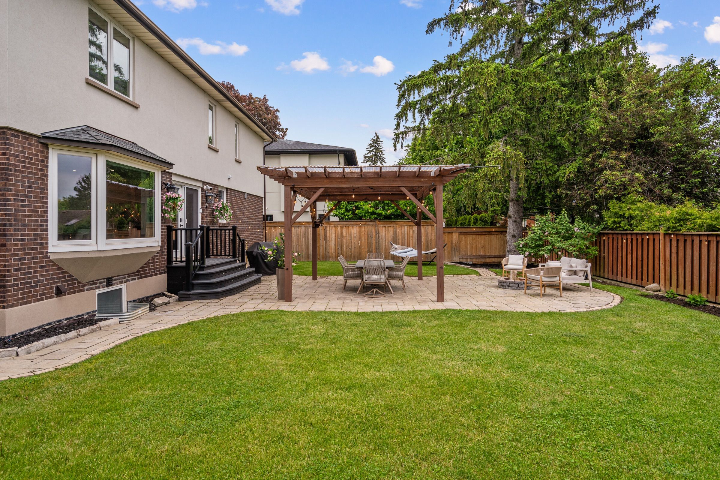 Ideally located on one of South Waterdown's most desirable streets in the Rockcliffe Survey neighbourhood. Set on a sprawling 75-foot-wide lot, this fully renovated designer two-storey home is just steps to escarpment trails, parks, schools, all of Waterdown's convenient shopping, dining, or service amenities, and it offers quick access to Highway 403, Aldershot, and the GO Station. Renovated from top to bottom and meticulously maintained, this stunning residence offers 4+2 bedrooms and 4 total bathrooms, with over 3,500 sqft. of thoughtfully designed living space. The main floor features a chef-inspired kitchen with custom cabinetry, quartz counters, and black stainless-steel appliances. Flowing seamlessly into a bright living area anchored by built-in shelving and a gorgeous wood-burning fireplace. The open concept layout is perfect for entertaining and everyday living. A large dining room, stylish powder room and laundry with inside entry from the garage complete the level. Upstairs, skylights flood the home with natural light. Four spacious bedrooms are complemented by a modern main bathroom with a double vanity, and elegant finishes. The primary suite feels like a private retreat, complete with a spa-inspired ensuite and a custom walk-in closet. The fully finished lower level features a separate entrance. There are two bedrooms (with egress windows), a full kitchen, bathroom, and spacious living area-ideal for extended living space, multi-generational living or an income generating suite. This home also features a unique heated studio located at the rear of the garage with access from both the laundry room or directly from the exterior-perfect for a home office, gym, or creative space. Additional highlights include engineered hardwood, custom millwork, modern lighting and remote blinds. Step outside to your own private oasis with a landscaped, pool-sized backyard, pergola, and fire pit-an ideal setting for relaxing or entertaining.