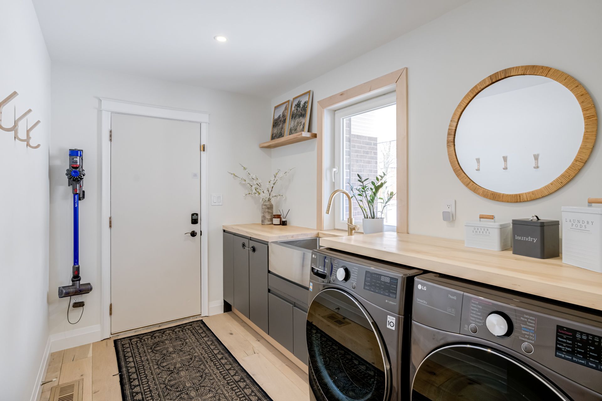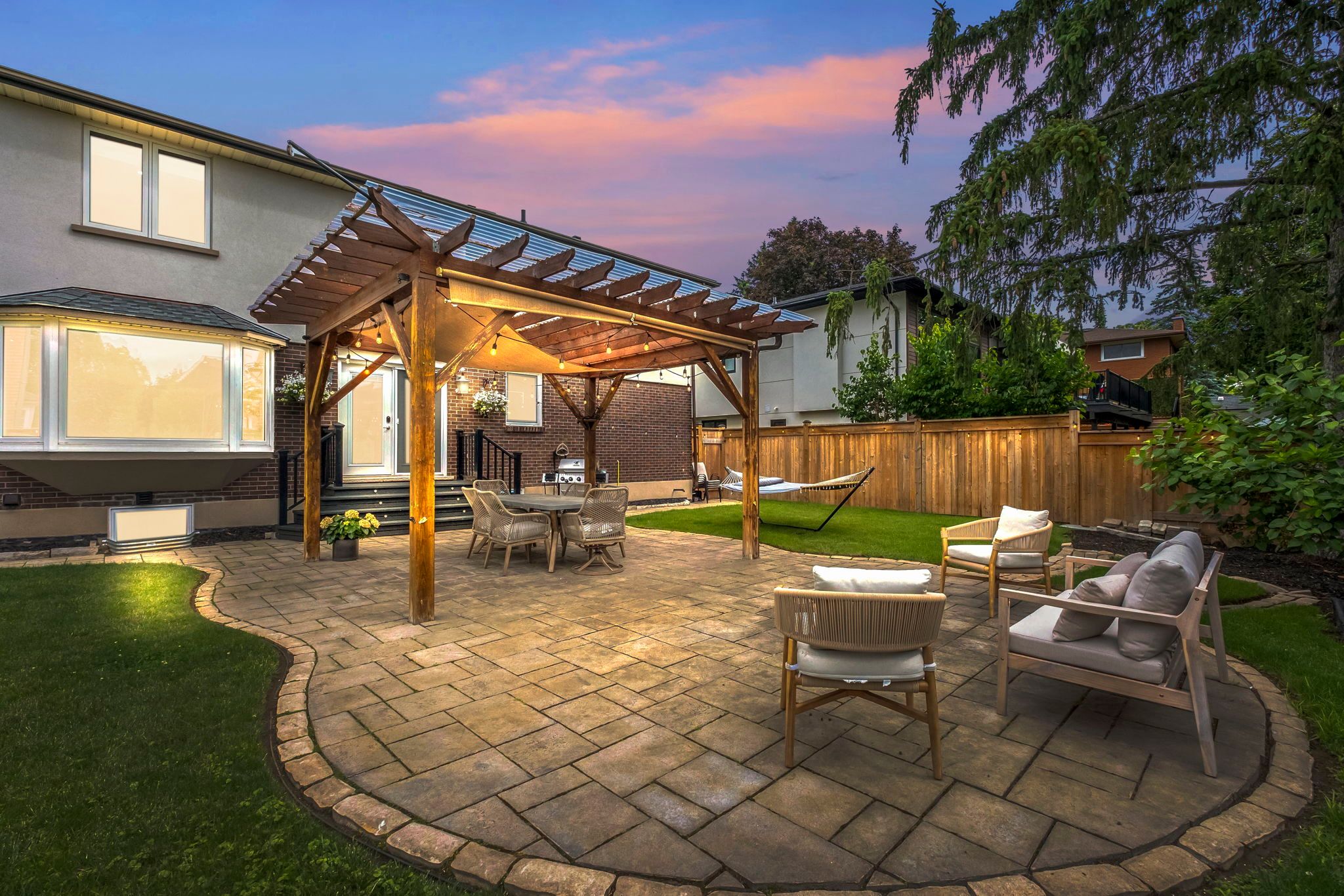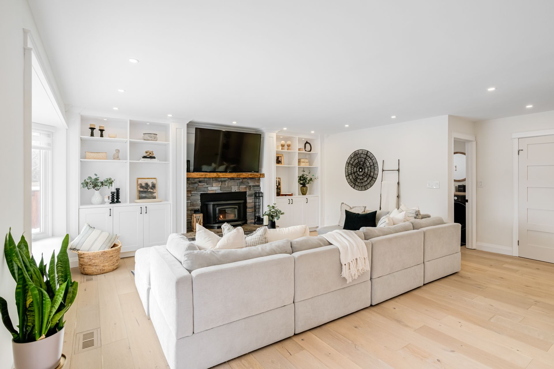 Ideally located on one of South Waterdown's most desirable streets in the Rockcliffe Survey neighbourhood. Set on a sprawling 75-foot-wide lot, this fully renovated designer two-storey home is just steps to escarpment trails, parks, schools, all of Waterdown's convenient shopping, dining, or service amenities, and it offers quick access to Highway 403, Aldershot, and the GO Station. Renovated from top to bottom and meticulously maintained, this stunning residence offers 4+2 bedrooms and 4 total bathrooms, with over 3,500 sqft. of thoughtfully designed living space. The main floor features a chef-inspired kitchen with custom cabinetry, quartz counters, and black stainless-steel appliances. Flowing seamlessly into a bright living area anchored by built-in shelving and a gorgeous wood-burning fireplace. The open concept layout is perfect for entertaining and everyday living. A large dining room, stylish powder room and laundry with inside entry from the garage complete the level. Upstairs, skylights flood the home with natural light. Four spacious bedrooms are complemented by a modern main bathroom with a double vanity, and elegant finishes. The primary suite feels like a private retreat, complete with a spa-inspired ensuite and a custom walk-in closet. The fully finished lower level features a separate entrance. There are two bedrooms (with egress windows), a full kitchen, bathroom, and spacious living area-ideal for extended living space, multi-generational living or an income generating suite. This home also features a unique heated studio located at the rear of the garage with access from both the laundry room or directly from the exterior-perfect for a home office, gym, or creative space. Additional highlights include engineered hardwood, custom millwork, modern lighting and remote blinds. Step outside to your own private oasis with a landscaped, pool-sized backyard, pergola, and fire pit-an ideal setting for relaxing or entertaining.