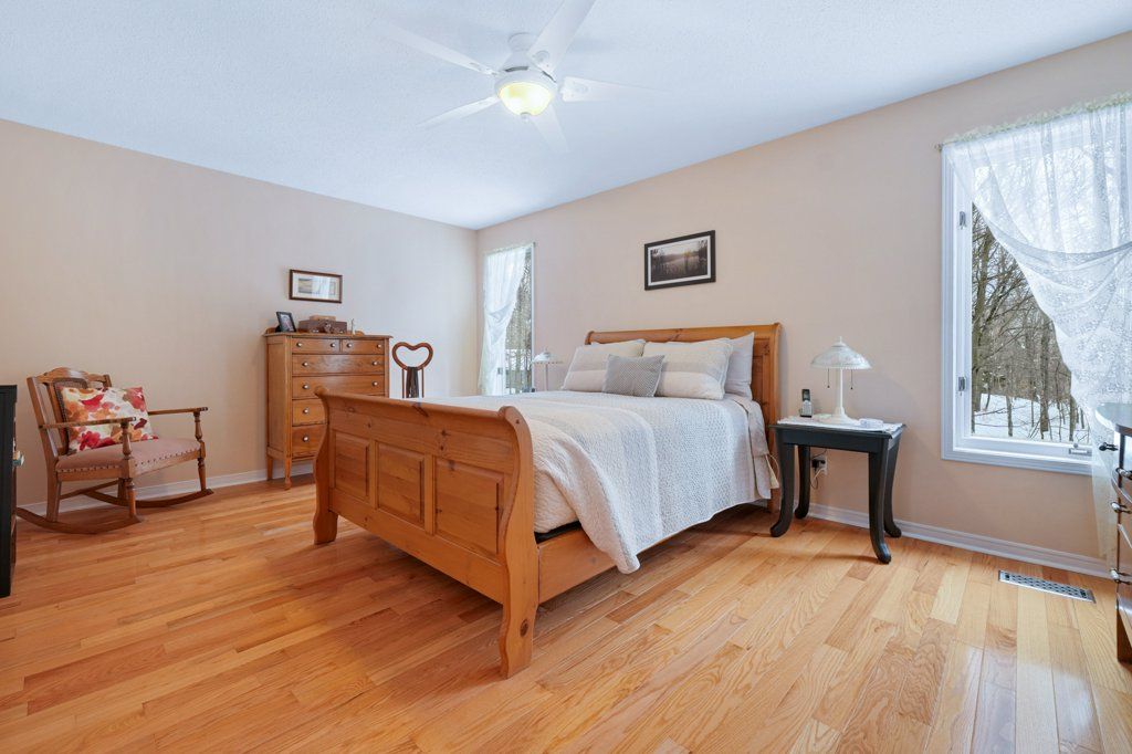 Welcome to this immaculate two-storey home set on a picturesque, tree-lined lot surrounded by mature trees and peaceful countryside views. Offering the perfect blend of rural charm and modern comfort this property delivers privacy and space - all just minutes to town. Gleaming hardwood floors flow throughout reflecting the pride of ownership evident in every detail and with 4 spacious bedrooms and 2.5 baths there is room for the whole family. The primary suite offers a private ensuite and walk-in closet creating a comfortable retreat at the end of the day. The bright and spacious eat-in kitchen is the heart of the home ideal for gathering with family and friends. A formal living room, dining room and separate family room provide flexible space for everyday living and entertaining. Step outside to the covered deck and take in the tranquil natural setting - the perfect place to enjoy morning coffee while watching the wildlife or unwind in the evening surrounded by nature. Complete with both an attached and detached garage there is plenty of space for vehicles, recreational toys, equipment and tools - ideal for those embracing the rural lifestyle. A convenient generator hook-up at the hydro meter provides added peace of mind and year-round reliability. Peaceful country living with the convenience of town amenities just minutes away - the best of both worlds. Experience the lifestyle. Embrace the space. Think Boyd.