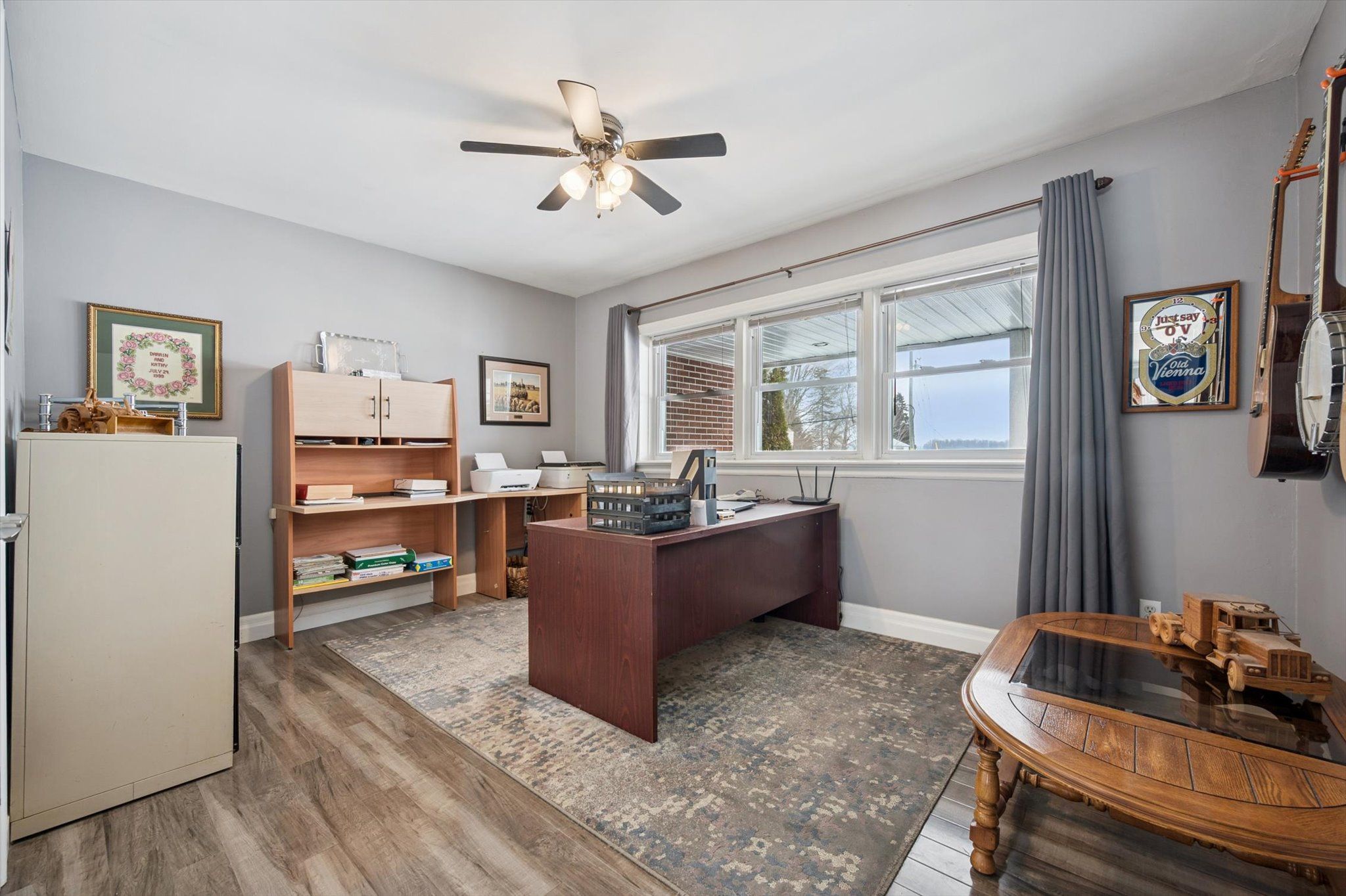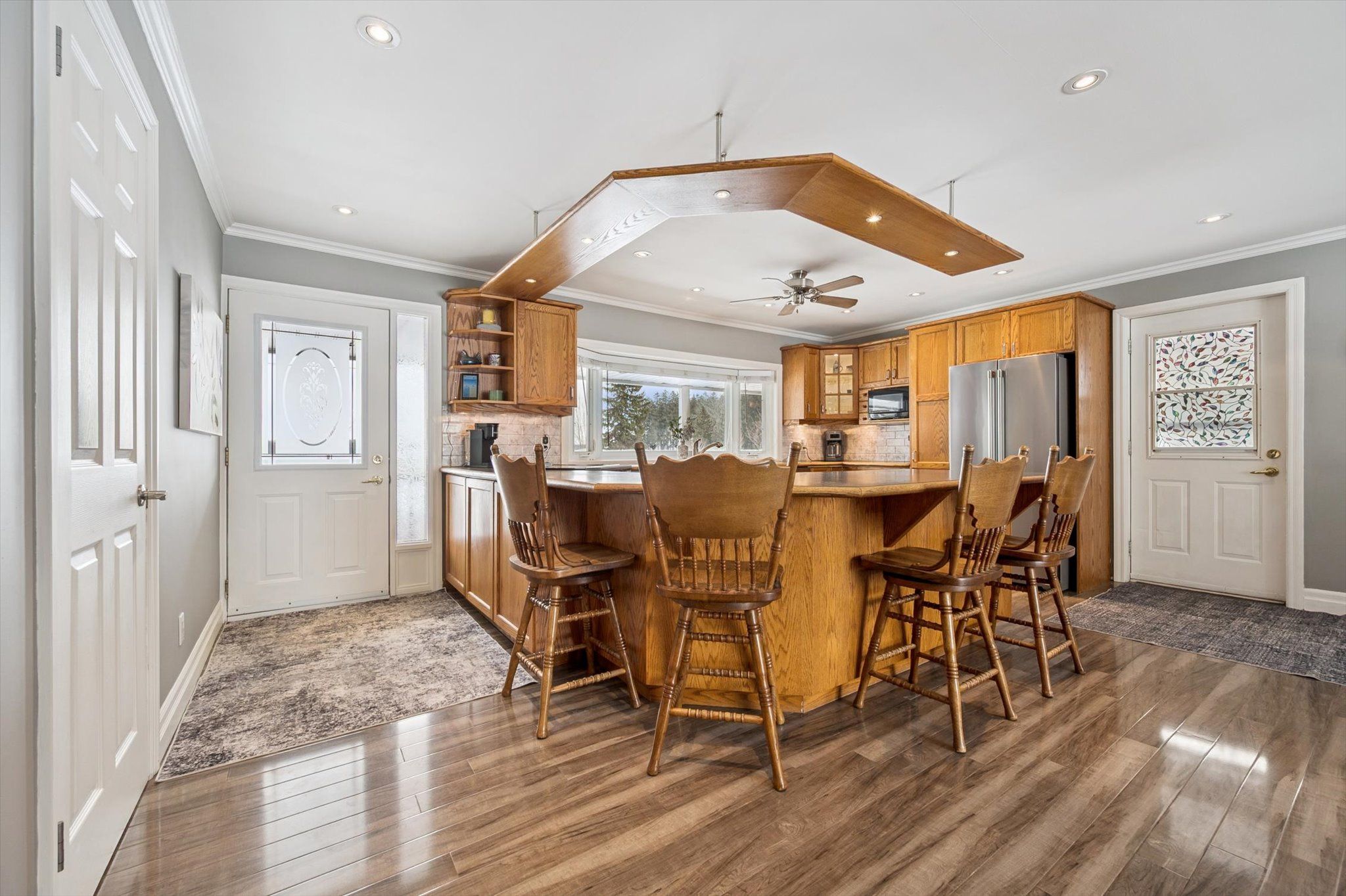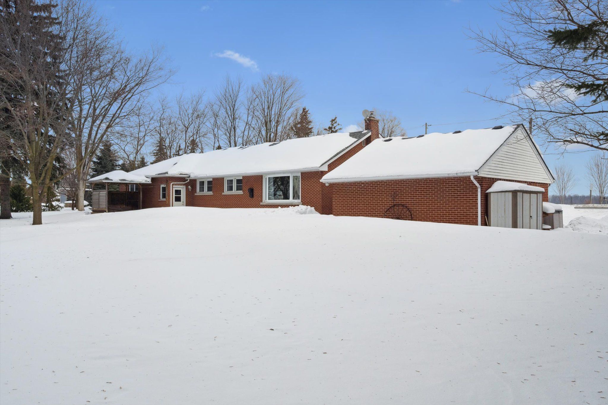 This rare and picturesque 2.9-acre property in Woolwich, offered for the first time in 40 years, presents an exceptional opportunity to enjoy space, versatility, and country charm. The well-maintained 4-bedroom bungalow features large windows that fill the home with natural light, an inviting family room gas fireplace, along with a den, two bathrooms and main floor laundry, this home offers comfortable and flexible living for families or those working from home.The heart of the home is the gorgeous, oversized kitchen, complete with new stainless steel appliances (2025) and an abundance of cupboard and counter space-perfect for hosting, cooking, and gathering with family and friends.The unfinished basement with a separate entrance provides outstanding potential for additional living space, an in-law suite, or income opportunities. Step outside to the back deck with a covered hot tub, ideal for relaxing and entertaining year-round.The property's exterior amenities are equally impressive, including a detached two-car garage, an oversized gravel yard ideal for parking equipment, trailers, or multiple vehicles, a storage barn suitable for a chicken coop, and a 1/2 acre partially fenced pasture. The star of the show is the impressive 35' x 80' insulated shop, making this property ideal for hobbyists, tradespeople, or home-based businesses. A rare offering with endless possibilities, just minutes from town conveniences.