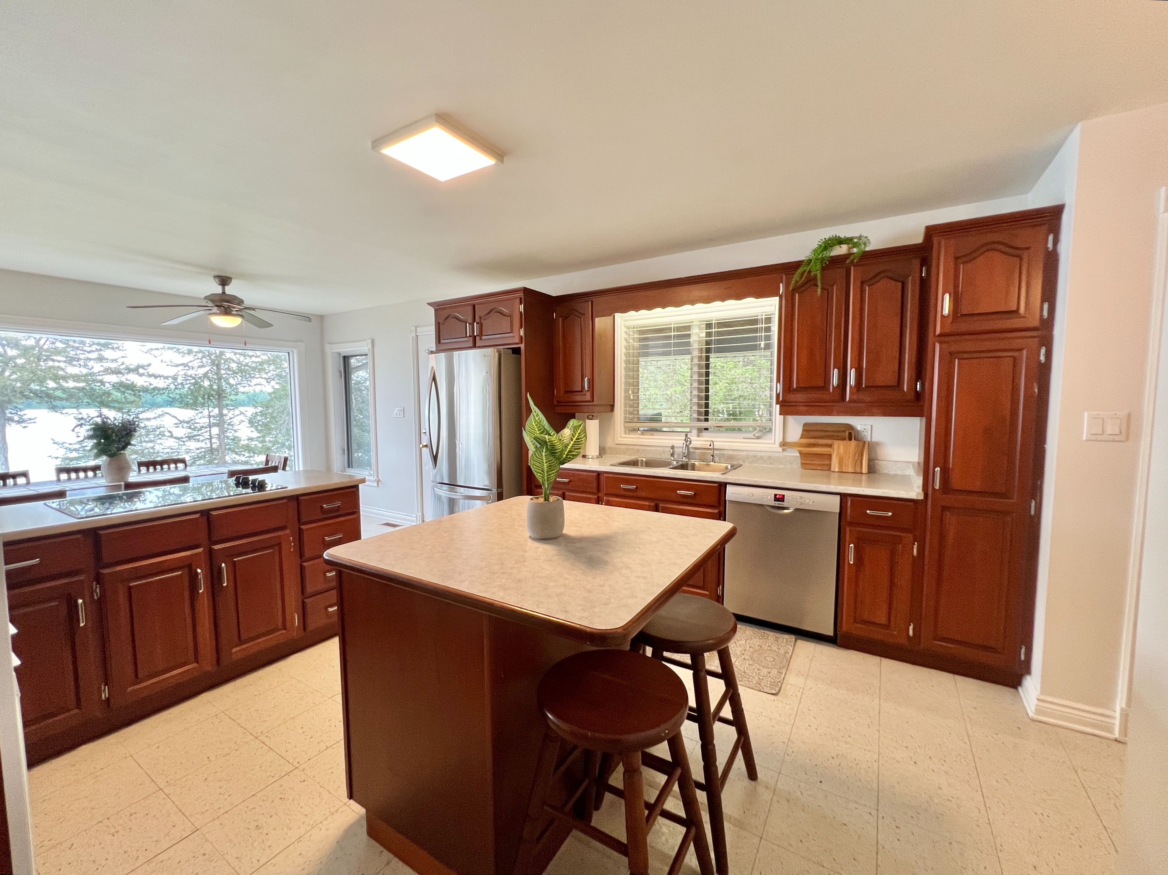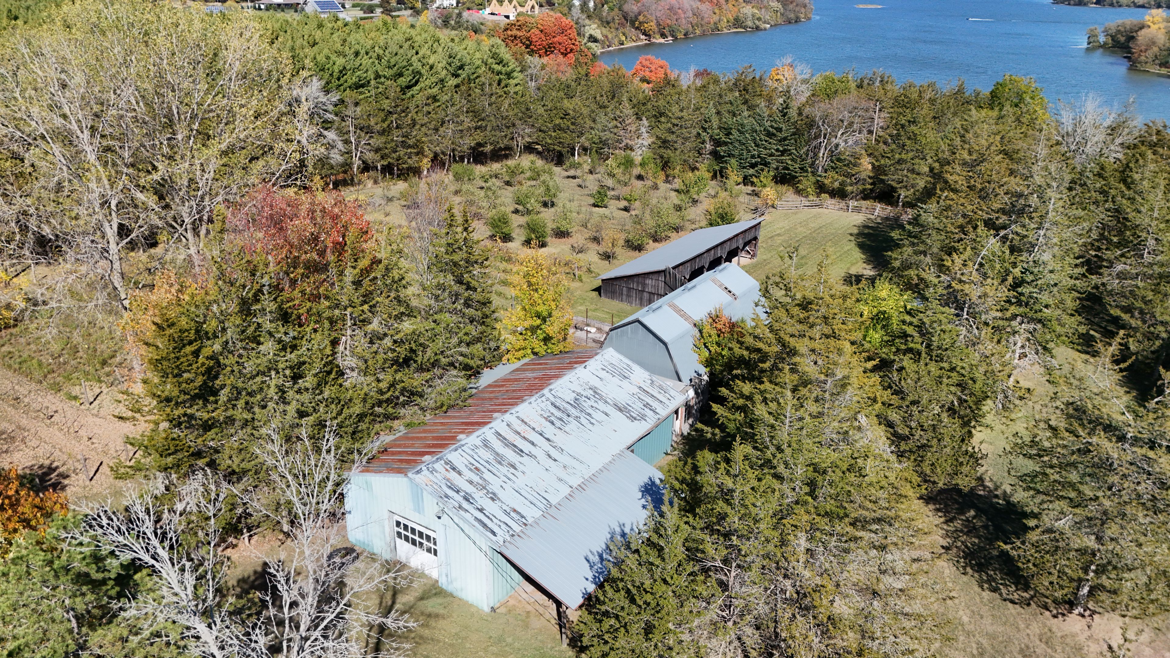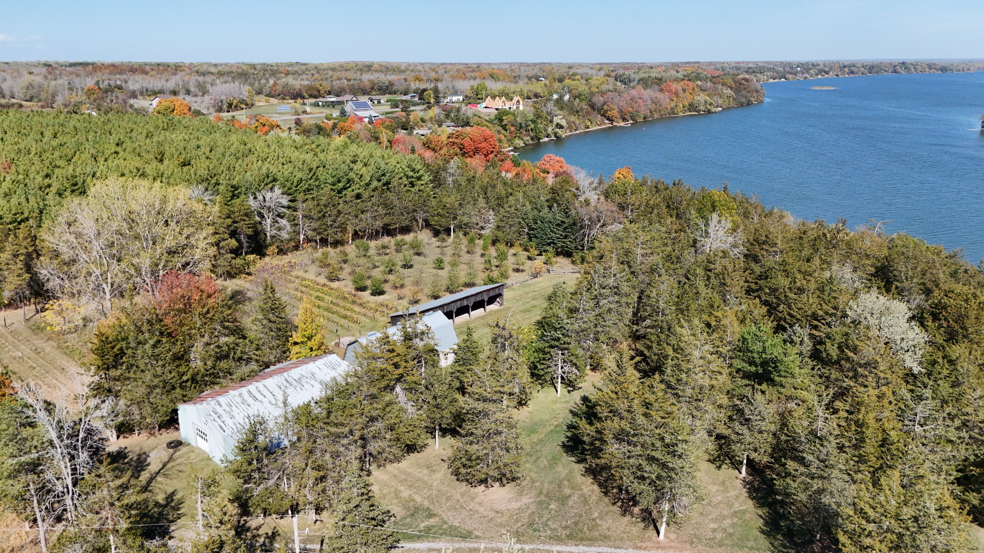 At the very end of a quiet laneway, where road noise fades and nature takes over, you'll discover an extraordinary waterfront escape on the shores of Hay Bay. Encompassing 15.6 acres with more than 750 feet of shoreline, this rare offering delivers exceptional privacy, open space, and endless possibility. Renowned for world-class fishing and a popular mooring near Ram Island, Hay Bay is also your gateway to the Bay of Quinte and Lake Ontario. Here, days begin with glowing sunrises over the water and unfold in peaceful rhythm with the surrounding wildlife. All just 15 minutes to Napanee, 20 minutes to Highway 401, and a short drive or boat ride to Prince Edward County. Perfectly positioned to take in panoramic water views from both levels, the 2,000 sq. ft. all-stone bungalow blends timeless design with flexible living. The main floor offers three generous bedrooms and two bathrooms, while the lower level features two additional bedrooms, a third bath, and a roughed-in kitchenette-ideal for extended family or guests. Beyond the home, the property invites you to embrace a true country lifestyle. Explore trails winding through more than 6 acres of white pine forest, gather fruit from your orchard of apples, pears, peaches, cherries, and plums, or cultivate your own vintage from Chardonnay and Vidal grapes sourced from Niagara vineyards. A fenced paddock and impressive outbuildings-including a detached insulated two-car garage, 56' x 30' shop with concrete floor and 12' ceilings, 42' x 22' barn with stalls and hay loft, plus multiple drive sheds-create outstanding potential for hobby farming, homesteading, or a home-based business. Cast a line, set sail, or simply slow down-this is waterfront living on your terms.