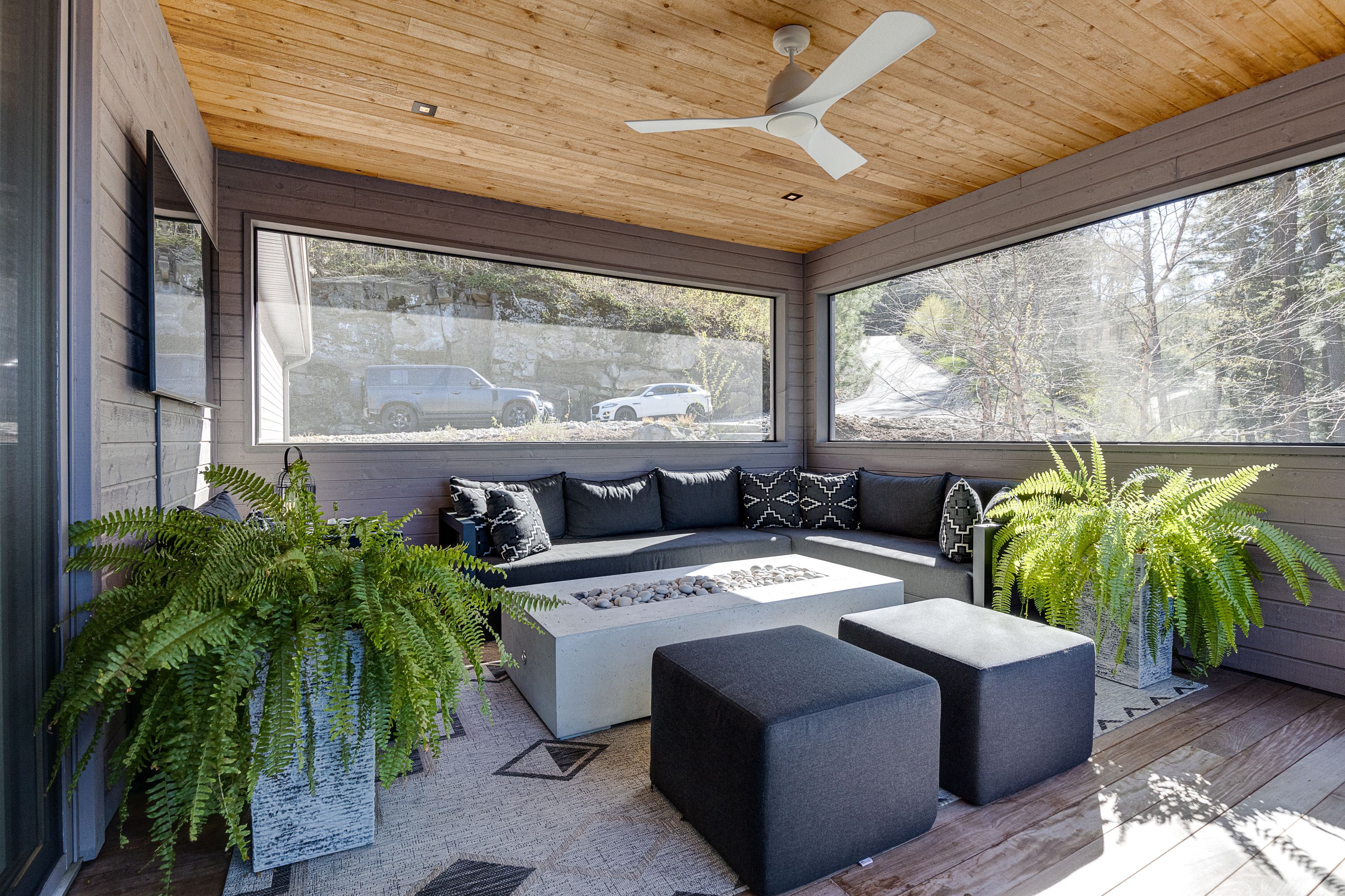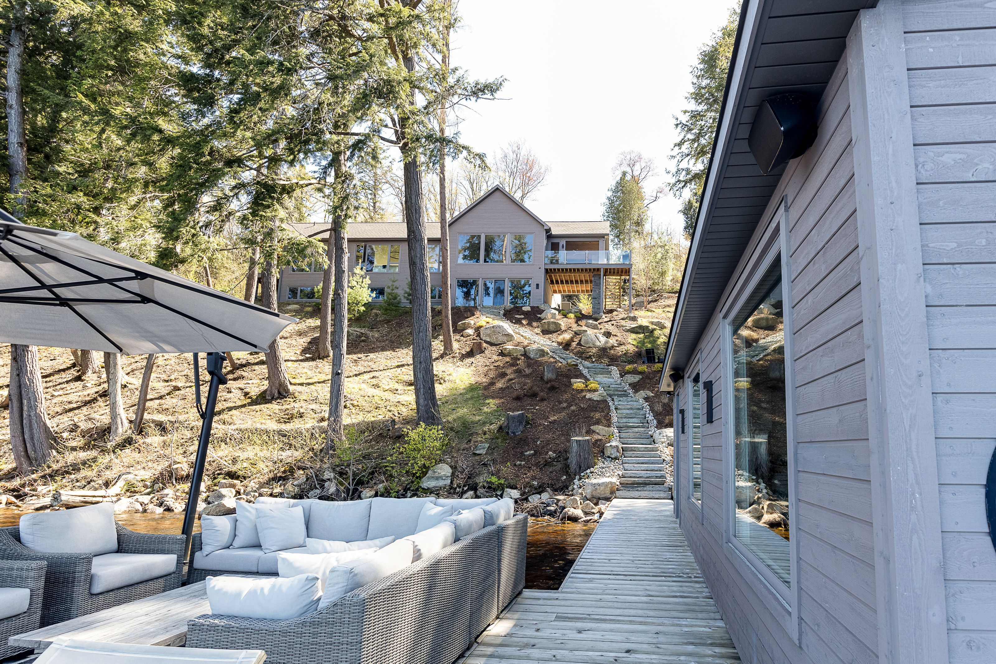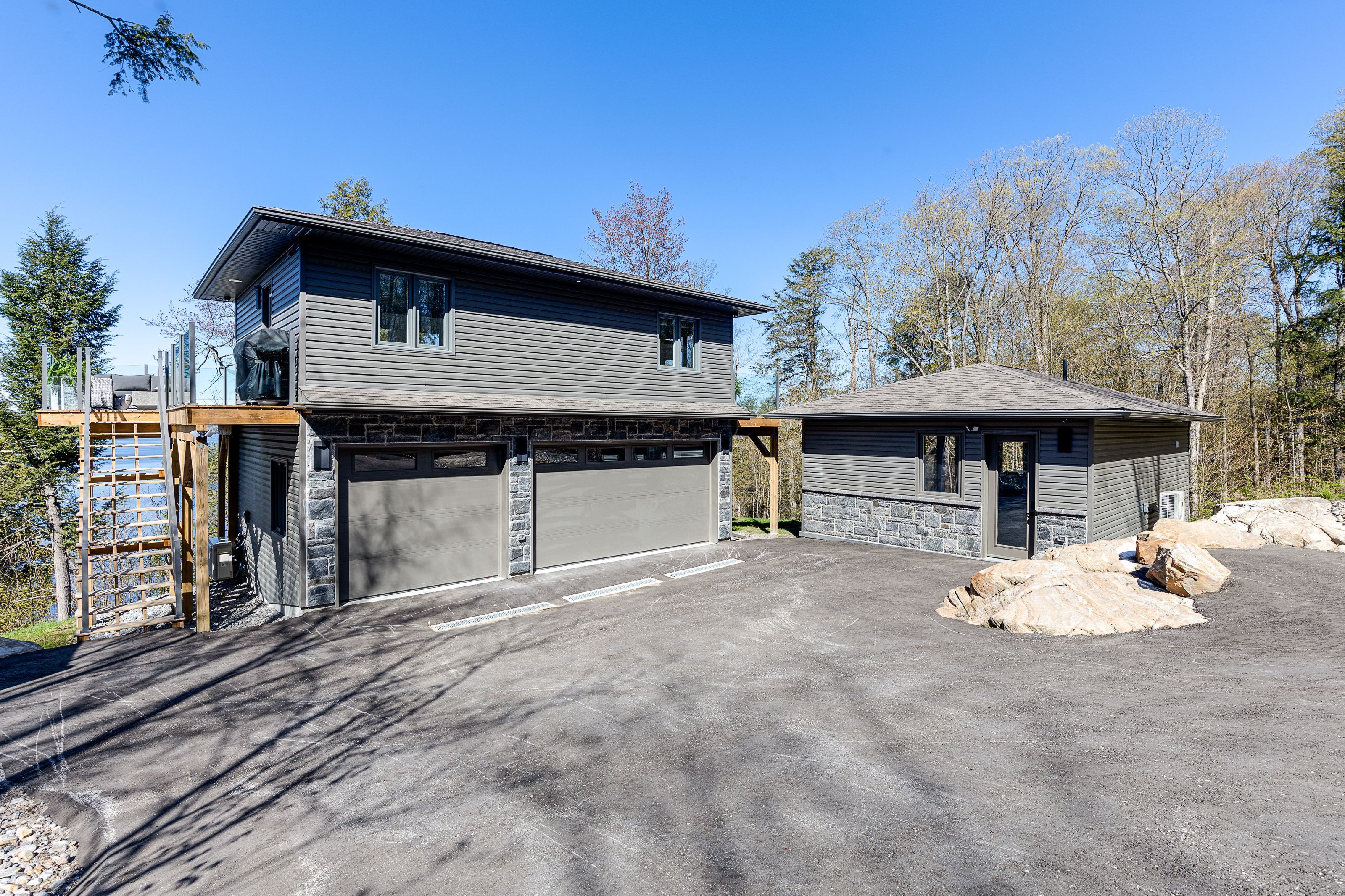 Stop scrolling-this is the one buyers wait years for. A newly built (2019) lakefront showpiece that delivers privacy, luxury, and jaw-dropping long lake views from nearly every room. Designed to impress & built to last with an ICF foundation and walls of glass, this is where modern craftsmanship meets Muskoka's raw natural beauty. Inside, the 4-bed, 3.5-bath main cottage is a masterclass in upscale comfort-wide-plank hardwood, a sleek biofuel fireplace, and a bright, open-concept layout built for unforgettable entertaining. The walkout lower level adds serious value with 3 bedrms, a full recreation space, wet bar, office zone, and second fireplace. Step outside and it only gets better. Professionally landscaped grounds lead you down a stunning granite staircase to your private waterfront fire pit, sun-drenched dock, and finished boathouse with kitchenette and handy eco-washroom. A space that allows you to spend the entire day at the dock. Need more? You get it. A fully self-contained coach house above a heated triple garage offers guests their own upscale escape with kitchen, living space, 2 bedrms, and bath-all with elevated, panoramic views. In addition to that, there's the wellness retreat: a separate outbuilding with gym, indoor sauna, spa/studio space, and a covered patio with drop-down screens and hot tub overlooking the lake. Four-season enjoyment, fully equipped and dialled in. As they say, "location, location!" and this is it. Minutes from downtown Huntsville, the gateway to the famous Algonquin Park. Here you can find everything you need, including a year-round, vibrant, and delicious food scene, local events and activities, shopping, and so much more. Set on Lake Vernon-quiet, scenic, and connected to a 4-lake chain system, with direct boat access into Huntsville-this is more than a cottage. It's a complete lifestyle package. The lake is calling you. Opportunities like this are rare. Act fast, bring your best, and make it yours.