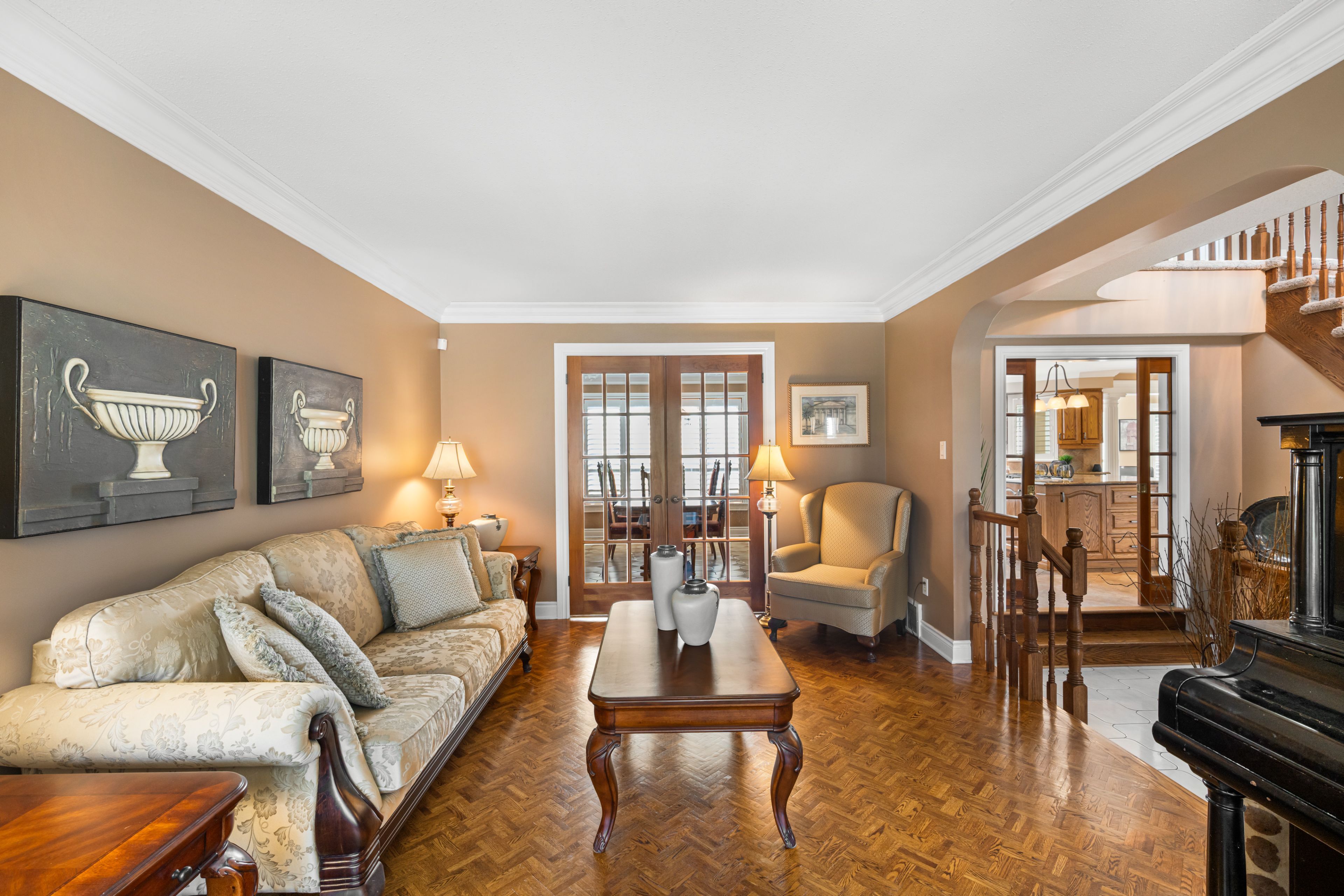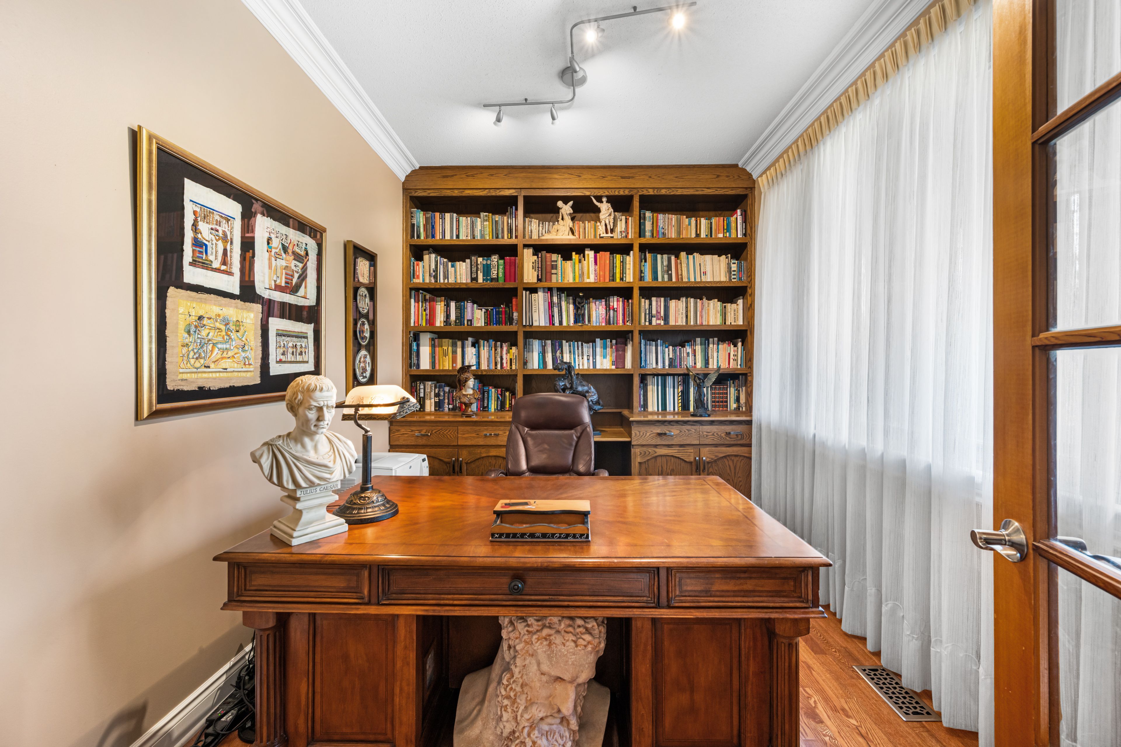 This beautiful 4 bedroom, 3 bathroom home is located in the prestigious Orchard View Estates, this custom-built home with the original owners, sits on a spacious & private corner lot of approximately 0.5 acres, surrounded by mature cedars and backing onto a serene park. Beautifully landscaped, the property boasts year-round charm w/ Magnolia, Macintosh, & Mini Maple trees. Outdoor living is elevated with a tranquil water feature in the rear yard, a cozy gazebo & grilling area, a garden shed, & a semi-circle laneway that leads to a double garage w/ front, side, & inside entries. Inside, the main floor features a thoughtfully designed layout, complete with a dedicated office, a 3-piece bathroom, & a convenient laundry room. The expansive kitchen includes a centre island & bar area, flowing seamlessly into a welcoming family room warmed by a gas fireplace. For entertaining, enjoy a formal dining room. Oak hardwood flooring and herringbone detailing in the elegant living room add timeless sophistication. Upstairs, the primary bedroom offers a walk-in closet and a stylish 4-piece ensuite. A luxurious 6-piece main bathroom, complete with heated floors for year-round comfort. The finished basement offers exceptional additional space, featuring a second home office, a recreation room, ample storage, a cold storage area w/ a pantry/cantina, ideal for stocking up, & a relaxing sauna, perfect for unwinding after a long day. Additional features include: Generac Generator (2023), Roof Anterior (2020) Rear (2001), Furnace (2005), A/C (2023), Wood Windows (1984) with cladding (2000), Skylights (2024), Asphalt (2022), Septic emptied (May 2025), Enbridge($1,468.25), Hydro One($1,552.57), Enercare HWT & Furnace Maintenance (2024): $870. Experience the perfect blend of space, craftsmanship, privacy, and natural beauty in this remarkable home. Don't miss the 360 iGuide tour. See attachment for additional information. 24 hrs irrev. on all offers.